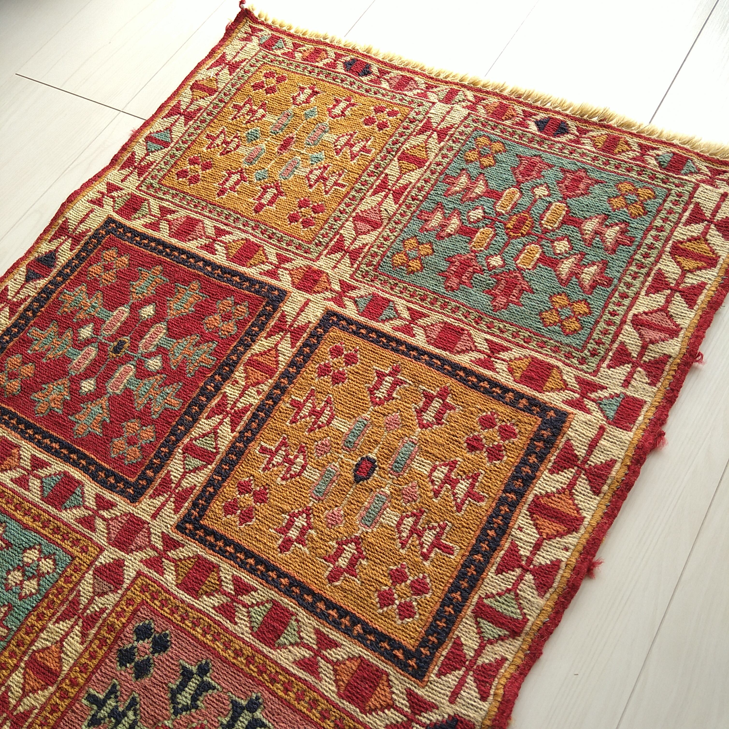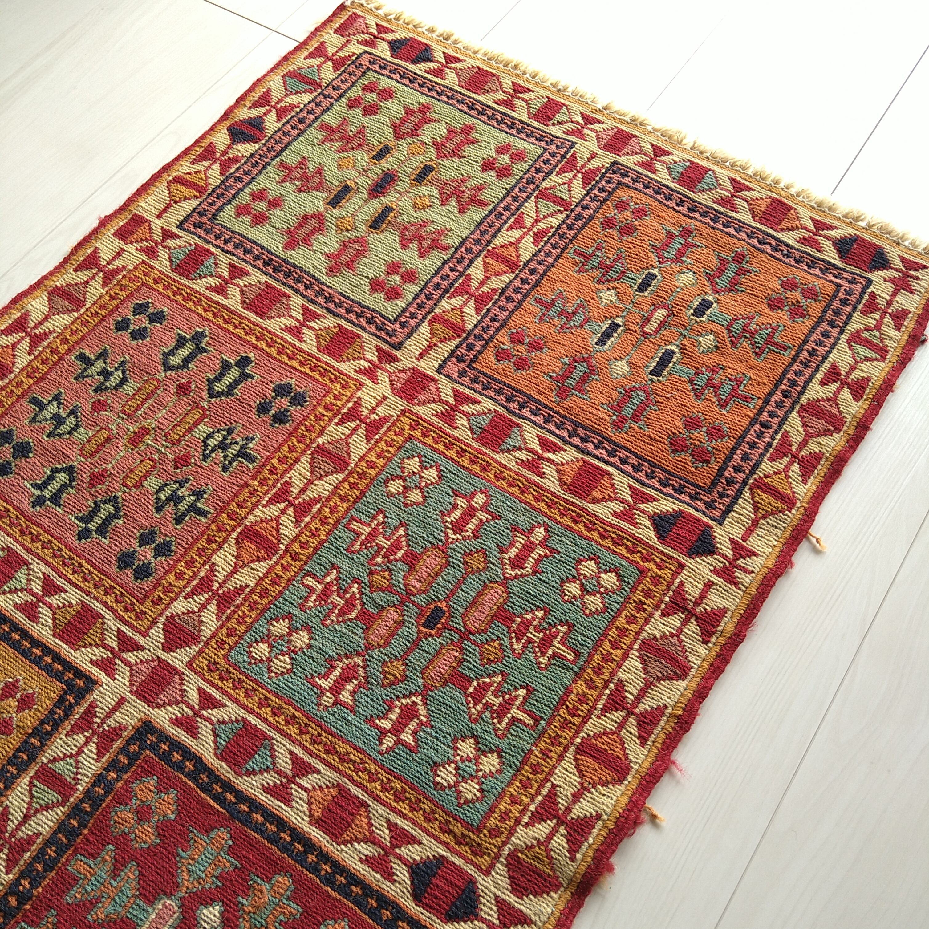 Persian Kilim 95x57cm 8 Squares Nature Motif ペルシャ絨毯