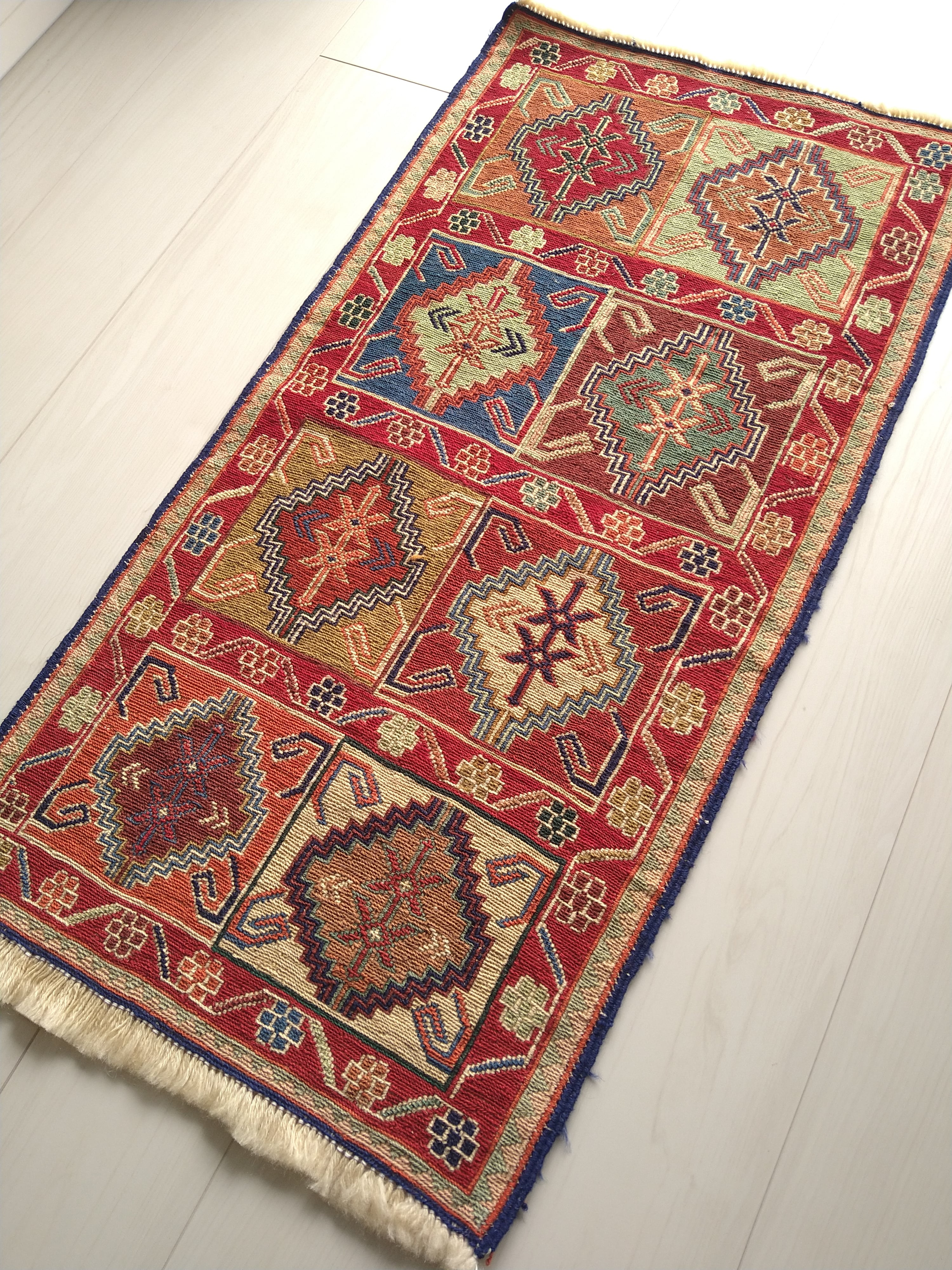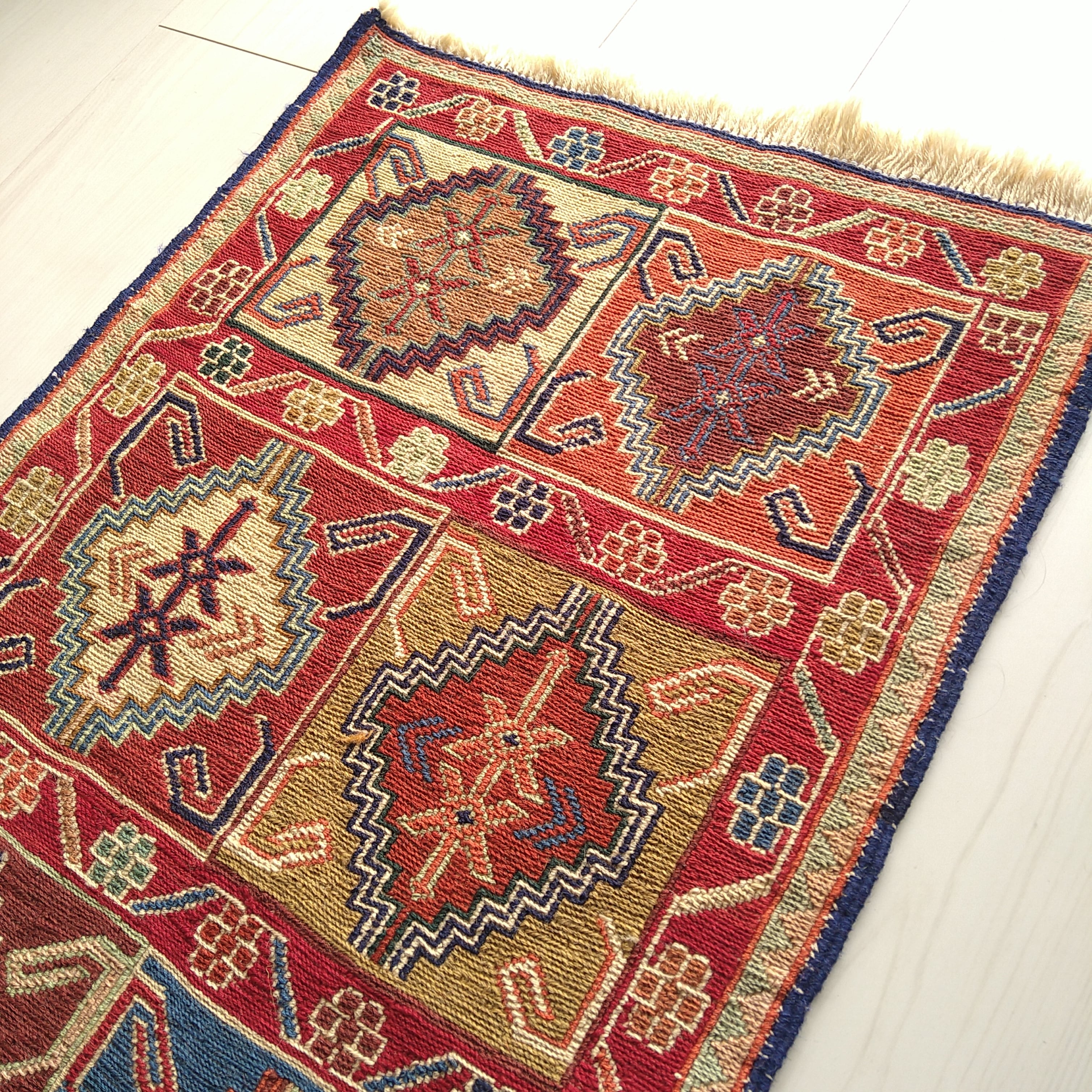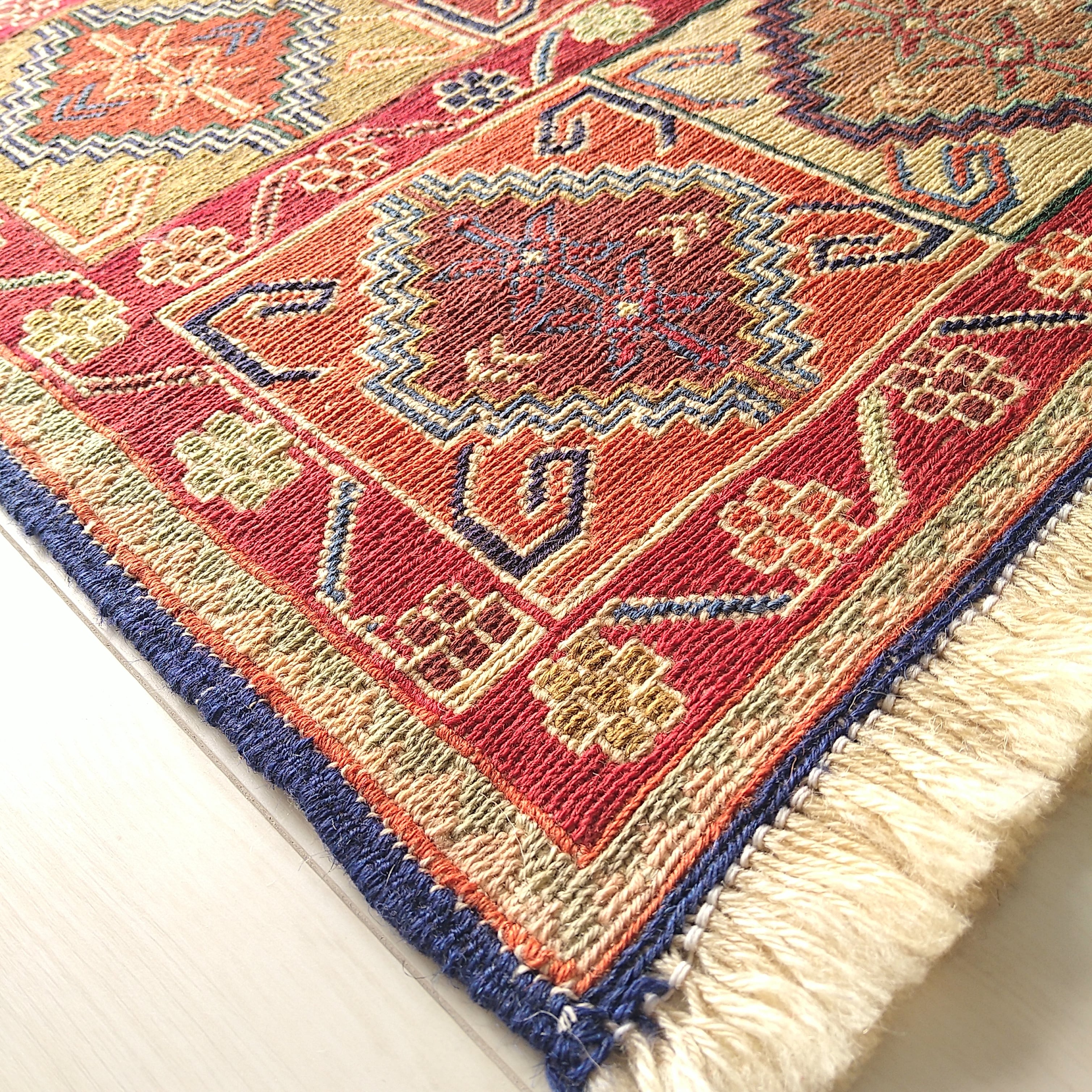 スマック織りでとても細かく丁寧に手織りされた一枚。