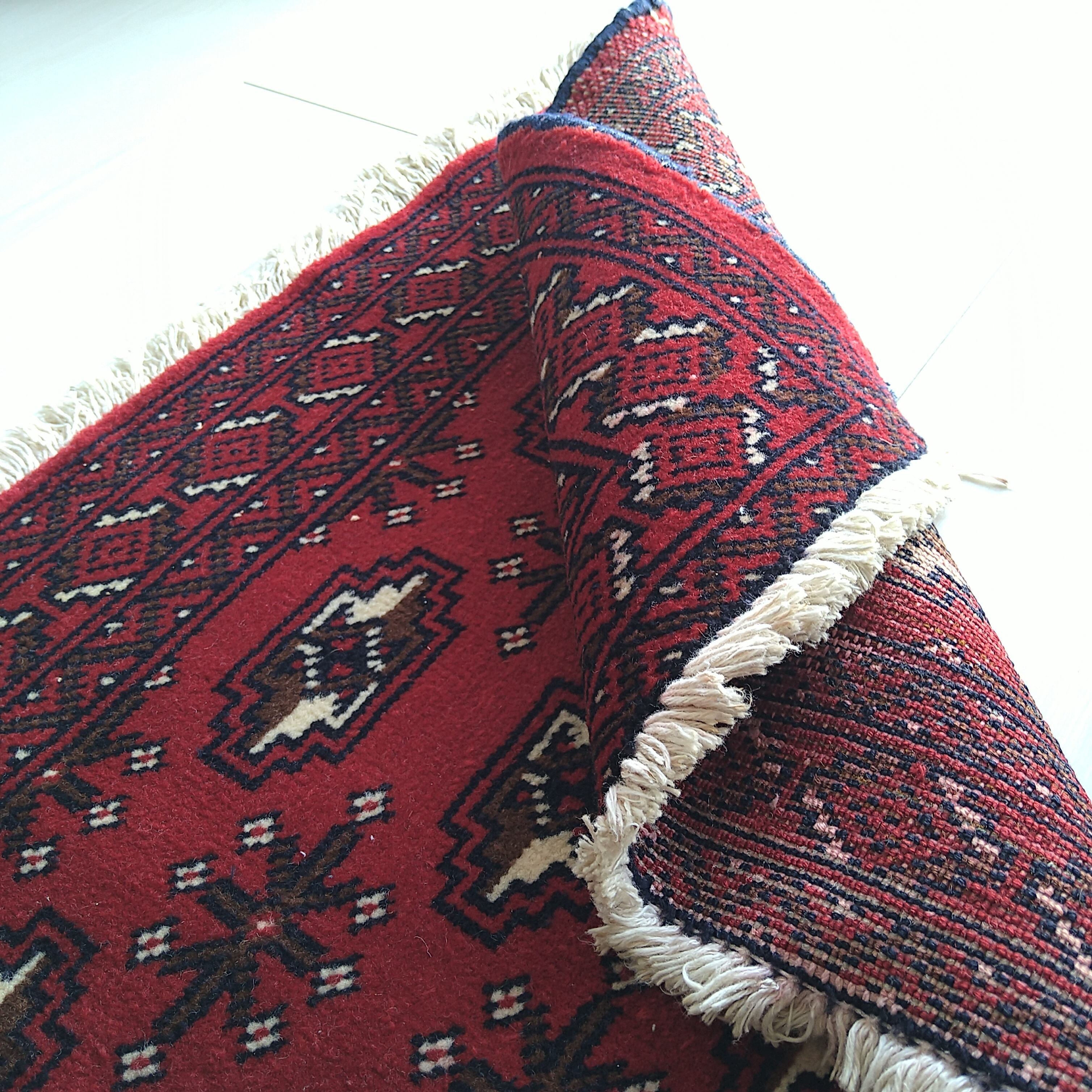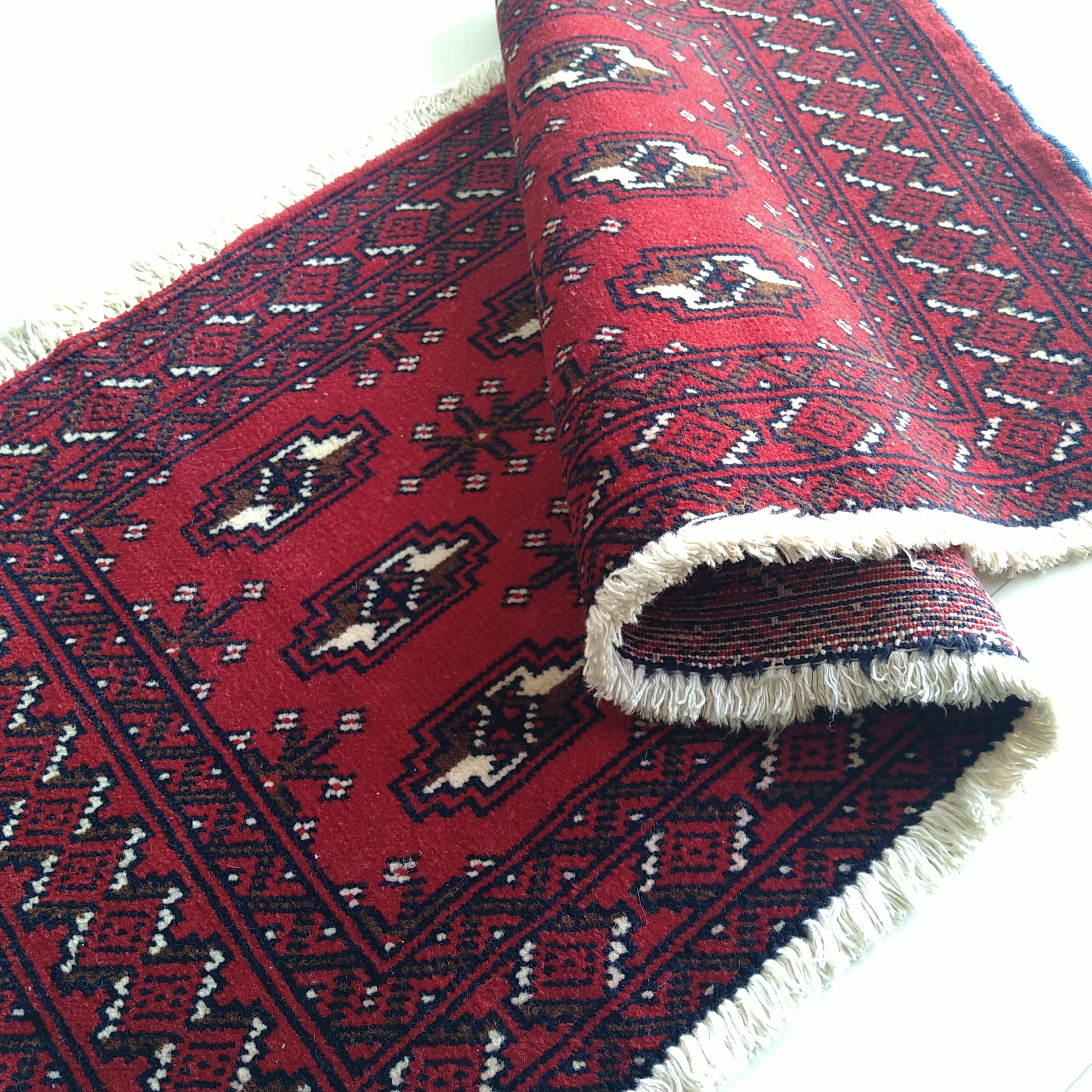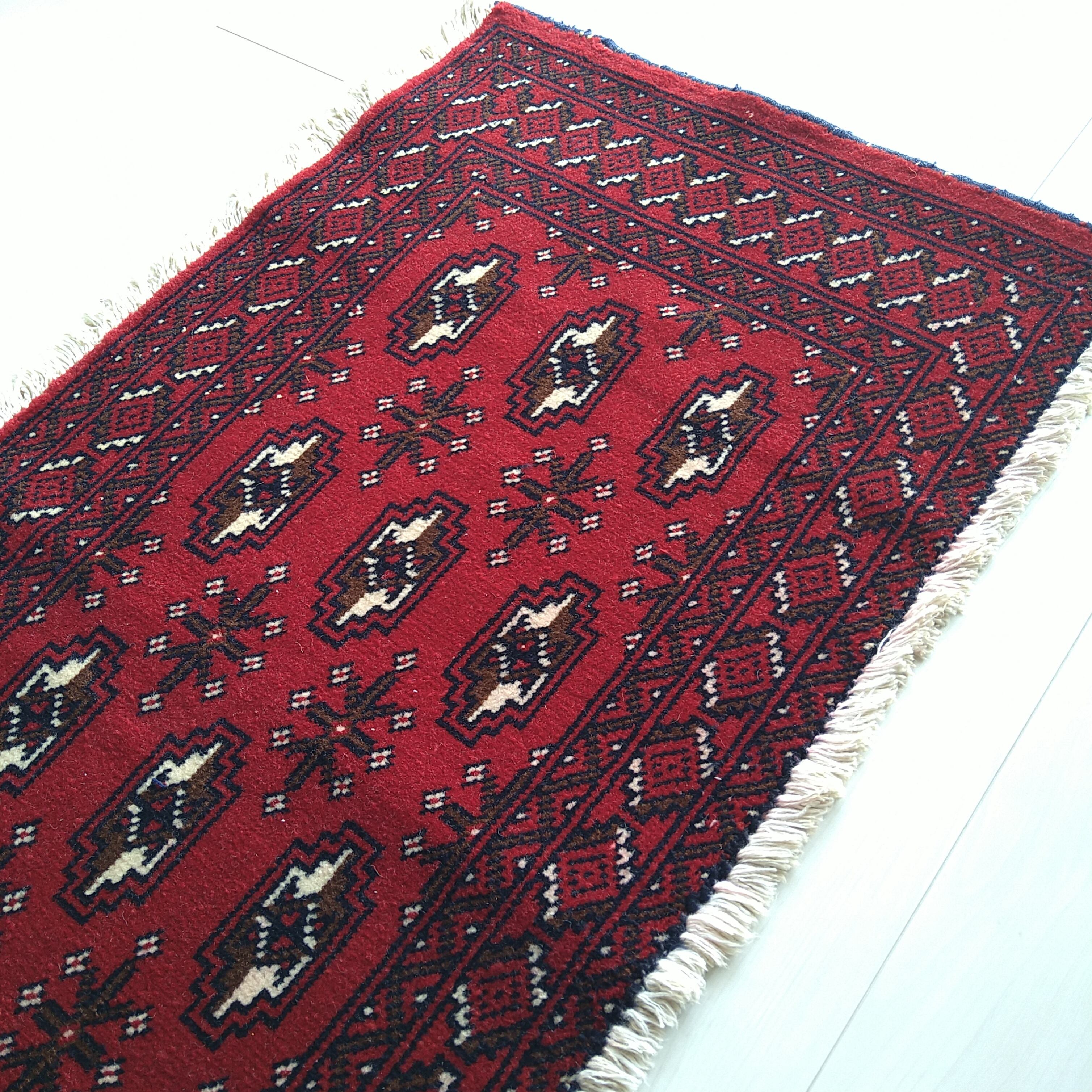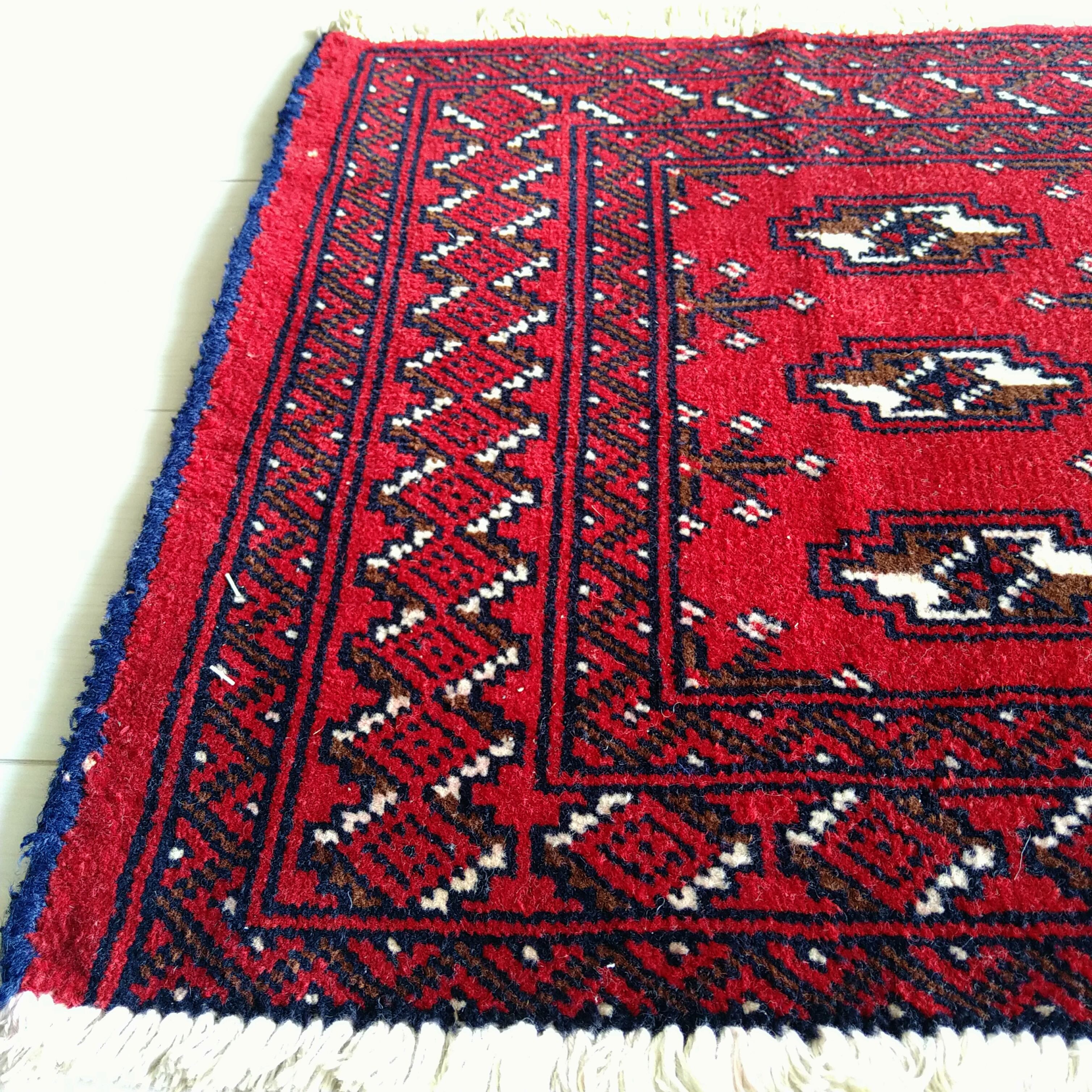Vintage Persian Rug 105x49cm Turkmen Vivid Red ペルシャ絨毯