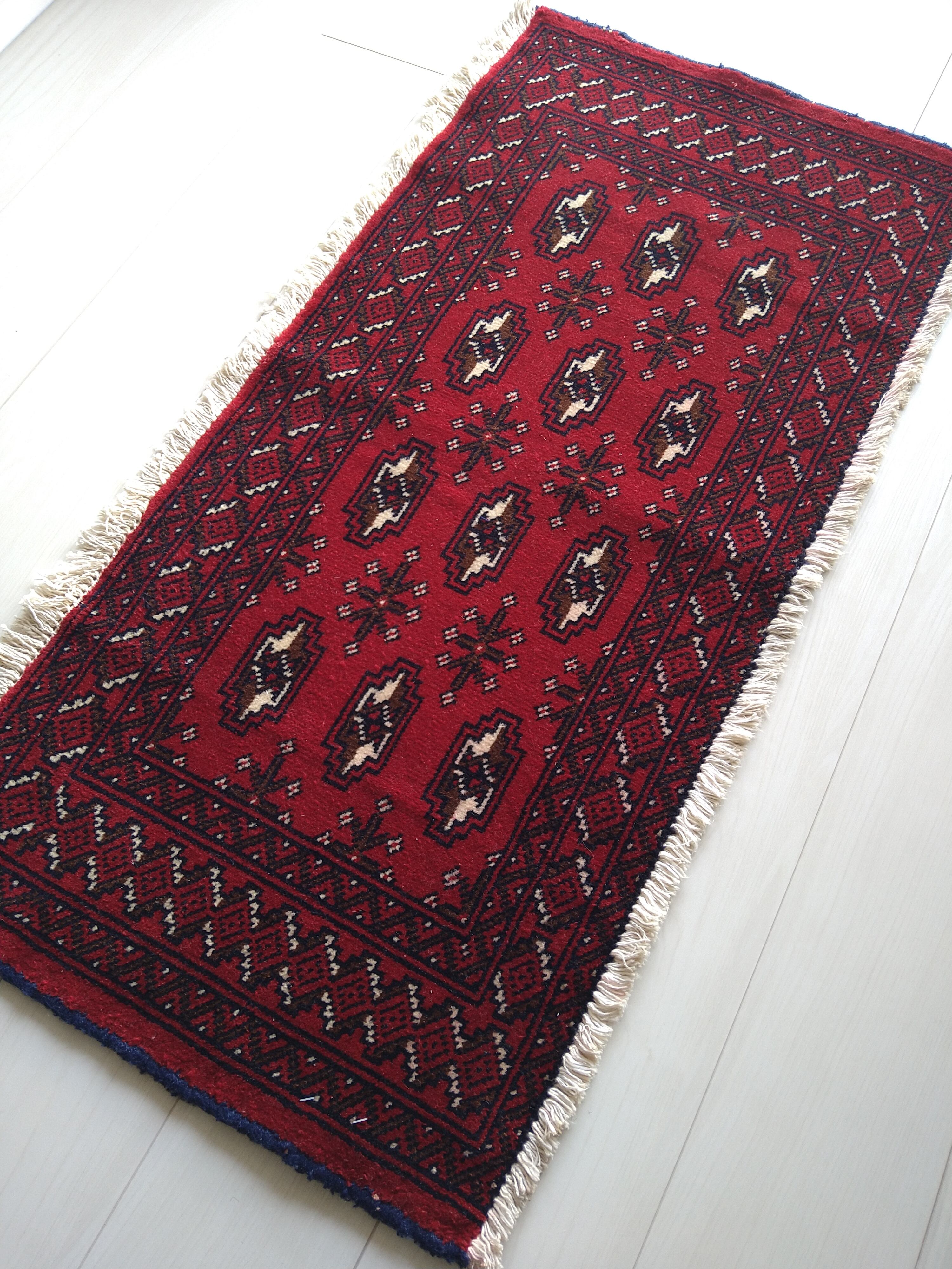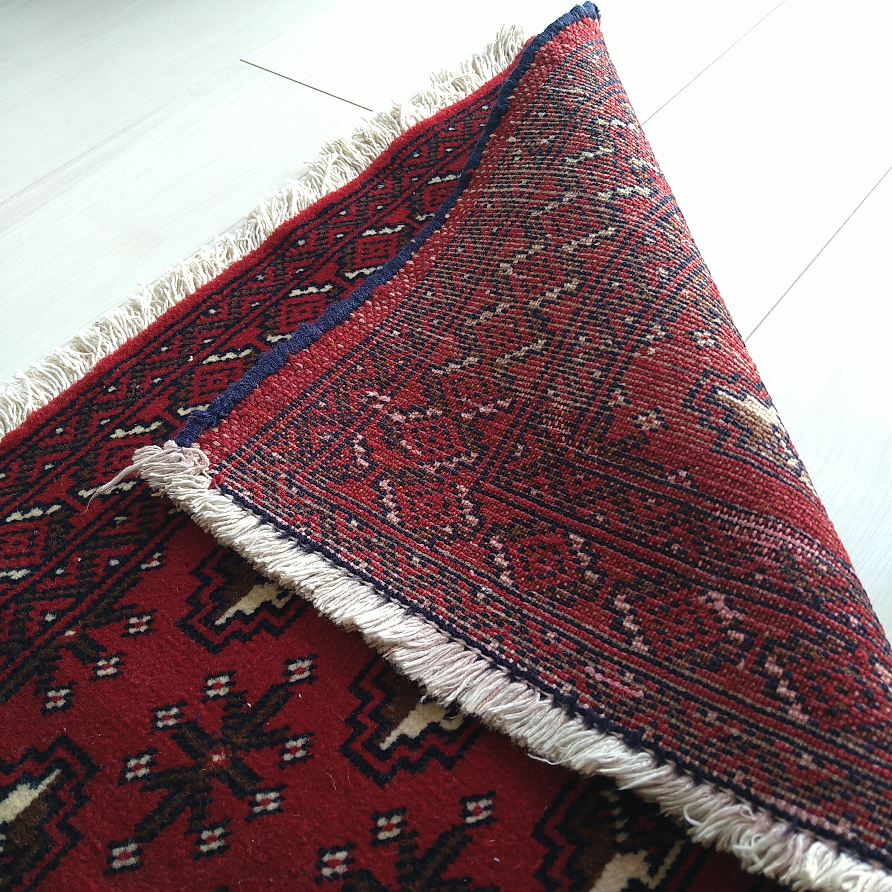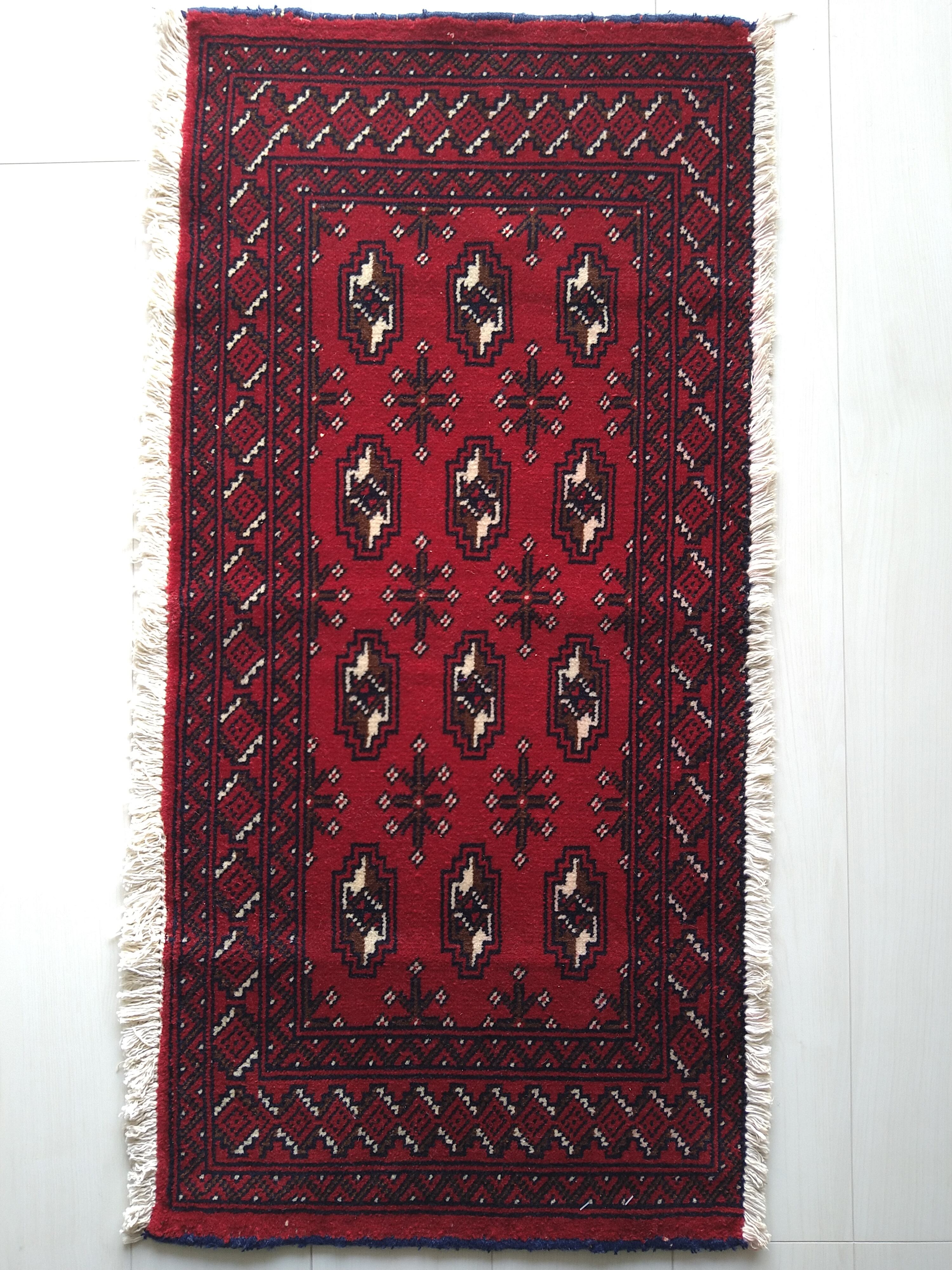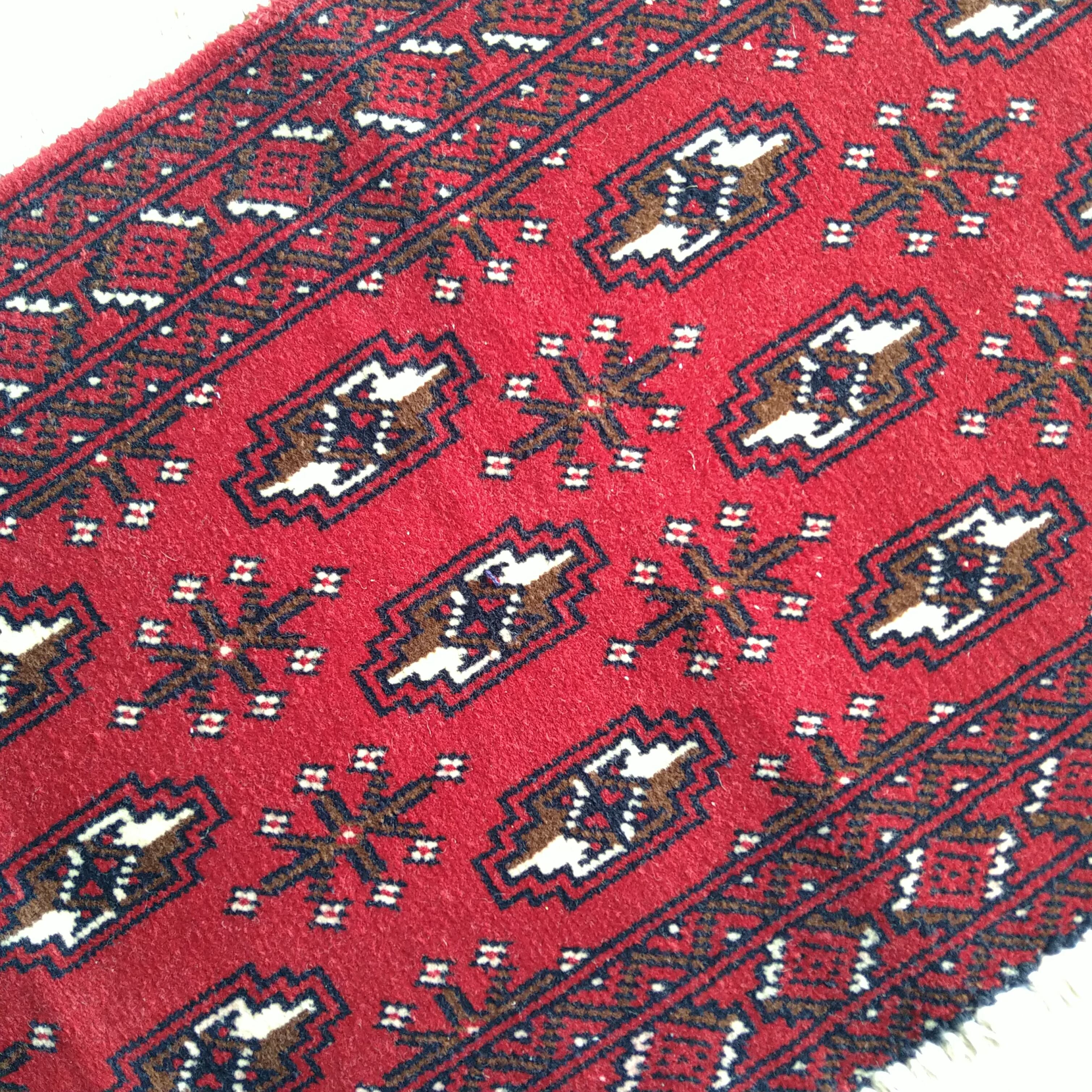 Vintage Persian Rug 105x49cm Turkmen Vivid Red ペルシャ絨毯