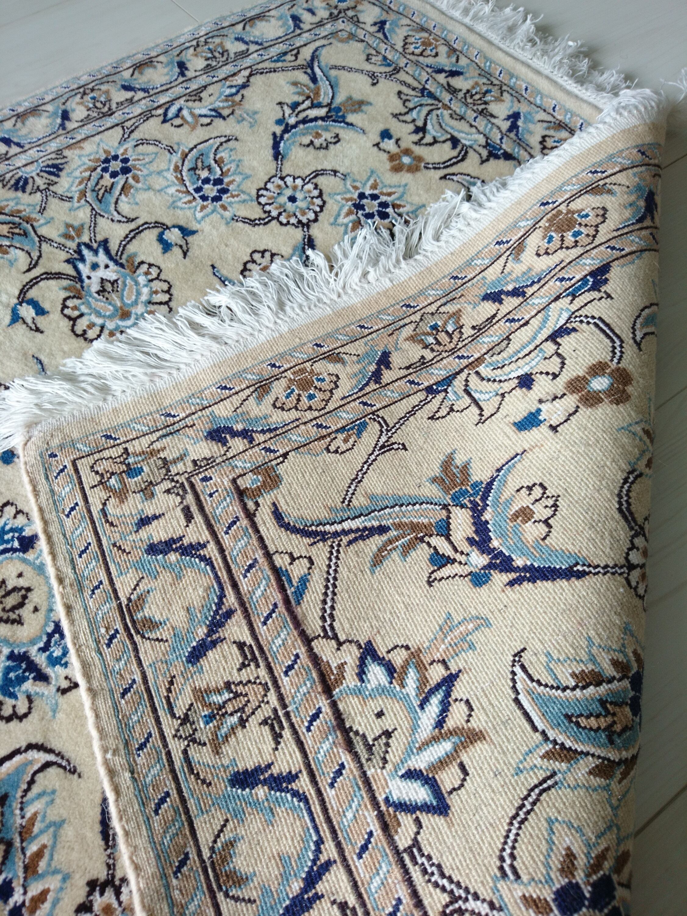 ナイン産、トラディショナルなデザインのペルシャ絨毯です。