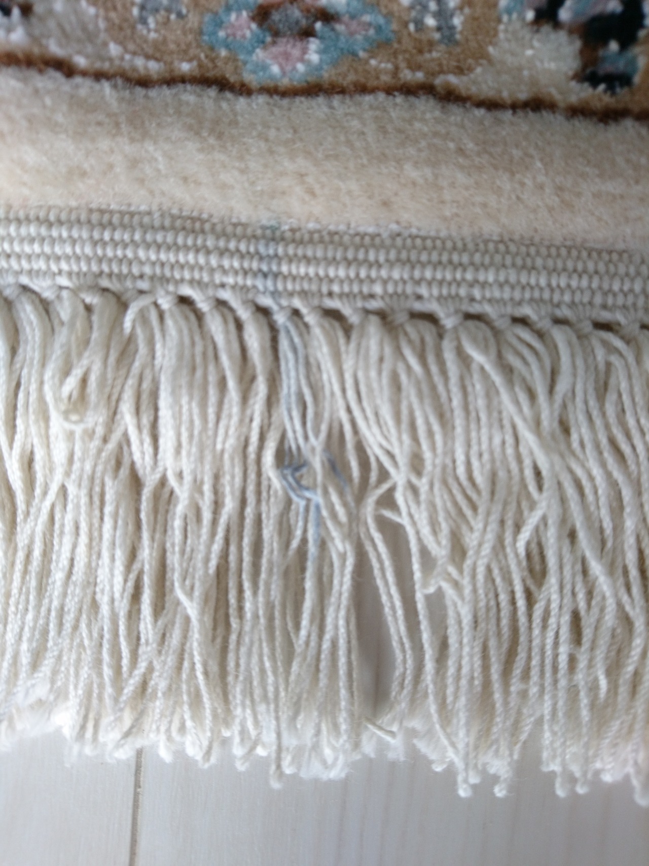 -フリンジの一部にブルーがにじんでいる点を6枚目の写真でご確認ください。