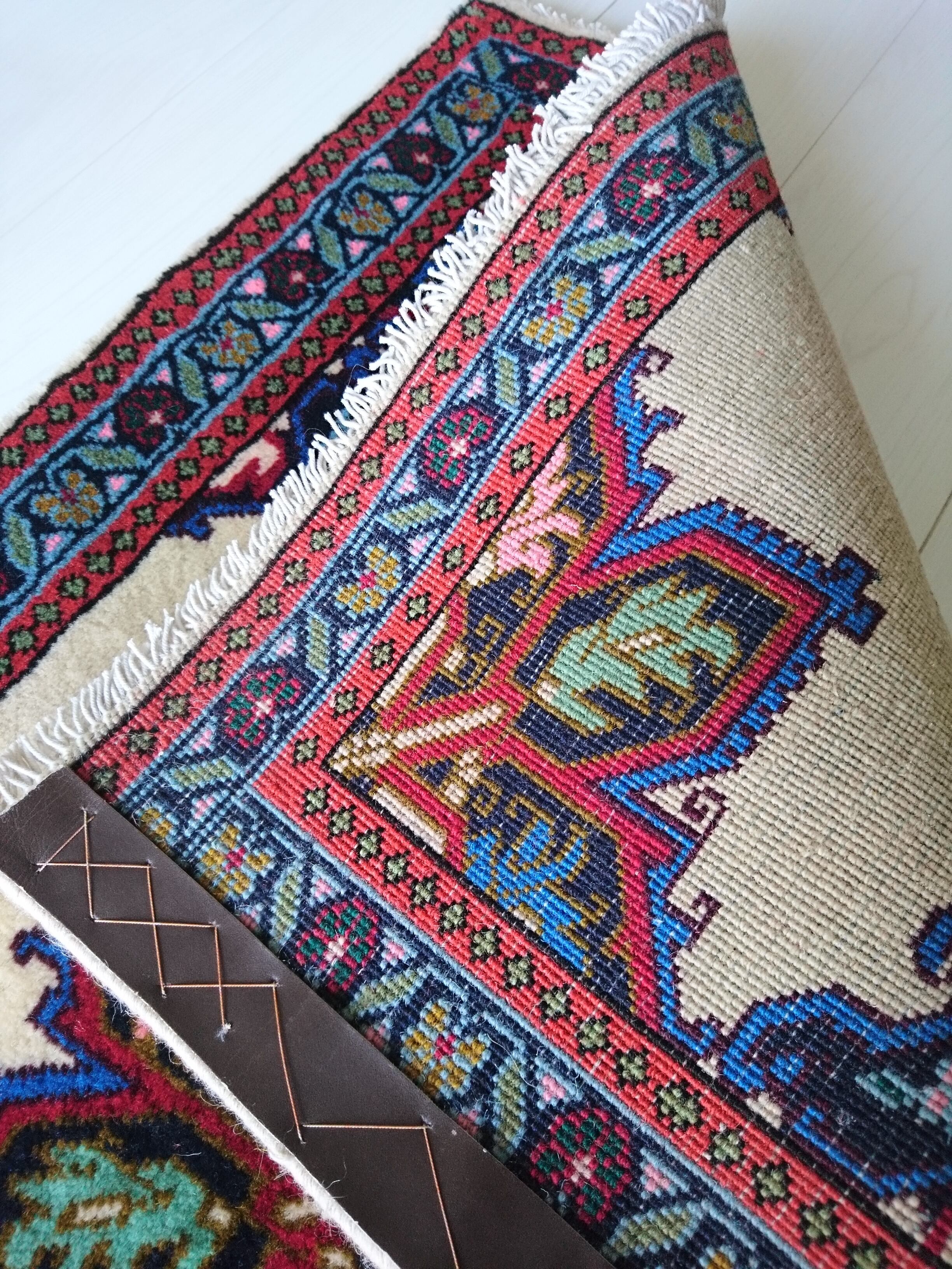 -ハンドメイドのラグは工場生産の既製品とは違いますので多少のゆがみ、色むらがあります。手織りの暖かみを楽しんでいただければ幸いです。