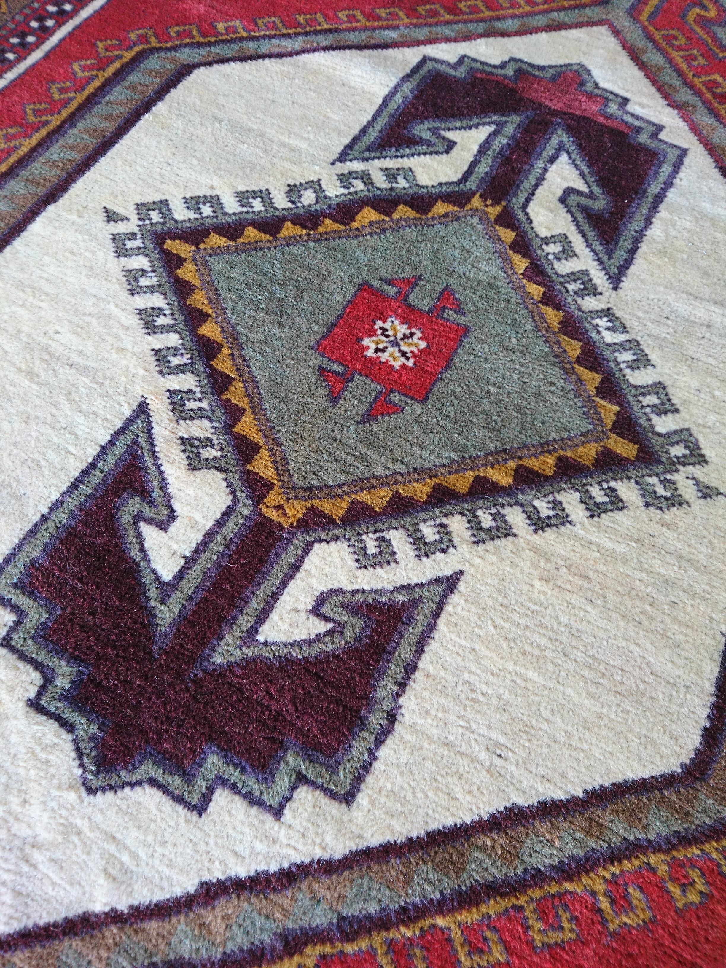 イラン シーラーズで50年程前に織られた、ヴィンテージのペルシャ絨毯 / ラグです。
