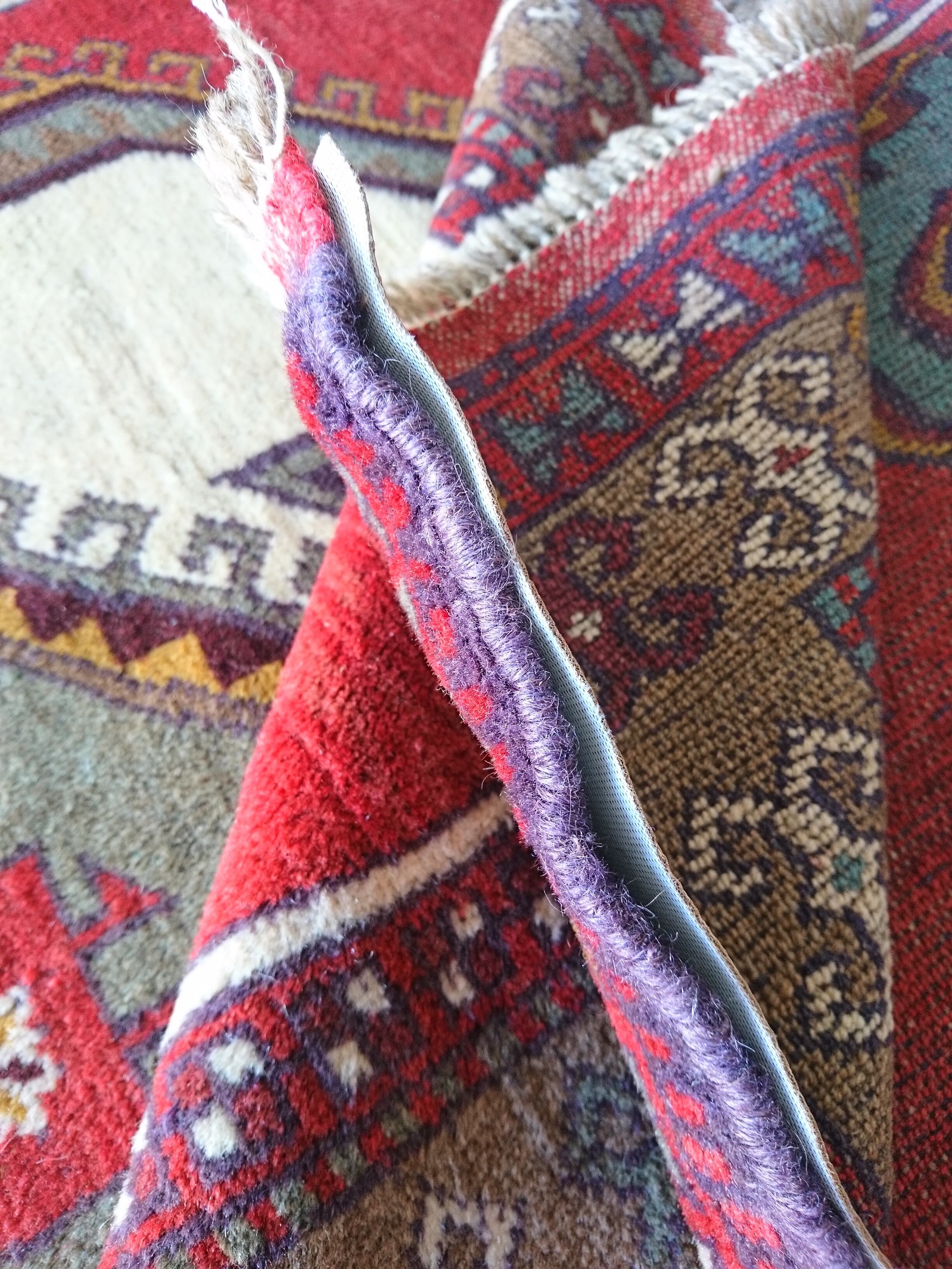 -ハンドメイドのラグは工場生産の既製品とは違いますので多少のゆがみ、色むらがあります。手織りの暖かみを楽しんでいただければ幸いです。