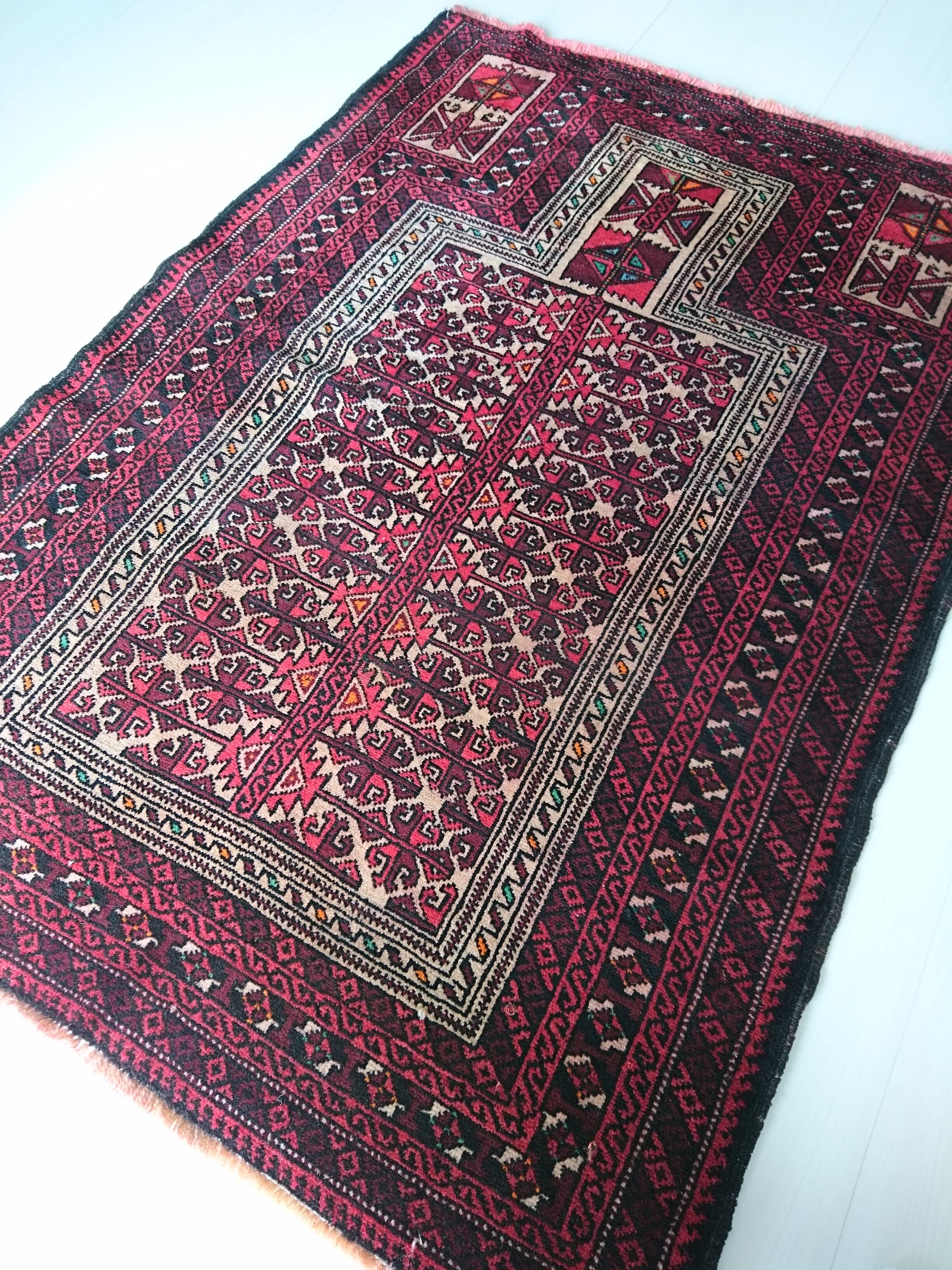 Persian Vintage Prayer Rug Baloch Butterfly 140x100cm ペルシャ絨毯