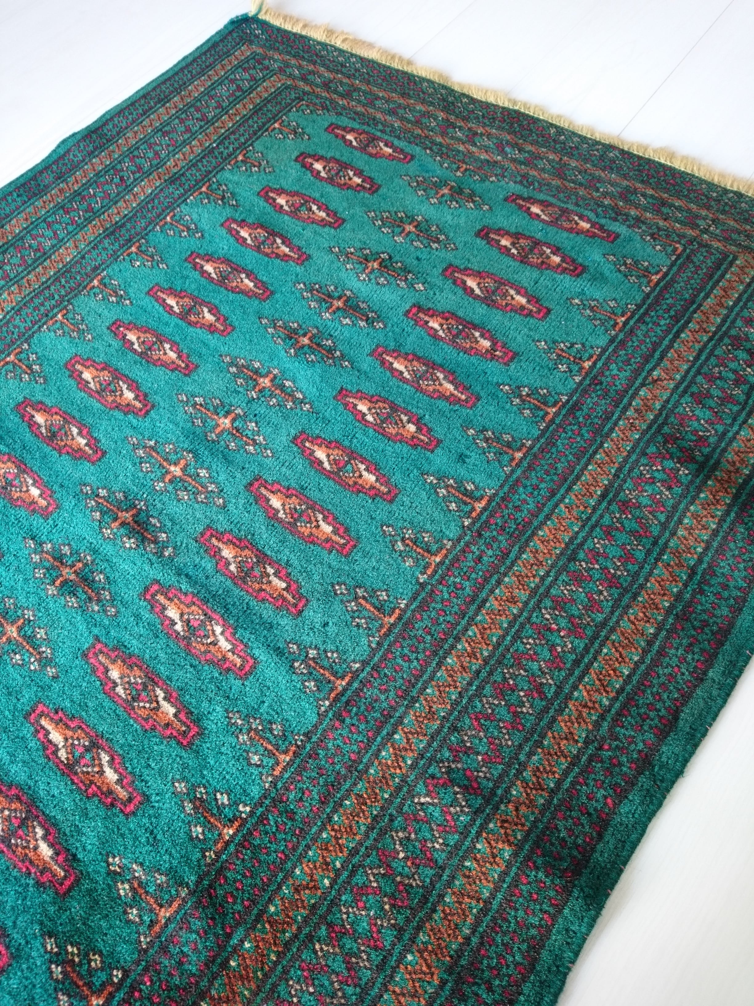 Vintage Persian Rug Dark Green Turkmen 132x93cm ペルシャ絨毯