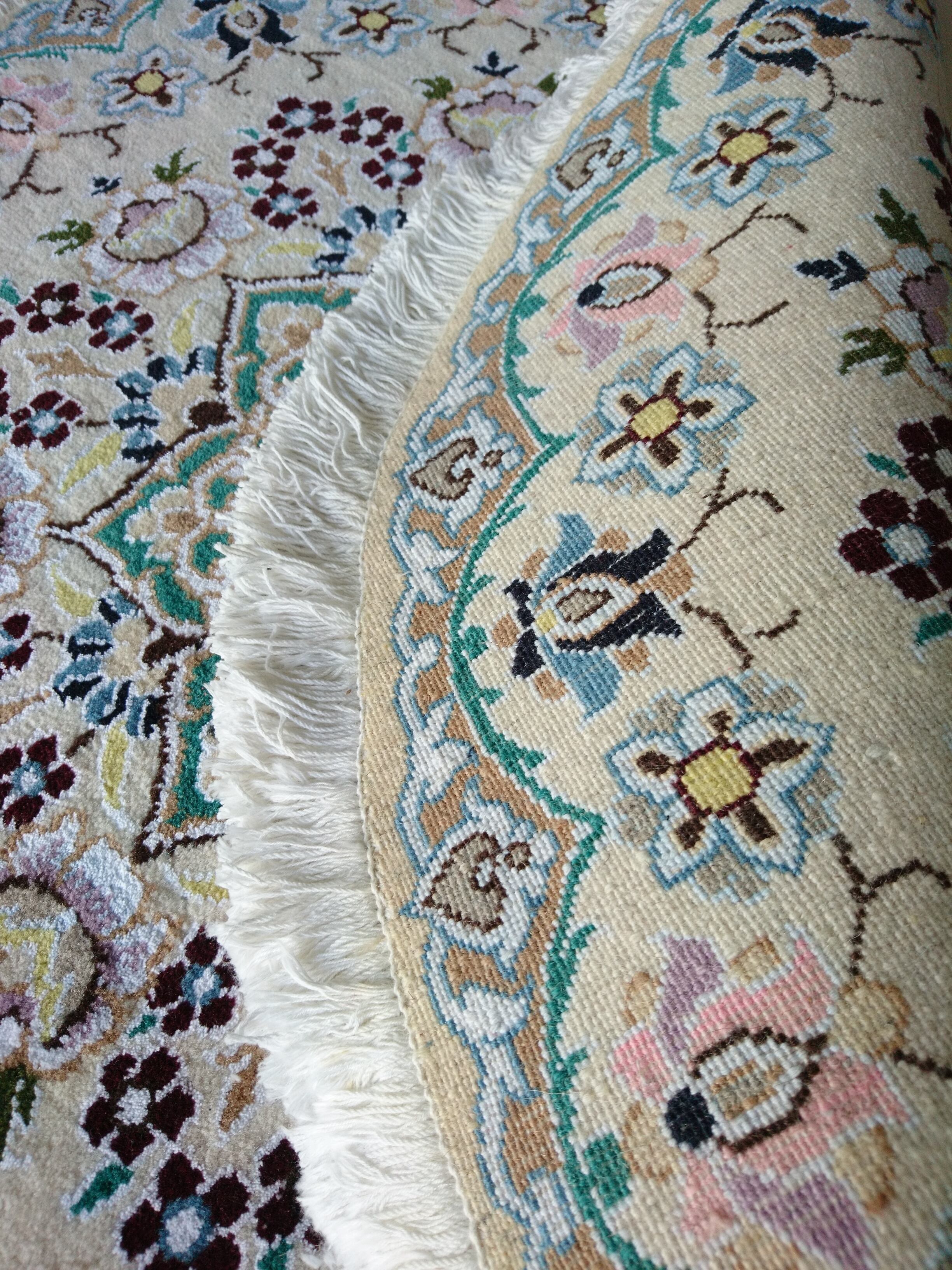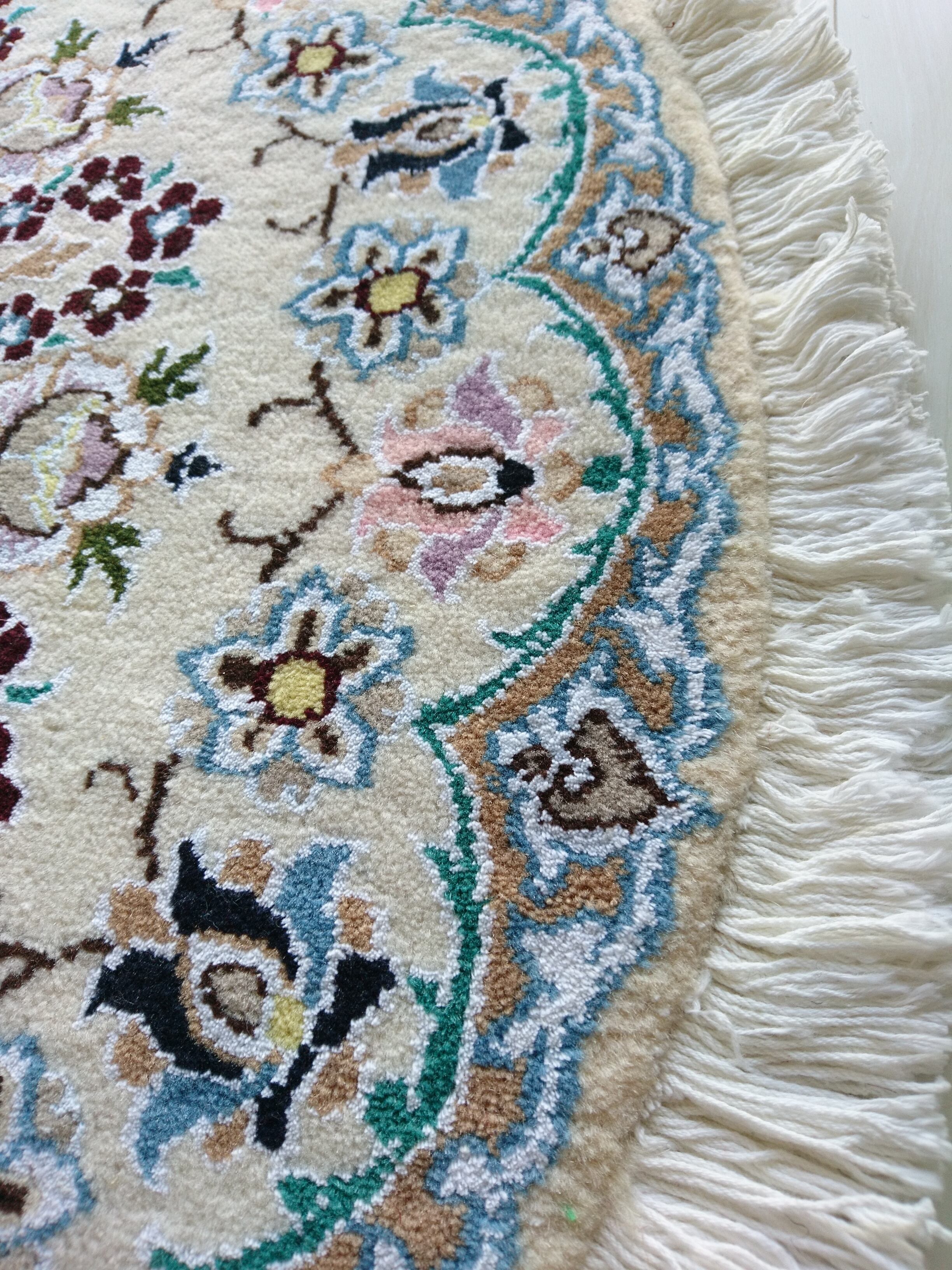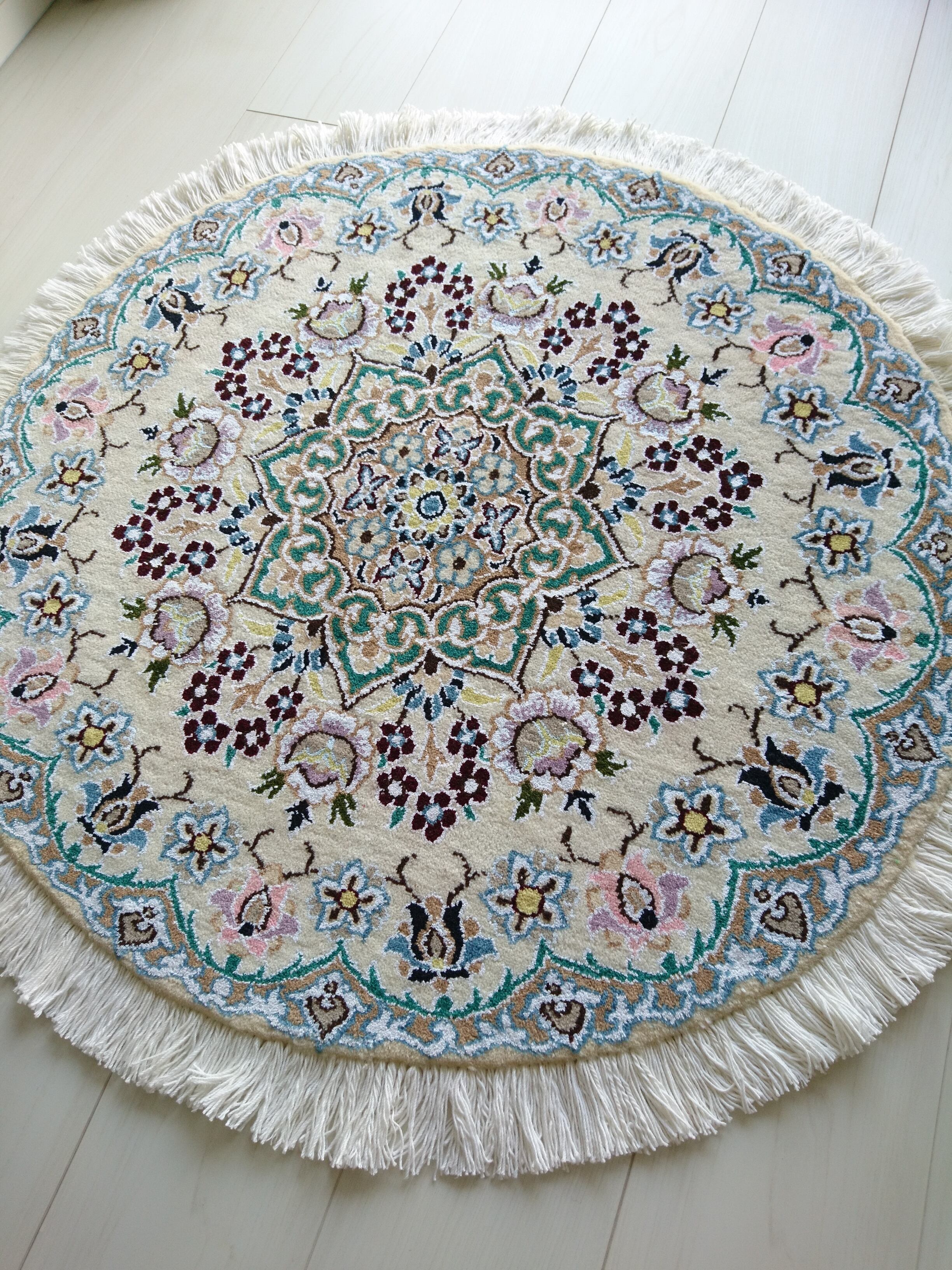 イラン製 ナイン産のラウンド ペルシャ絨毯 / ラグです。