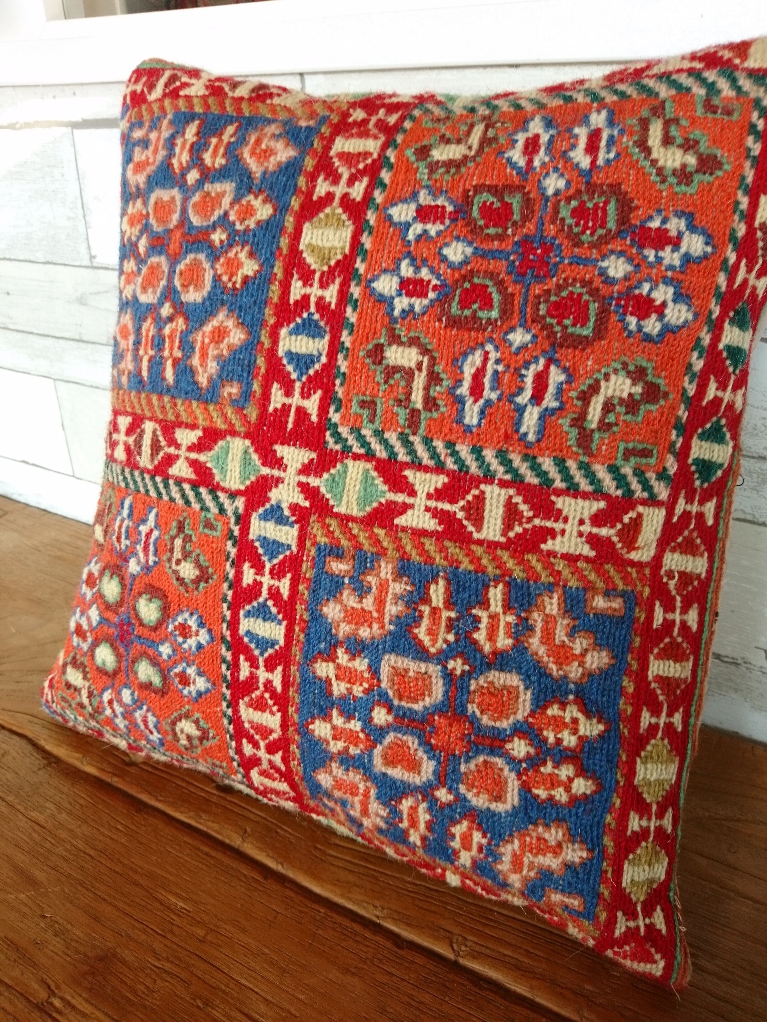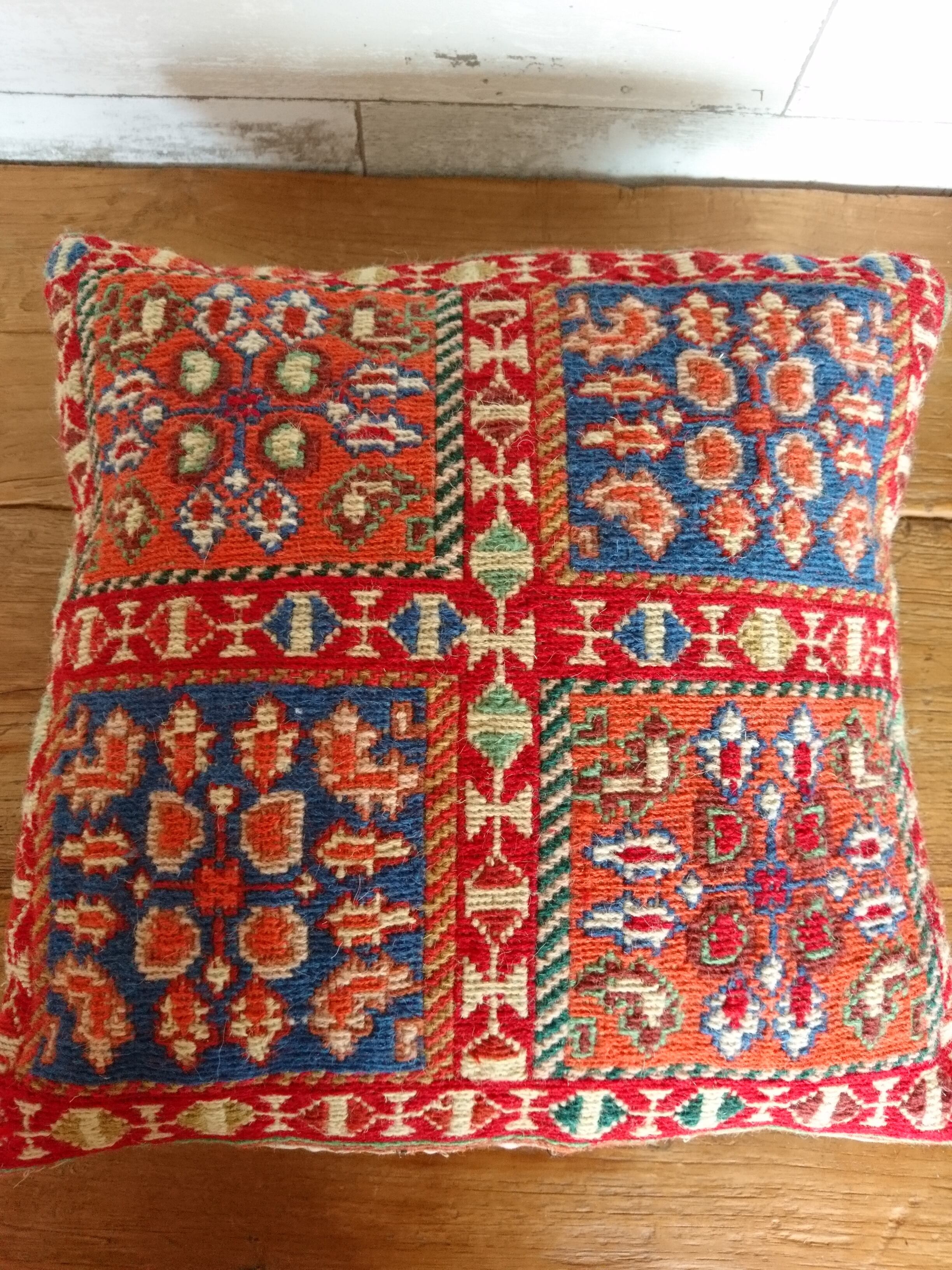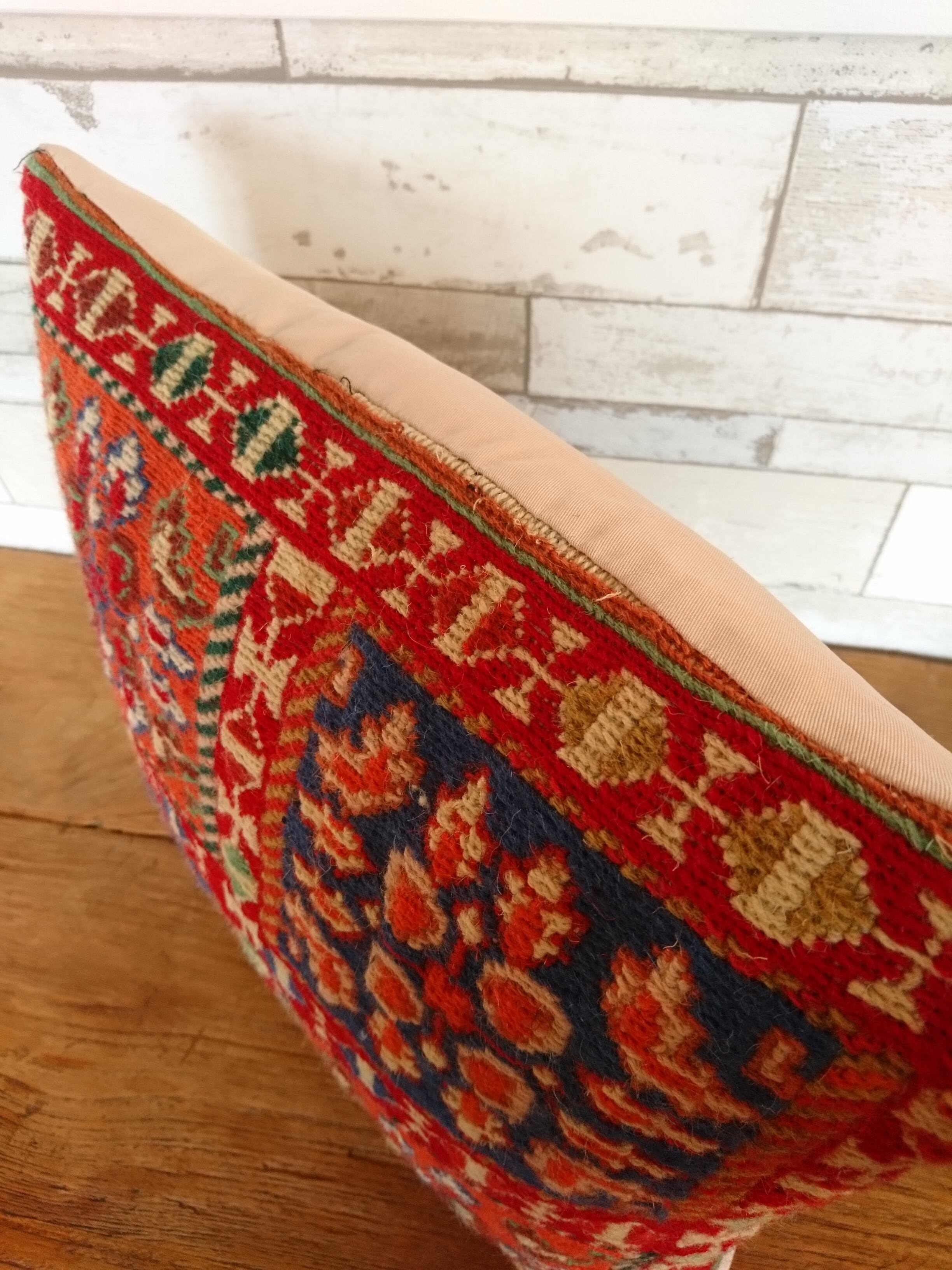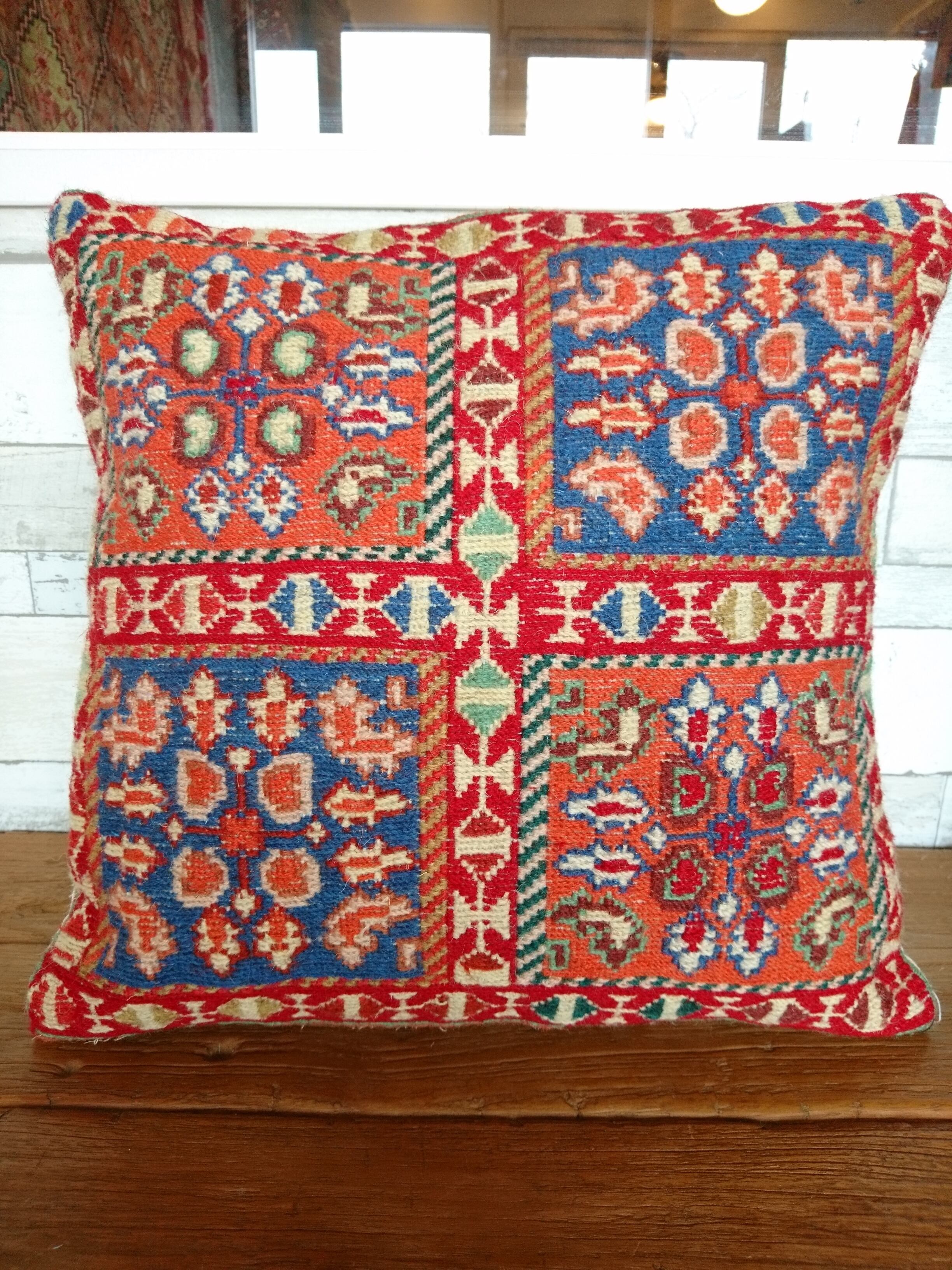 イラン北西部 アルダビール近郊のヴィレッジで手織りされたキリムを使ってクッションカバーにしました。