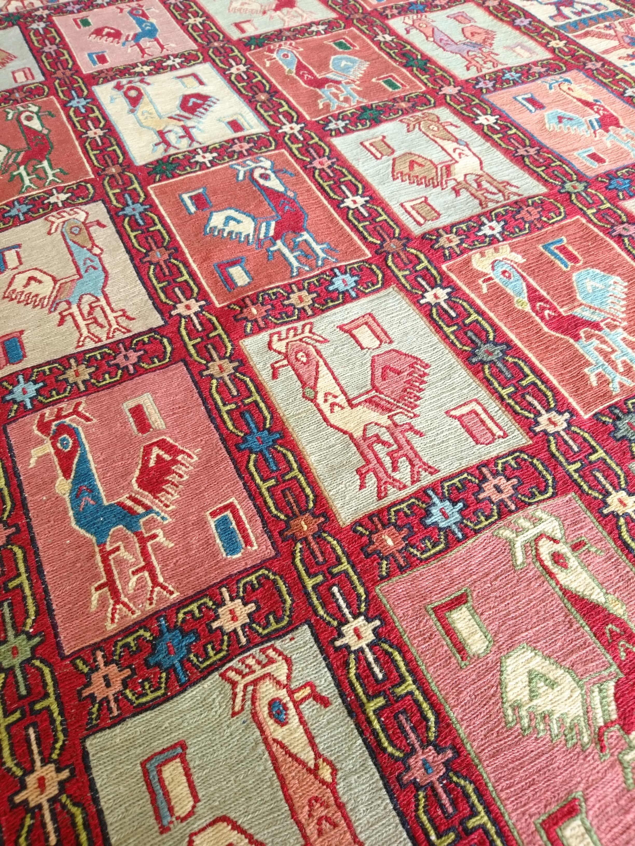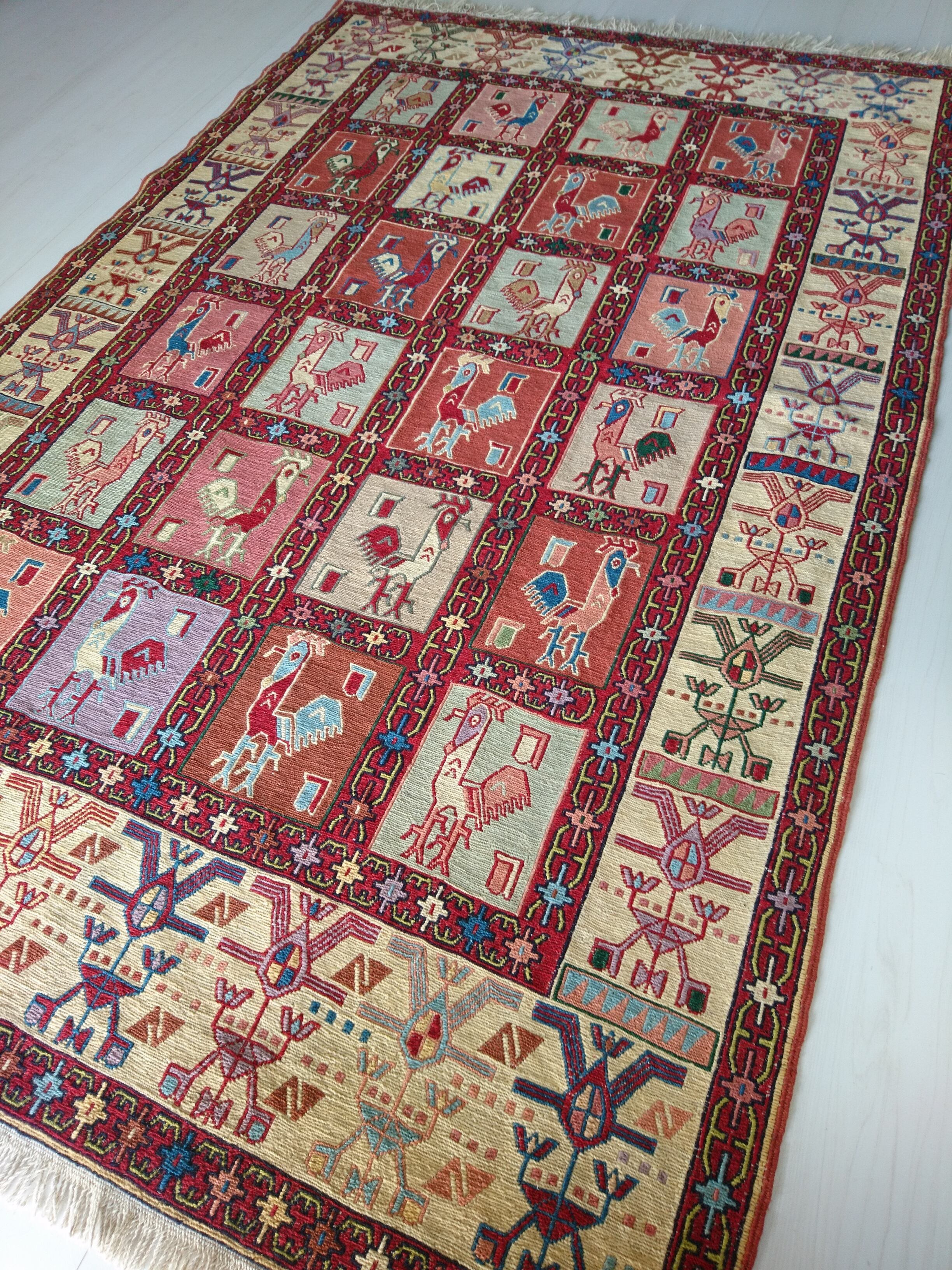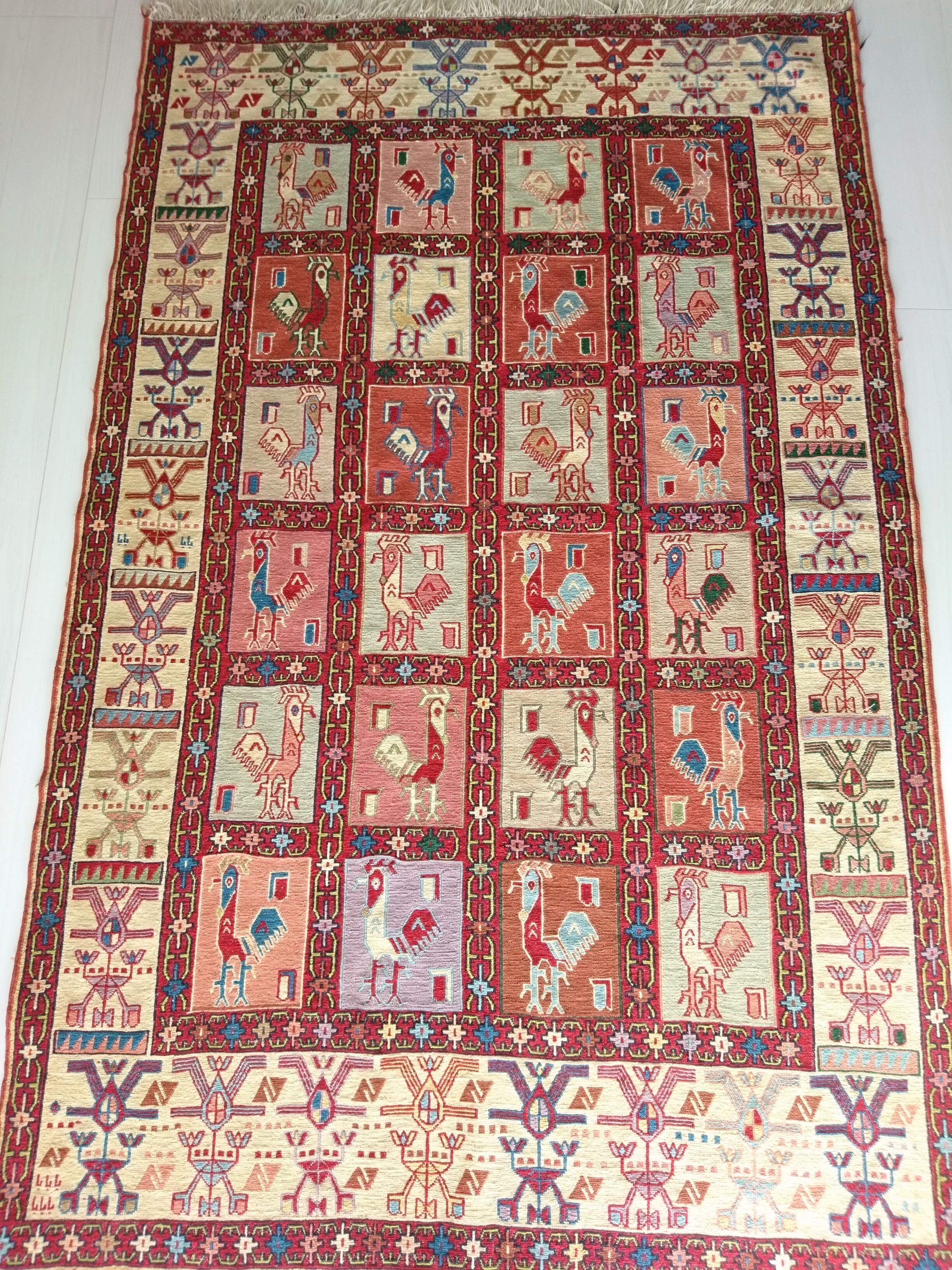 Sumak Persian Kilim 200x132cm Colourful Roosters ペルシャ絨毯