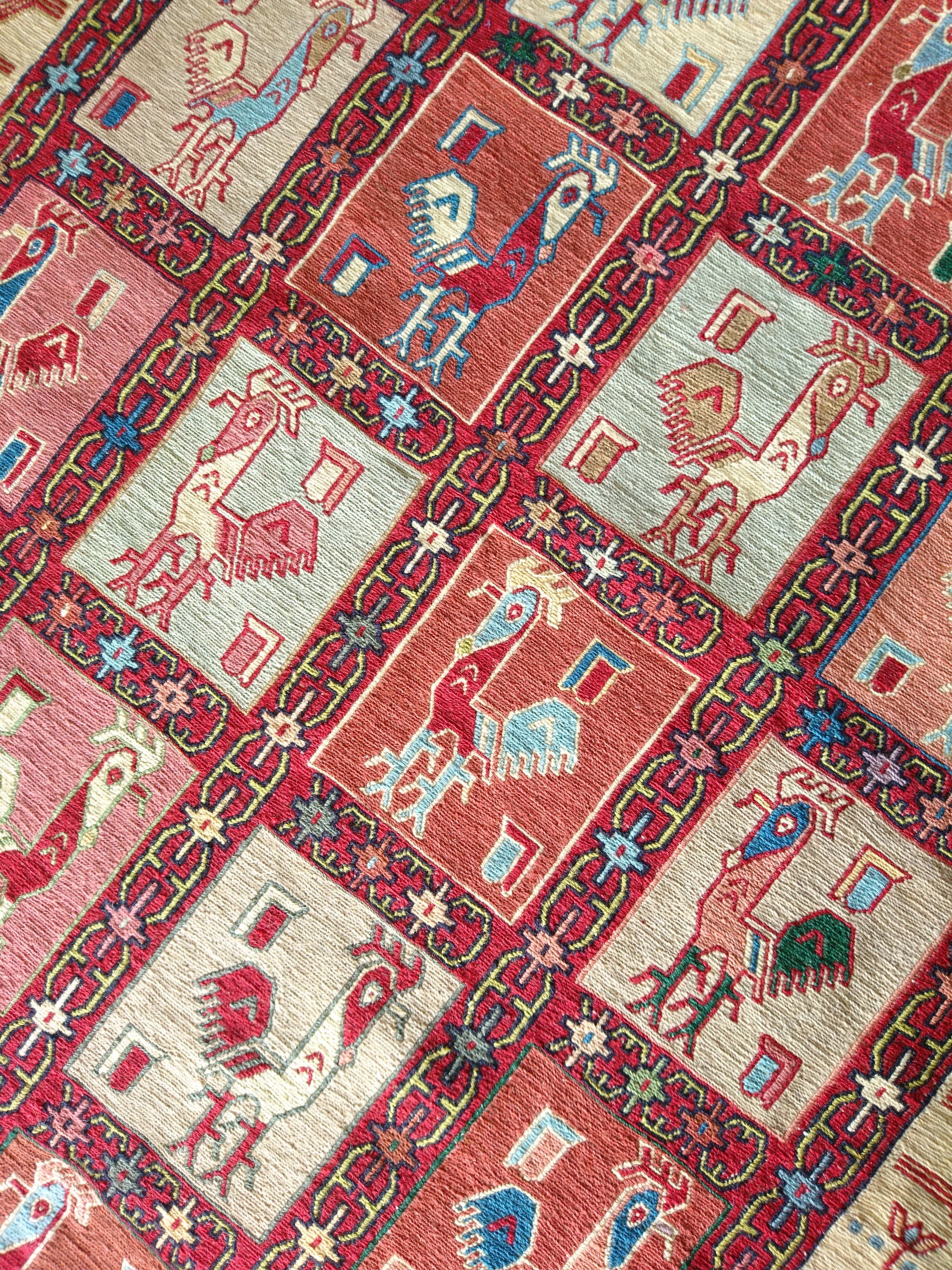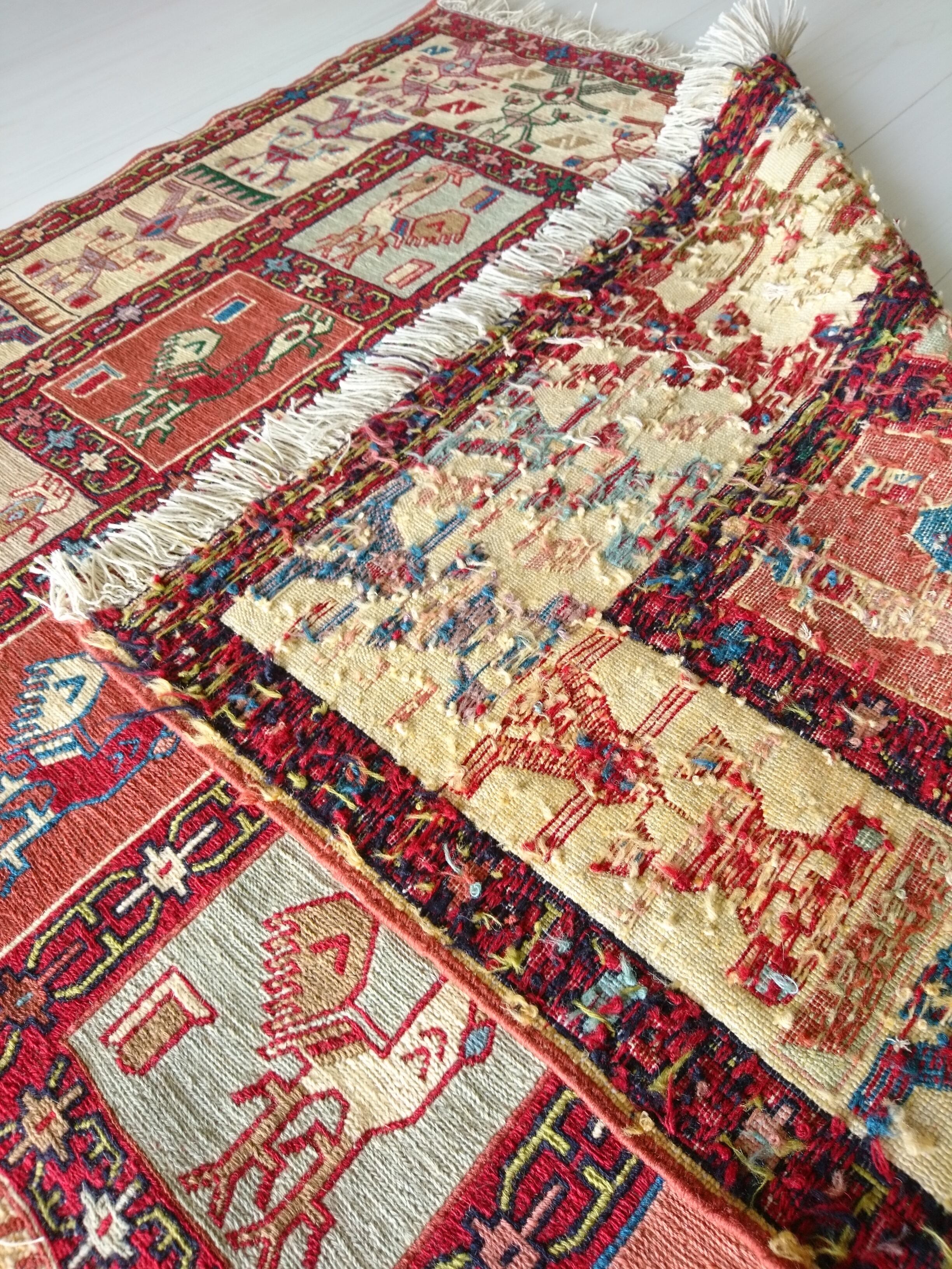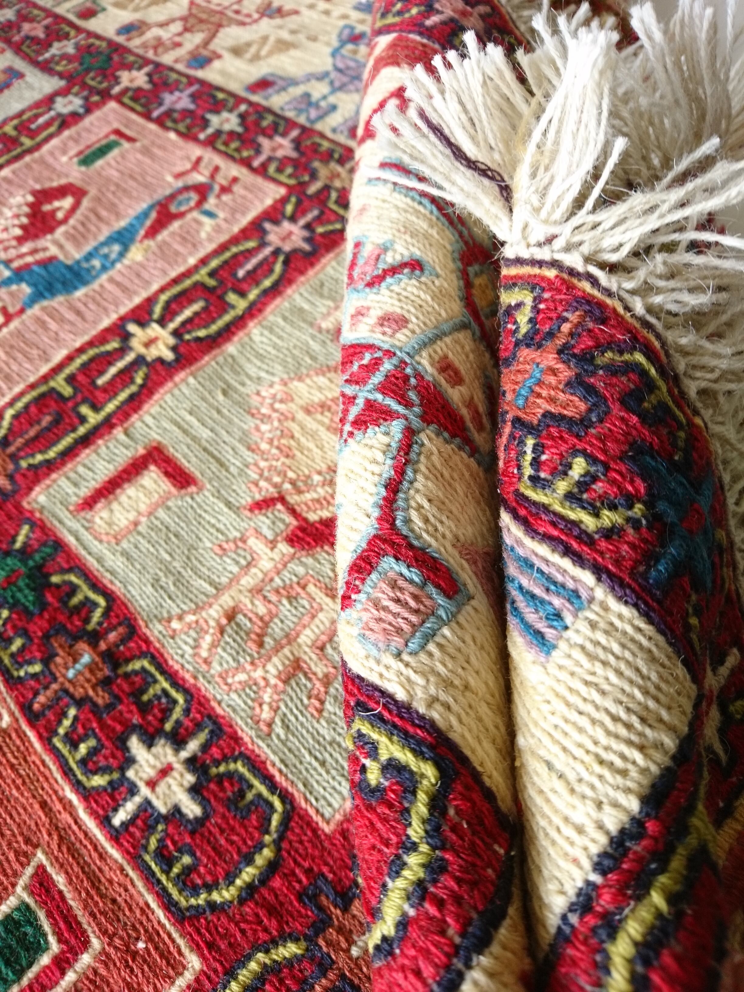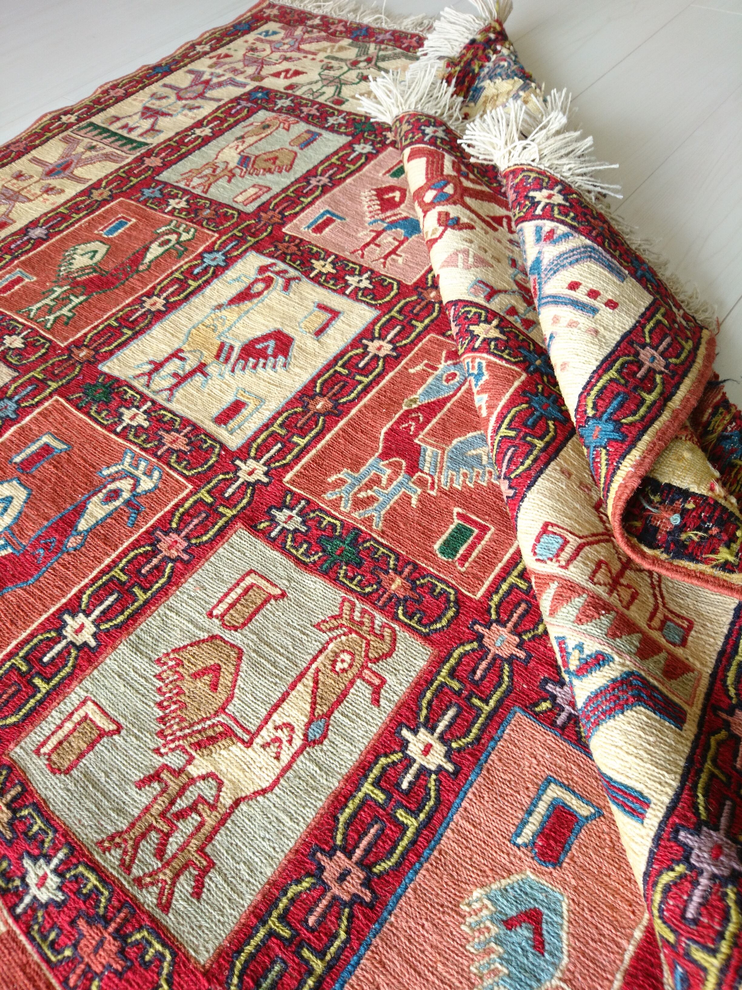 スマック織りでとても細かく丁寧に手織りされた一枚。