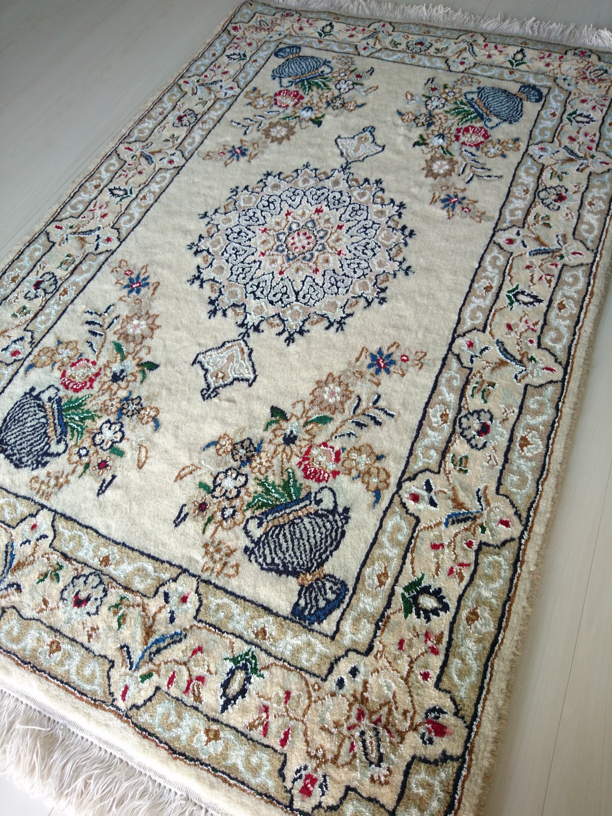 Persian Rug Creamy White Medallion 153x98cm ペルシャ絨毯