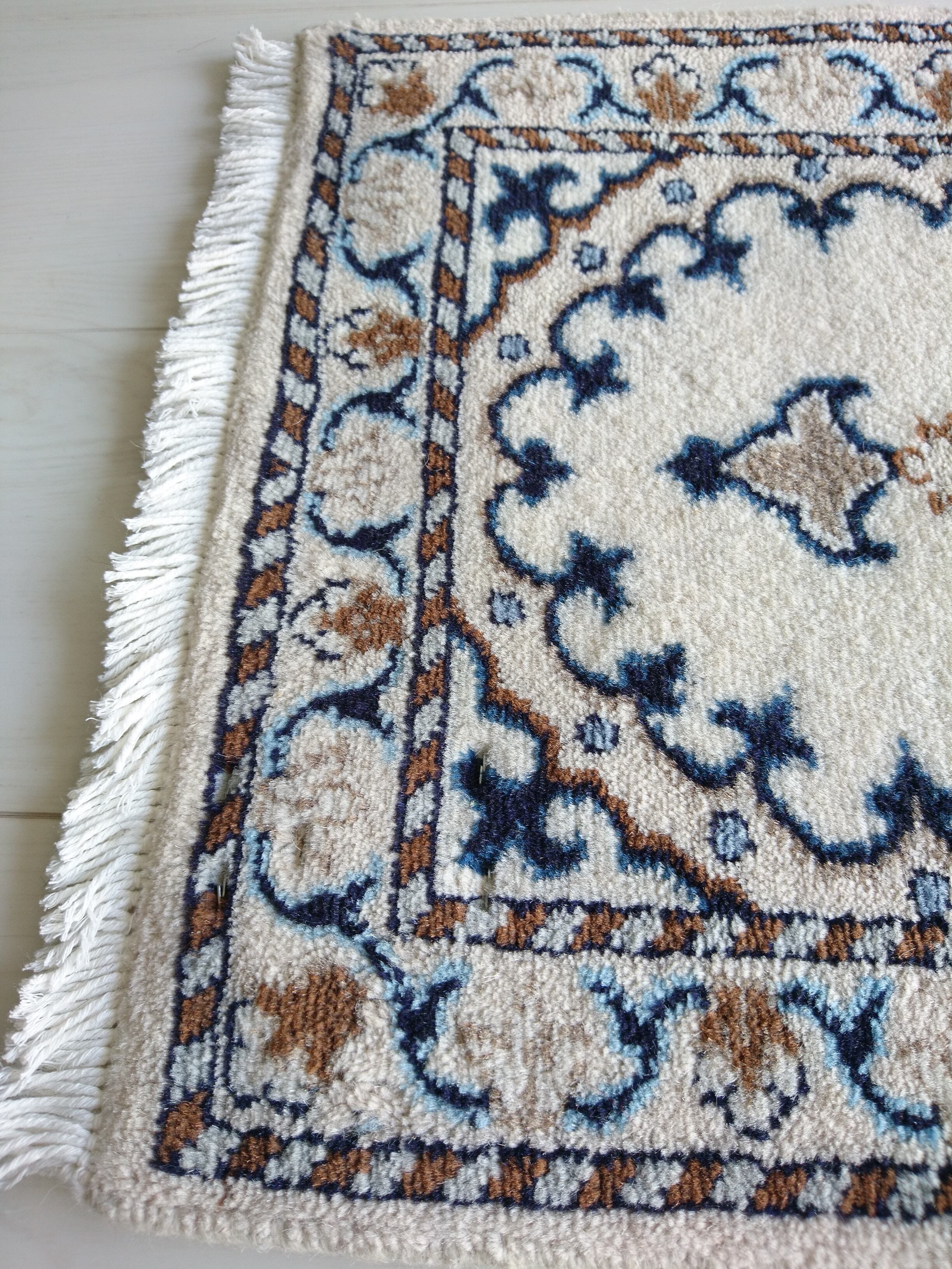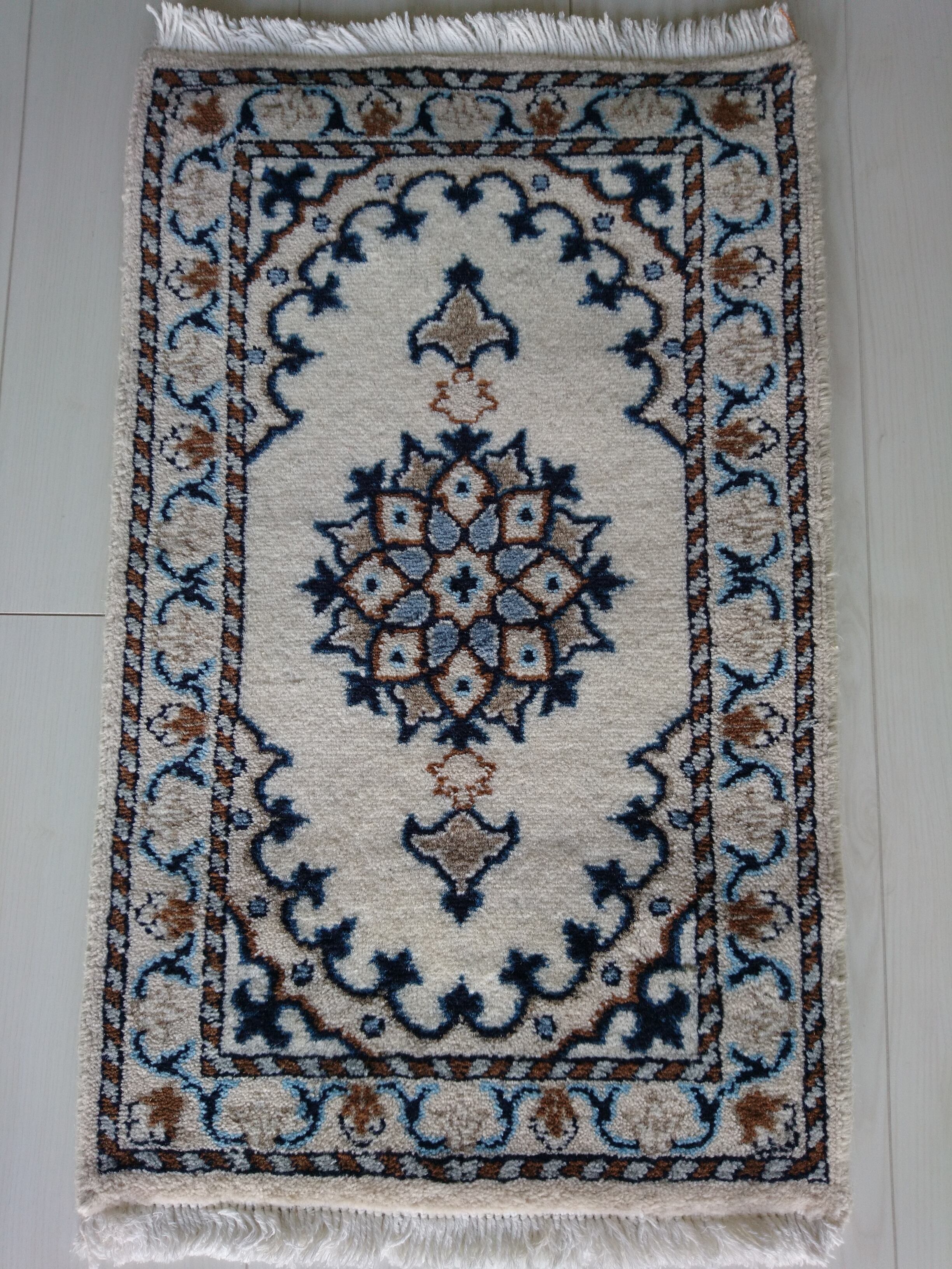 Mini Persian Rug Creamy White Medallion 59x37cm ペルシャ絨毯