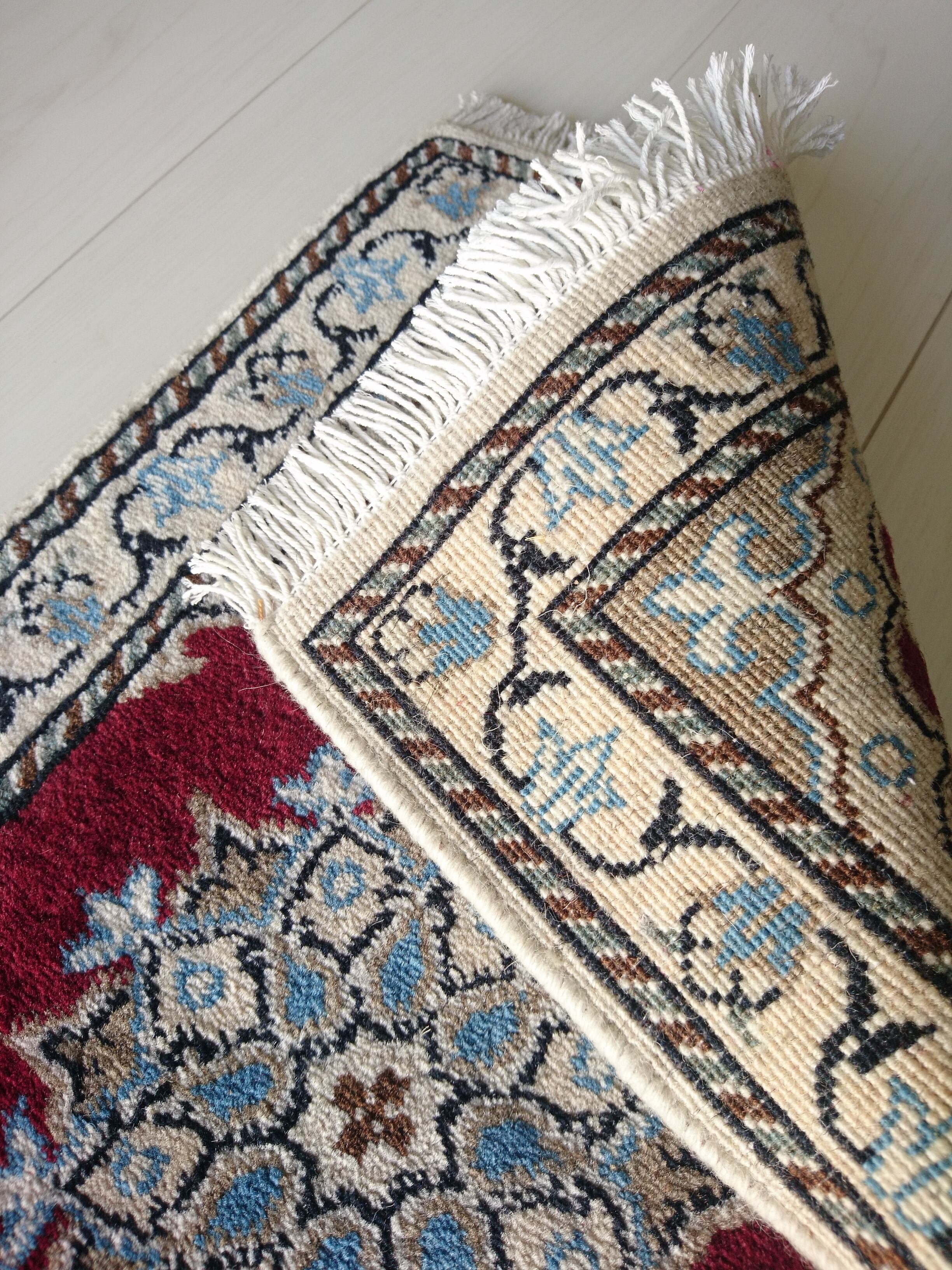 イラン製 テヘラン近郊で手織りされた、ナインデザインの未使用 ミニペルシャ絨毯 / ミニラグです。