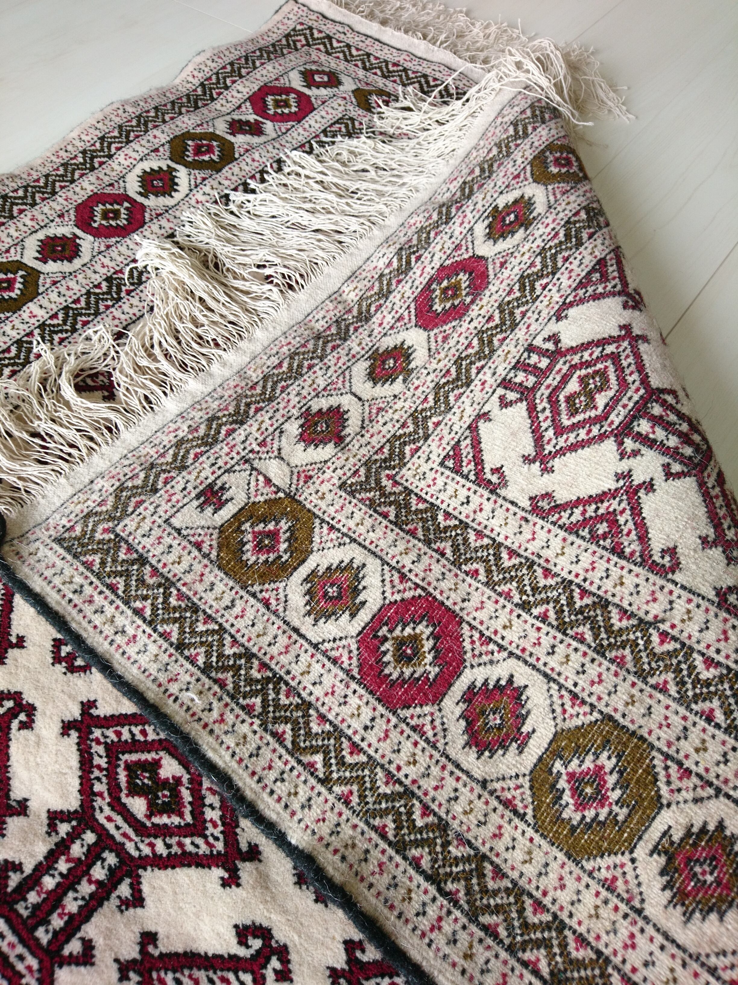 薄い色のベースですのでウールの混じり毛で多少の汚れ感を感じるかもしれません。