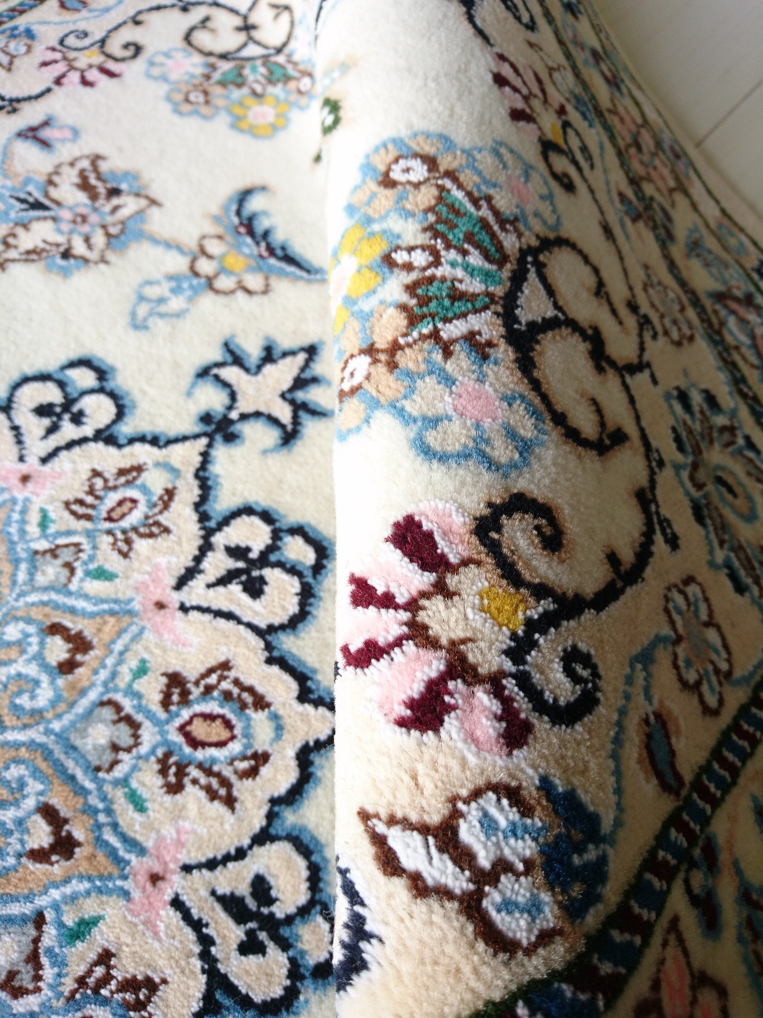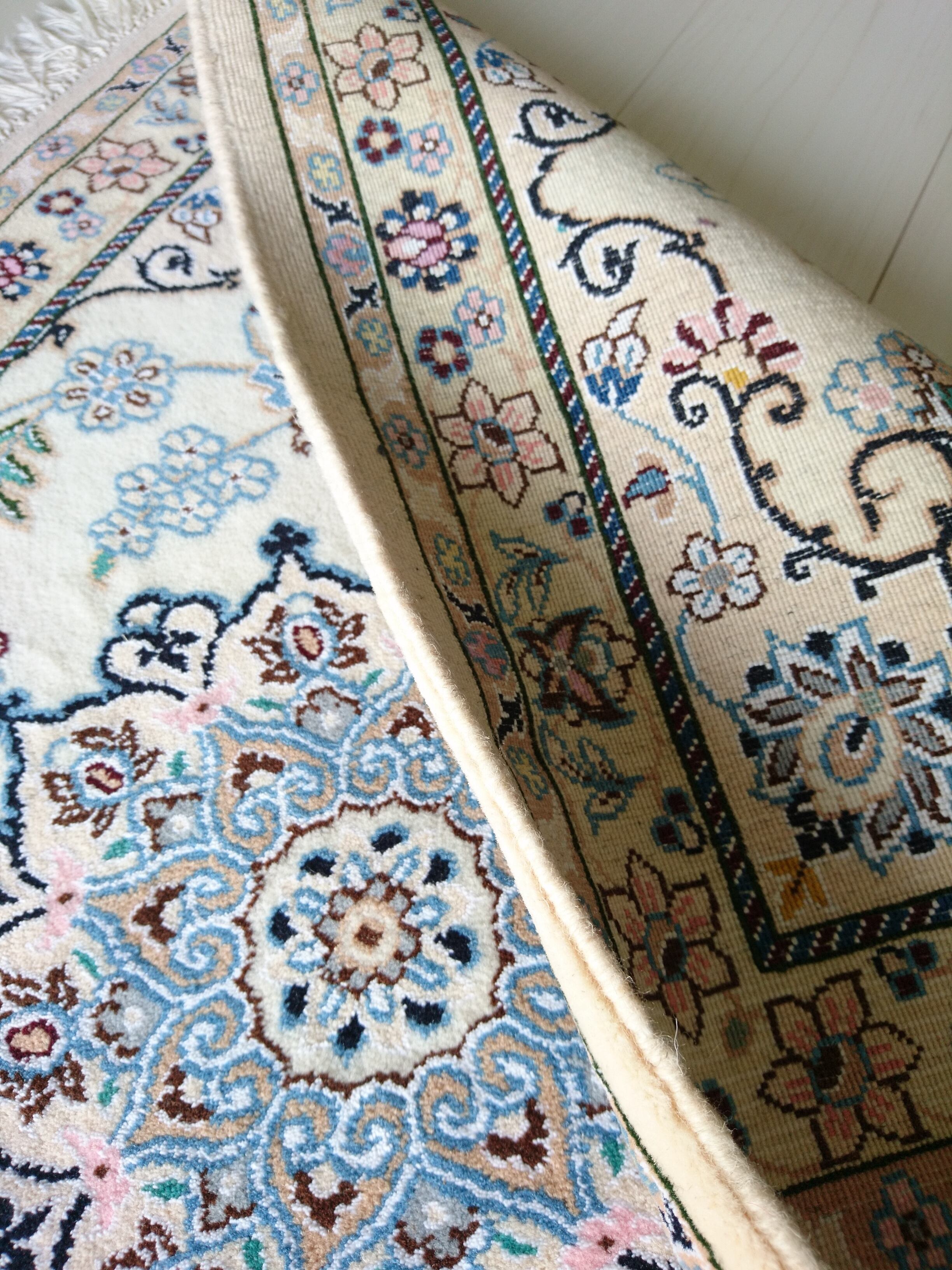 イラン製 ナイン産の新品 ペルシャ絨毯 / ラグです。