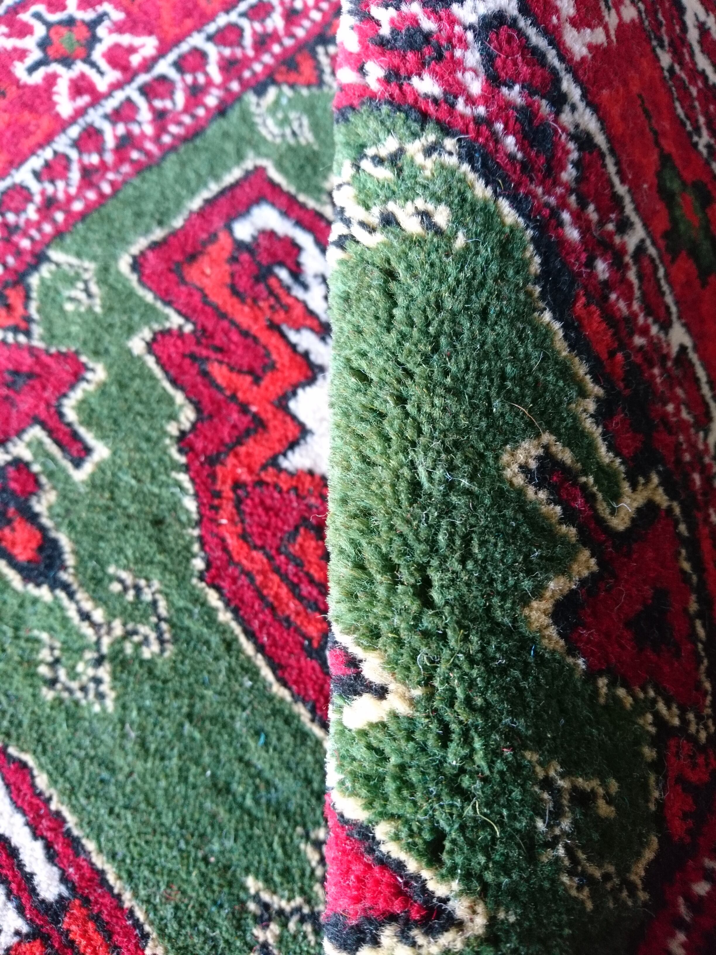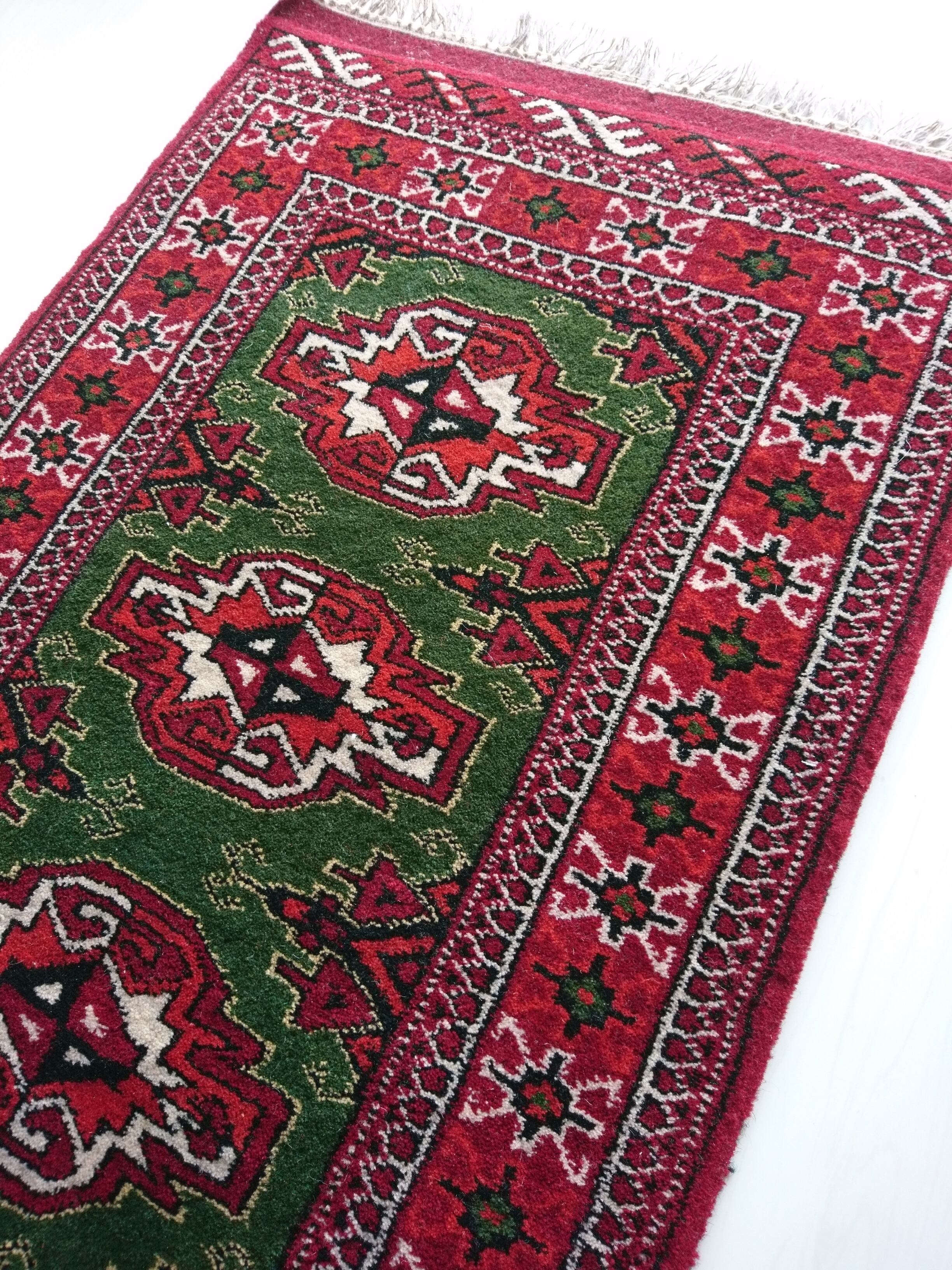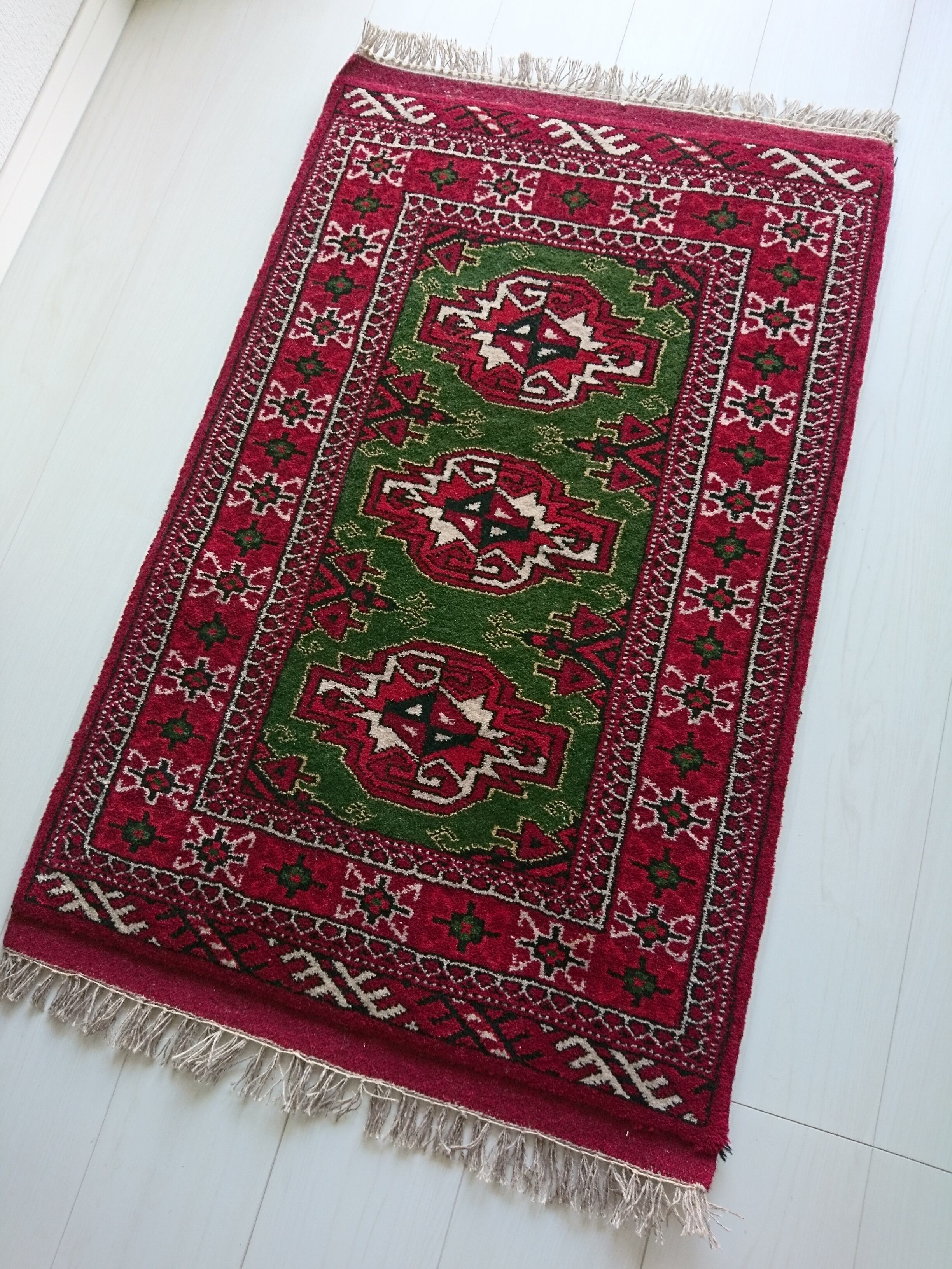 イラン製 トルクメンデザインの新品 手織り ペルシャ絨毯 / ラグです。