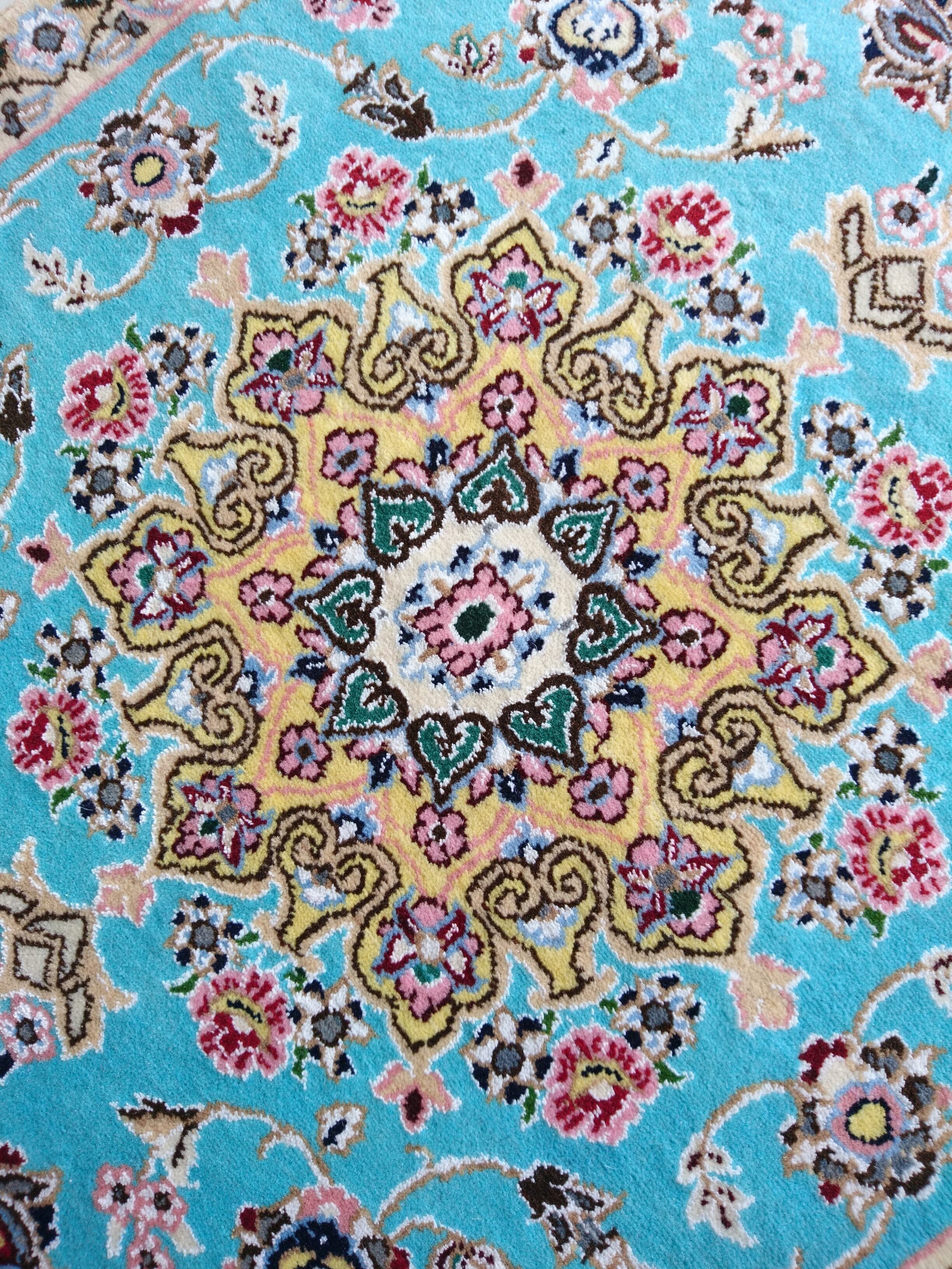 Persian Rug Nain 95x70cm Turquoise Medallion ペルシャ絨毯