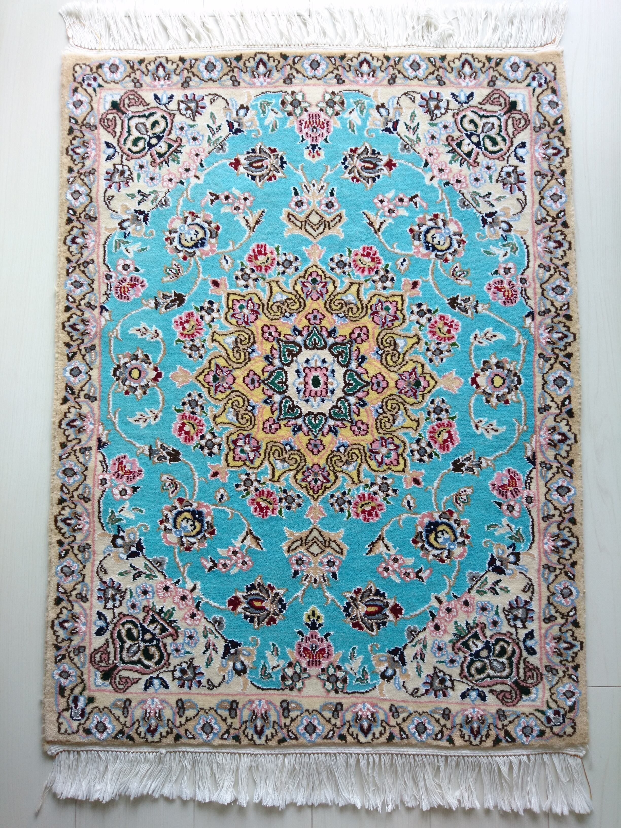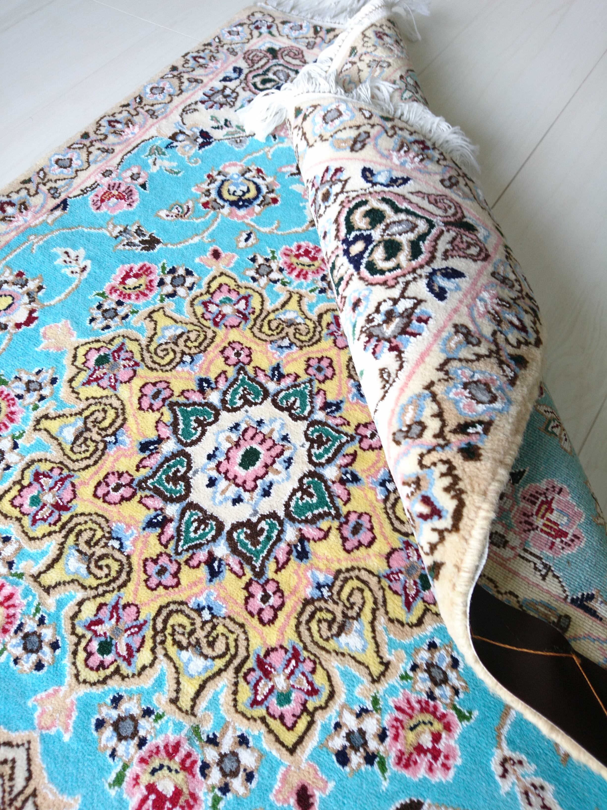 イラン製 ナイン産の大変丁寧に手織りされたペルシャ絨毯 / ラグです。