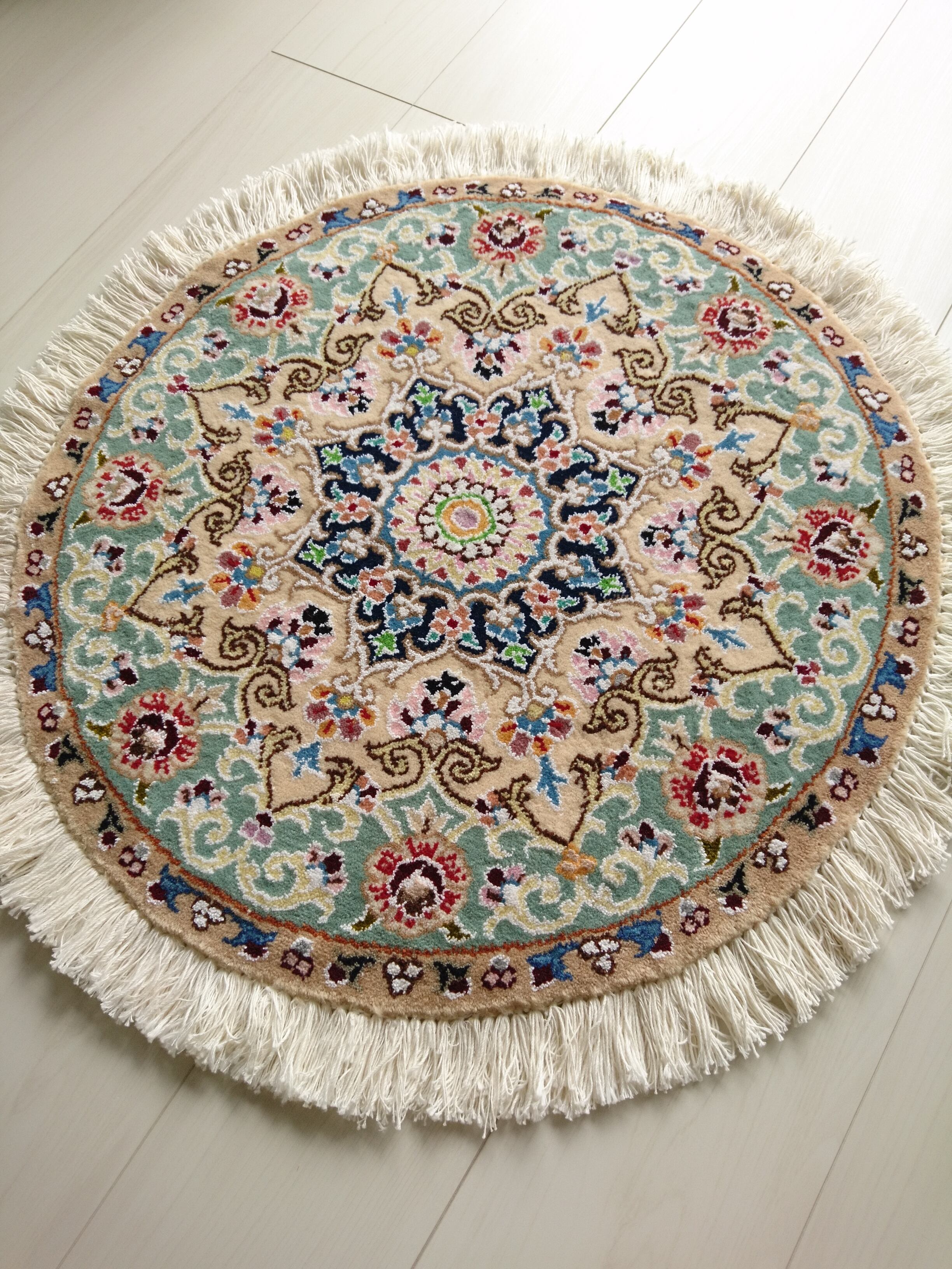 Round Persian Rug 60cm Mint Green Base Medallion ペルシャ絨毯