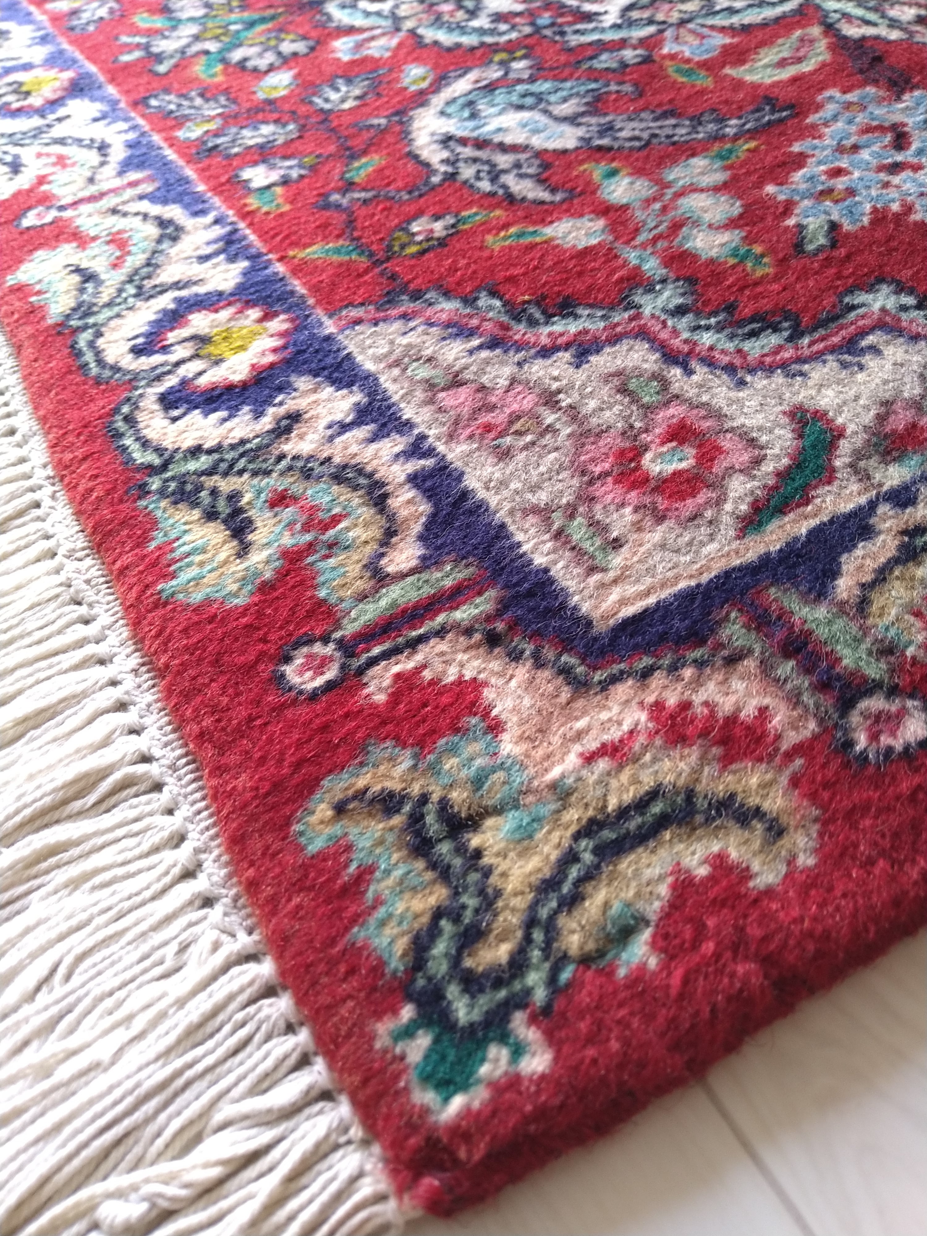 -ヴィンテージラグはそれぞれ使用感・ダメージ等がみられます。商品説明に出来るだけ詳細を記しますが、古いものの持ち味としてご理解いただける場合のみのご購入をお願いいたします。