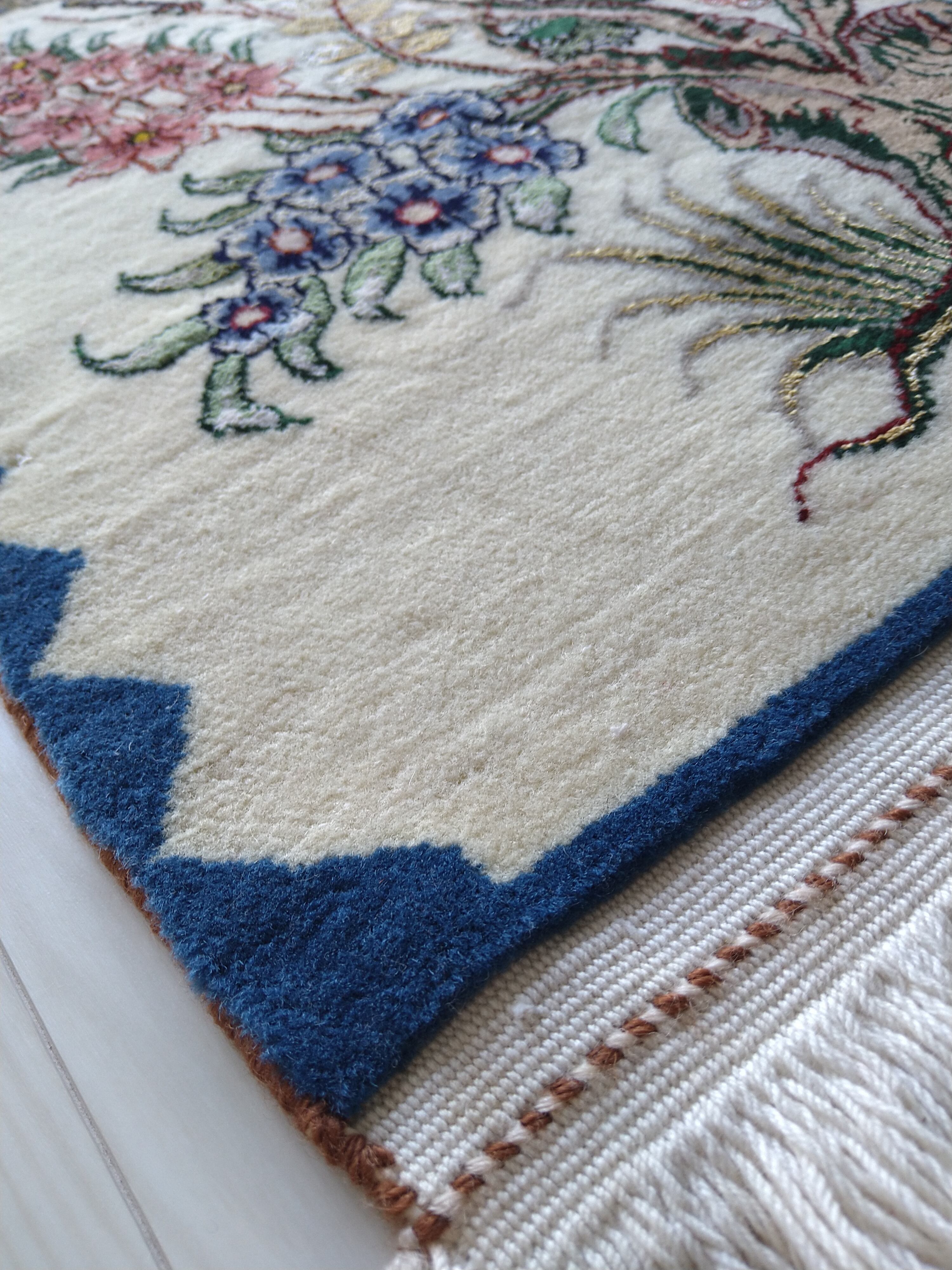 Persian Rug Art 74x55cm Three Birds Isfahan ペルシャ絨毯