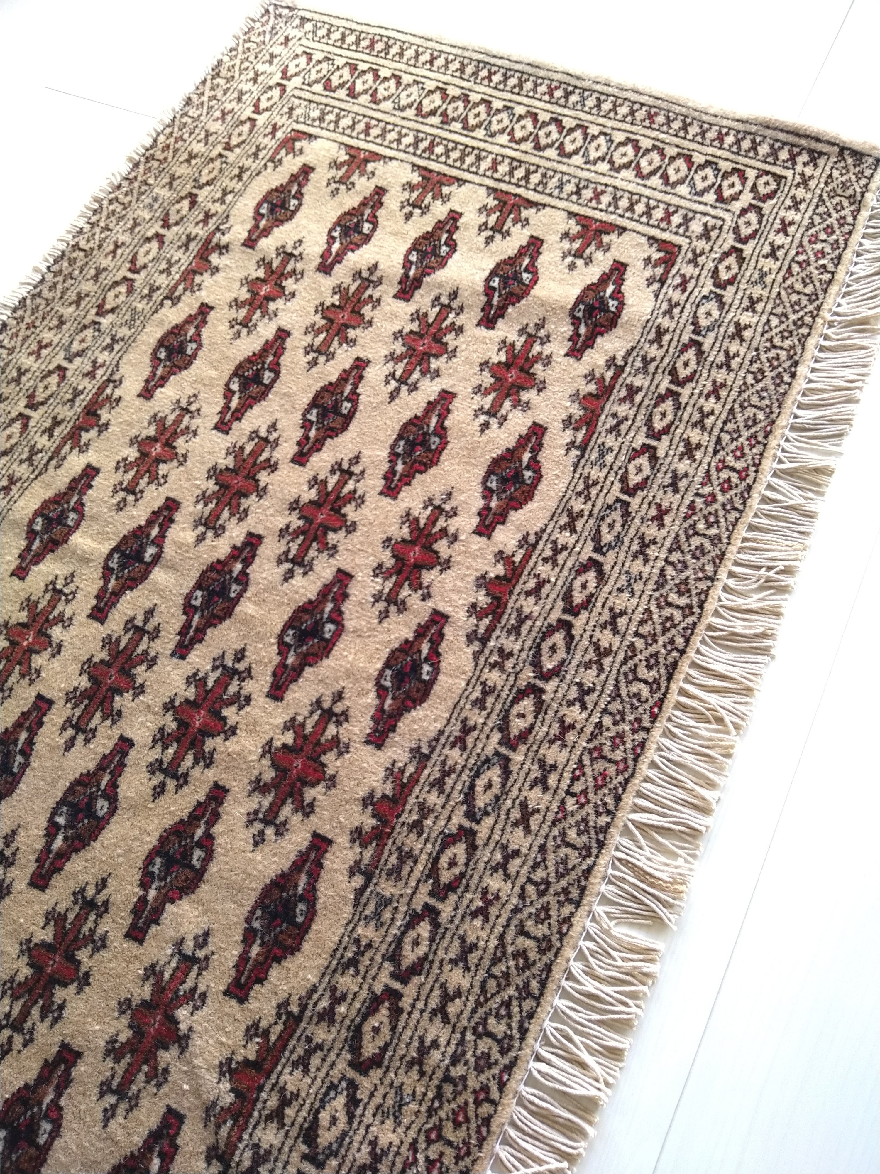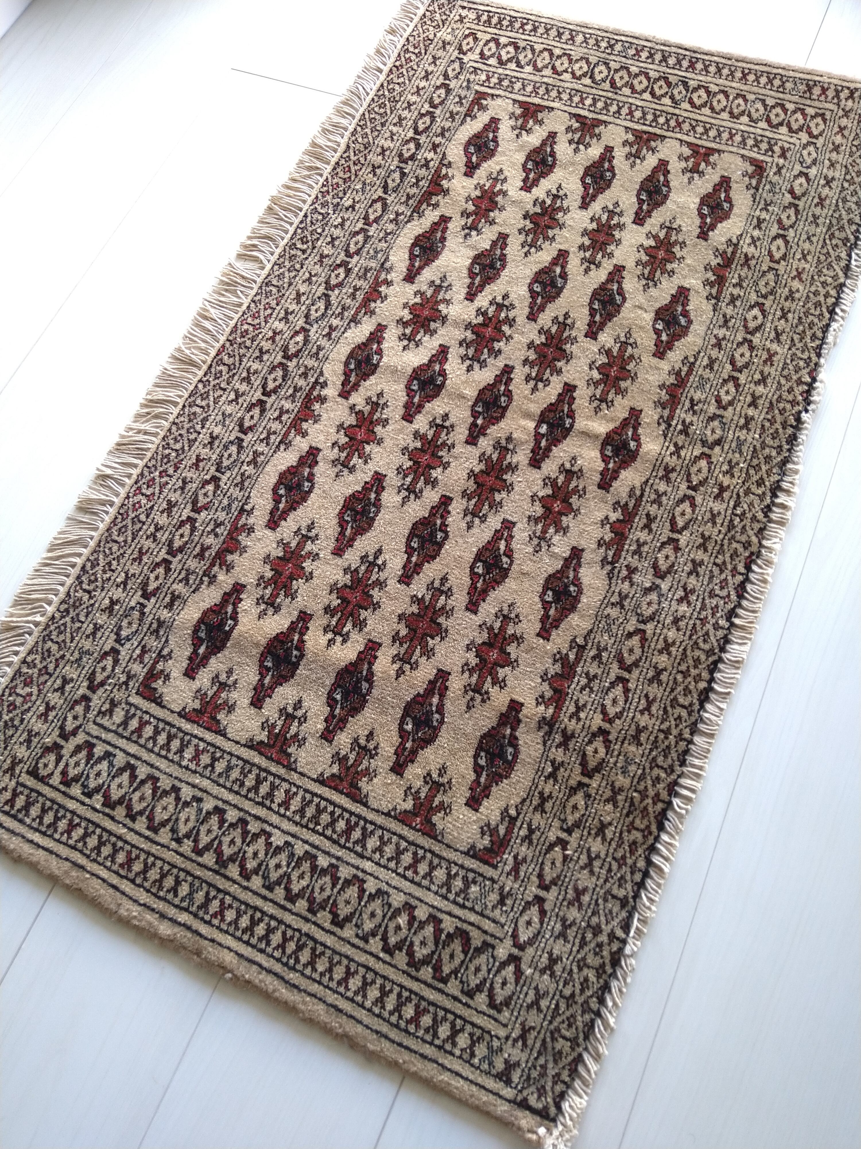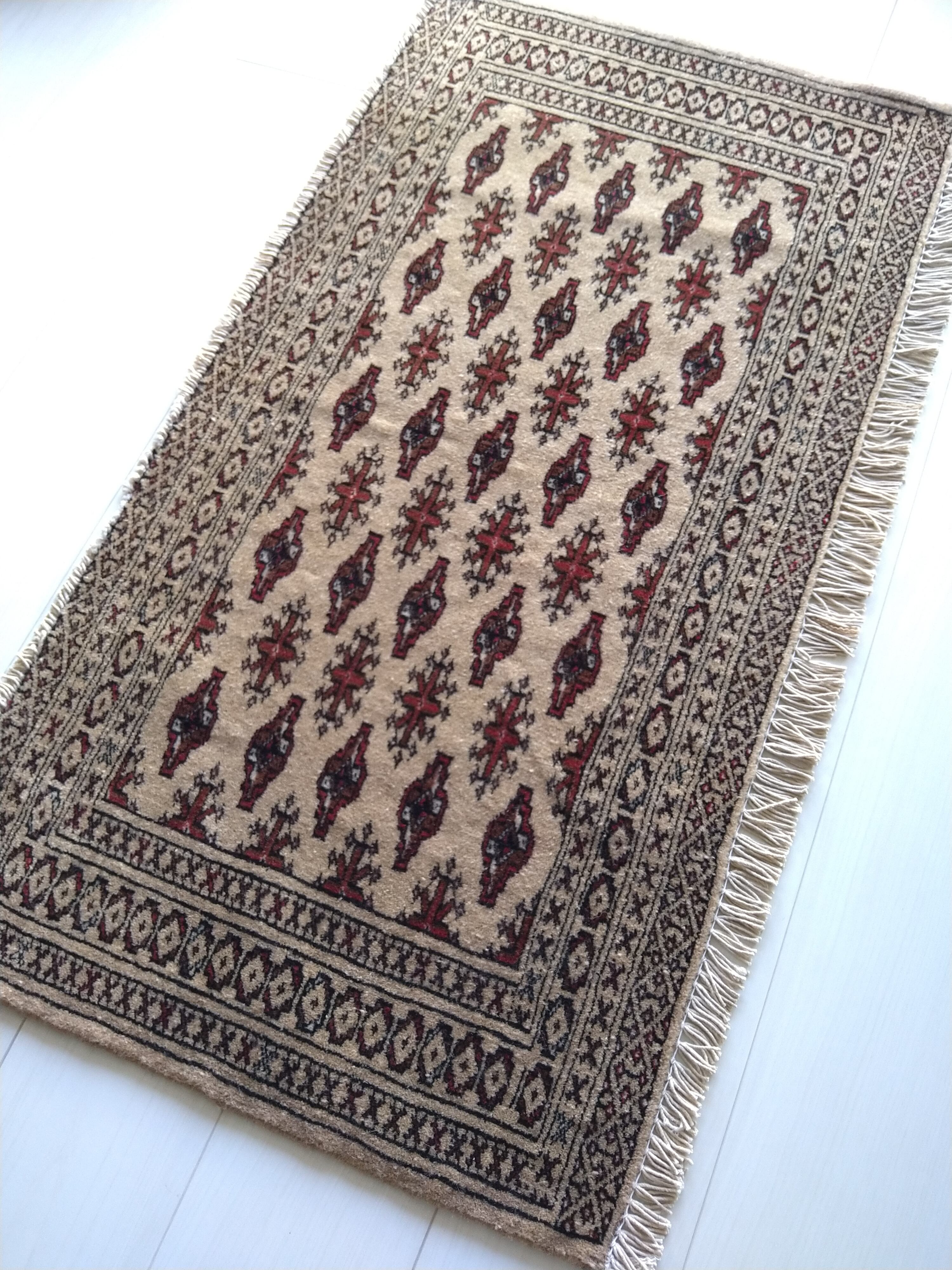 Vintage Persian Rug 104x54cm Turkmen Mocha Beige ペルシャ絨毯