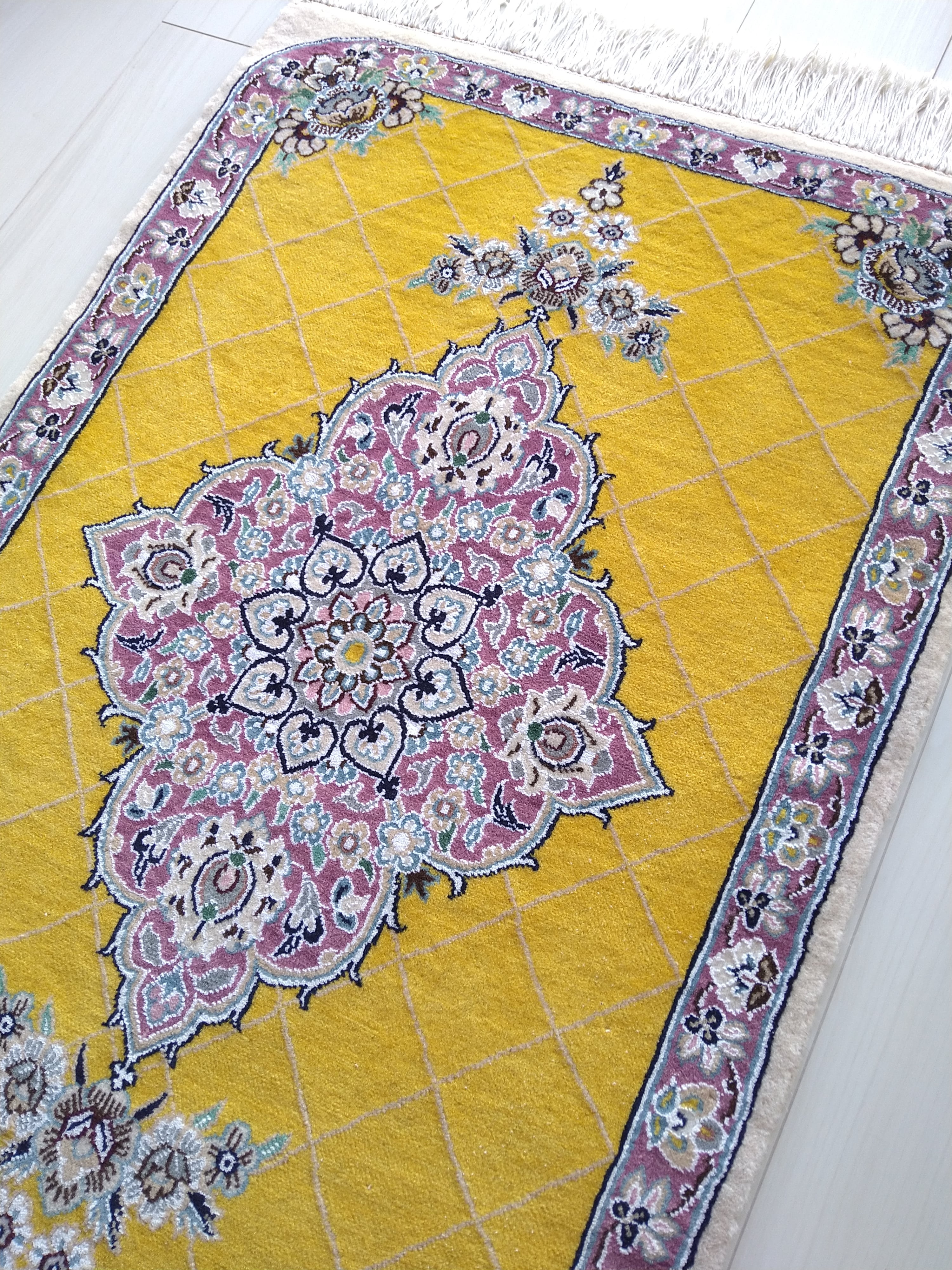 Persian Rug Nain 100x65cm Yellow × Lavender Pink ペルシャ絨毯