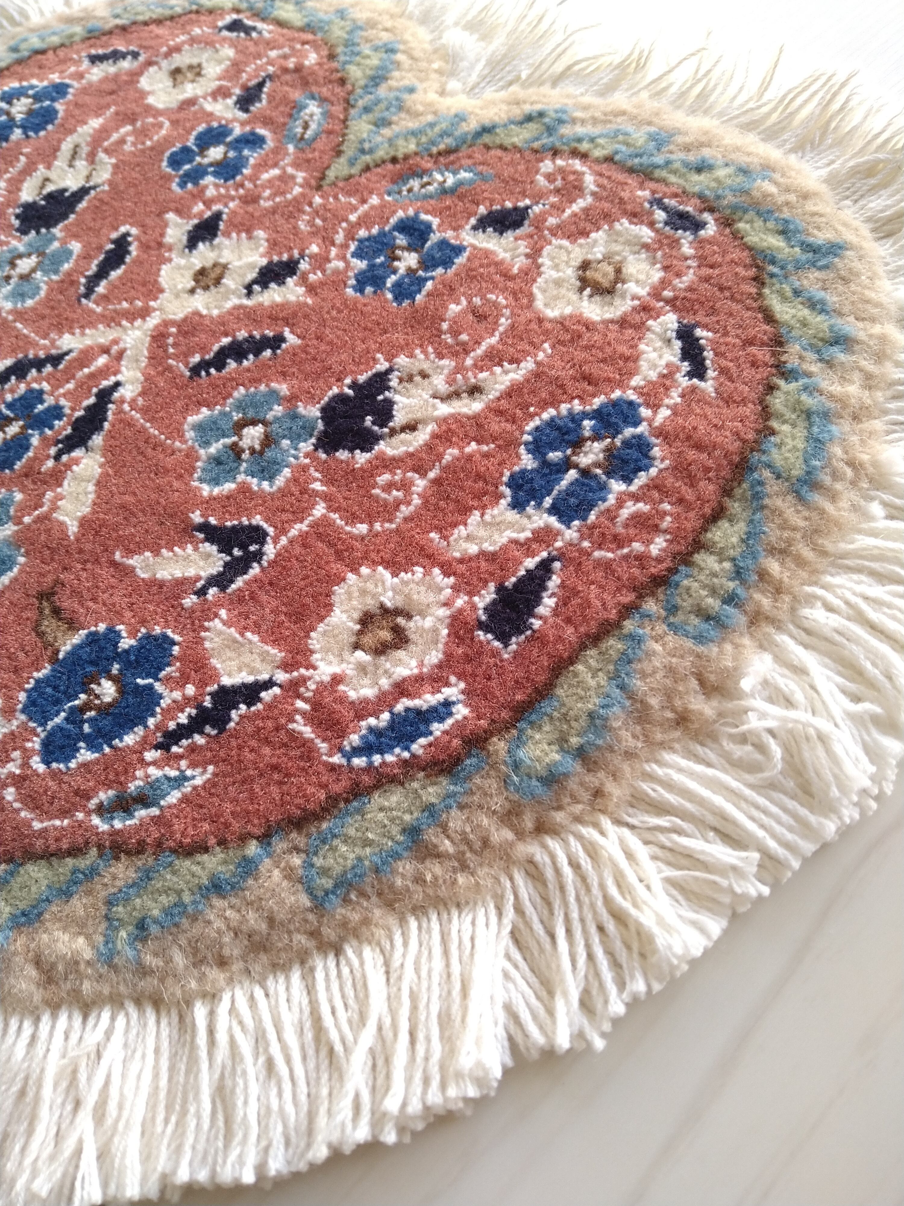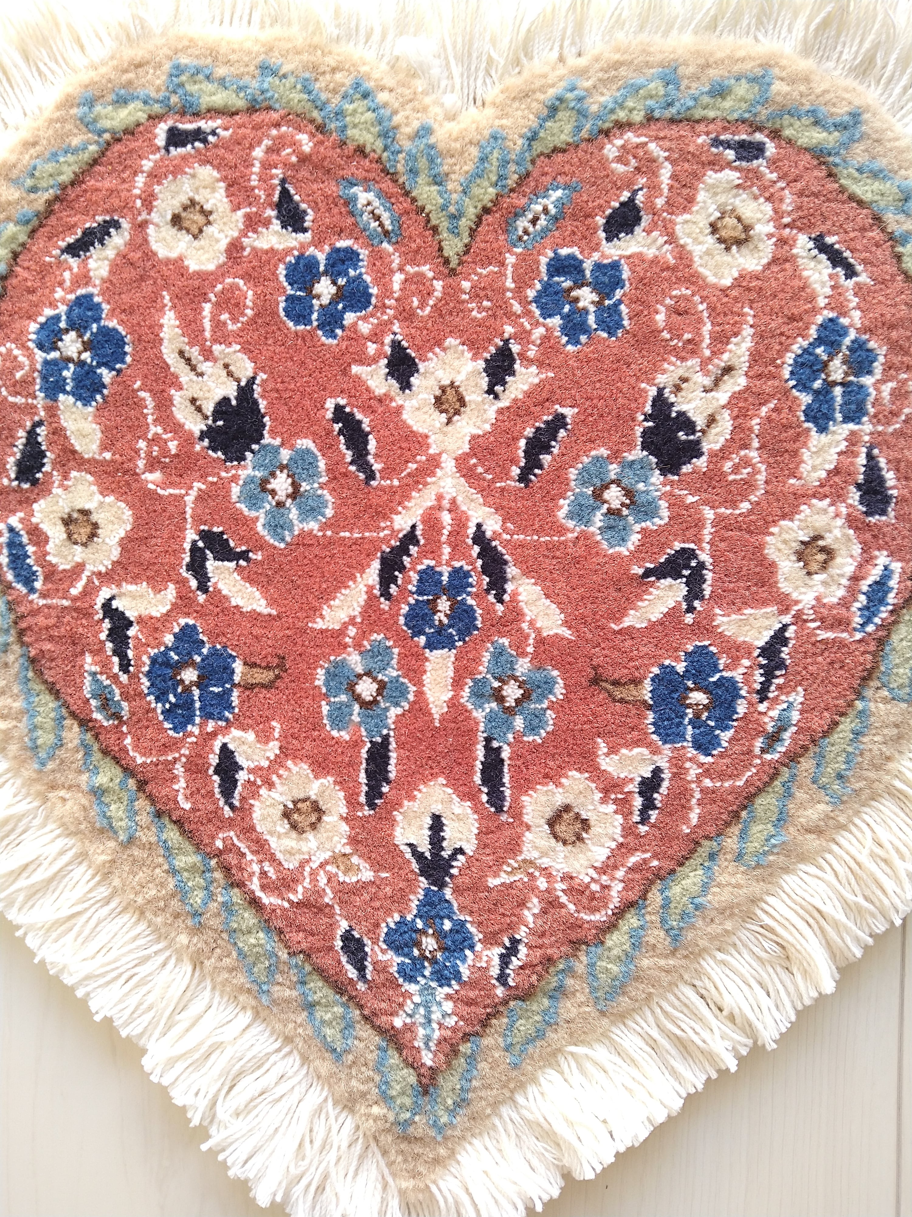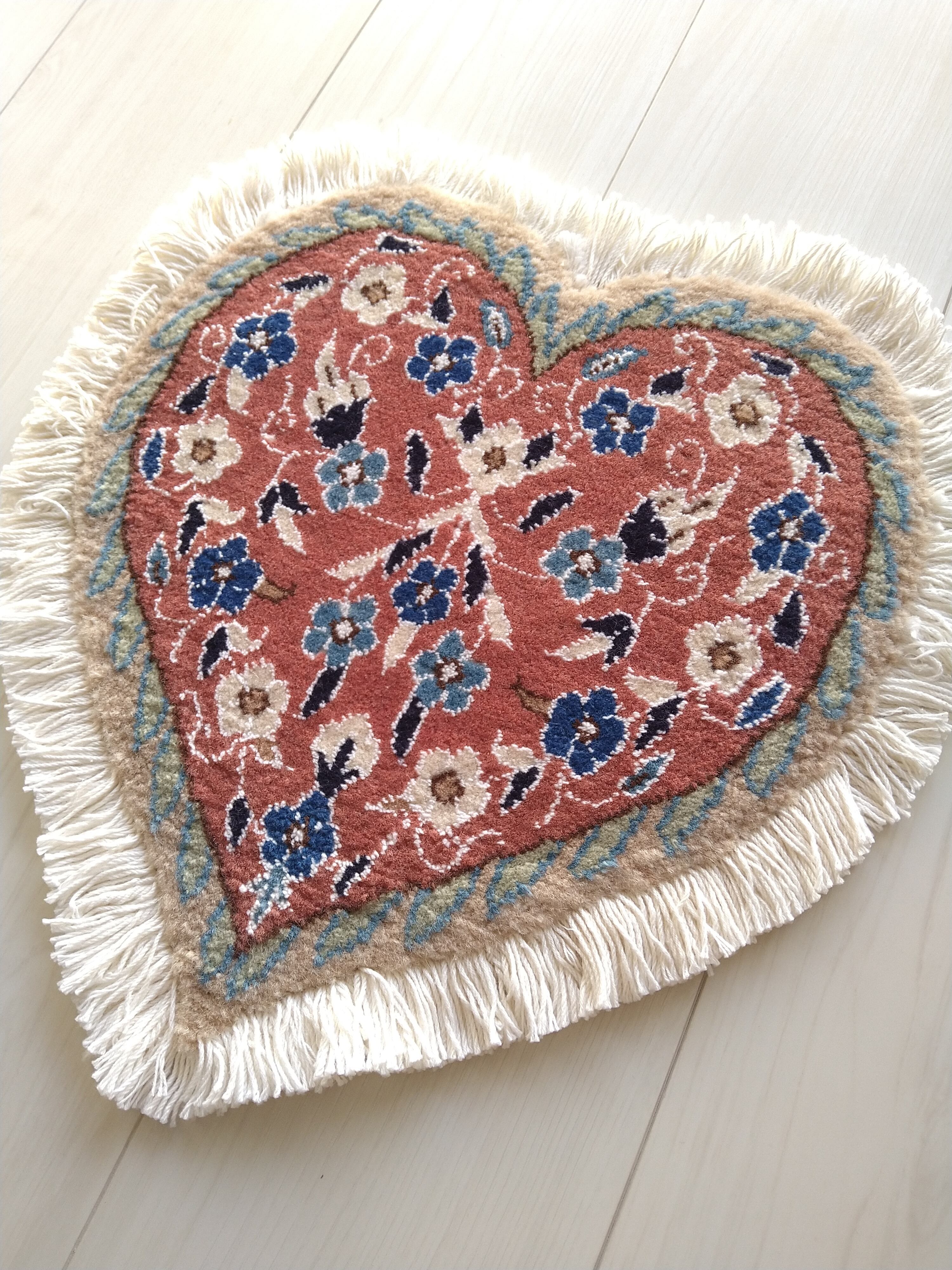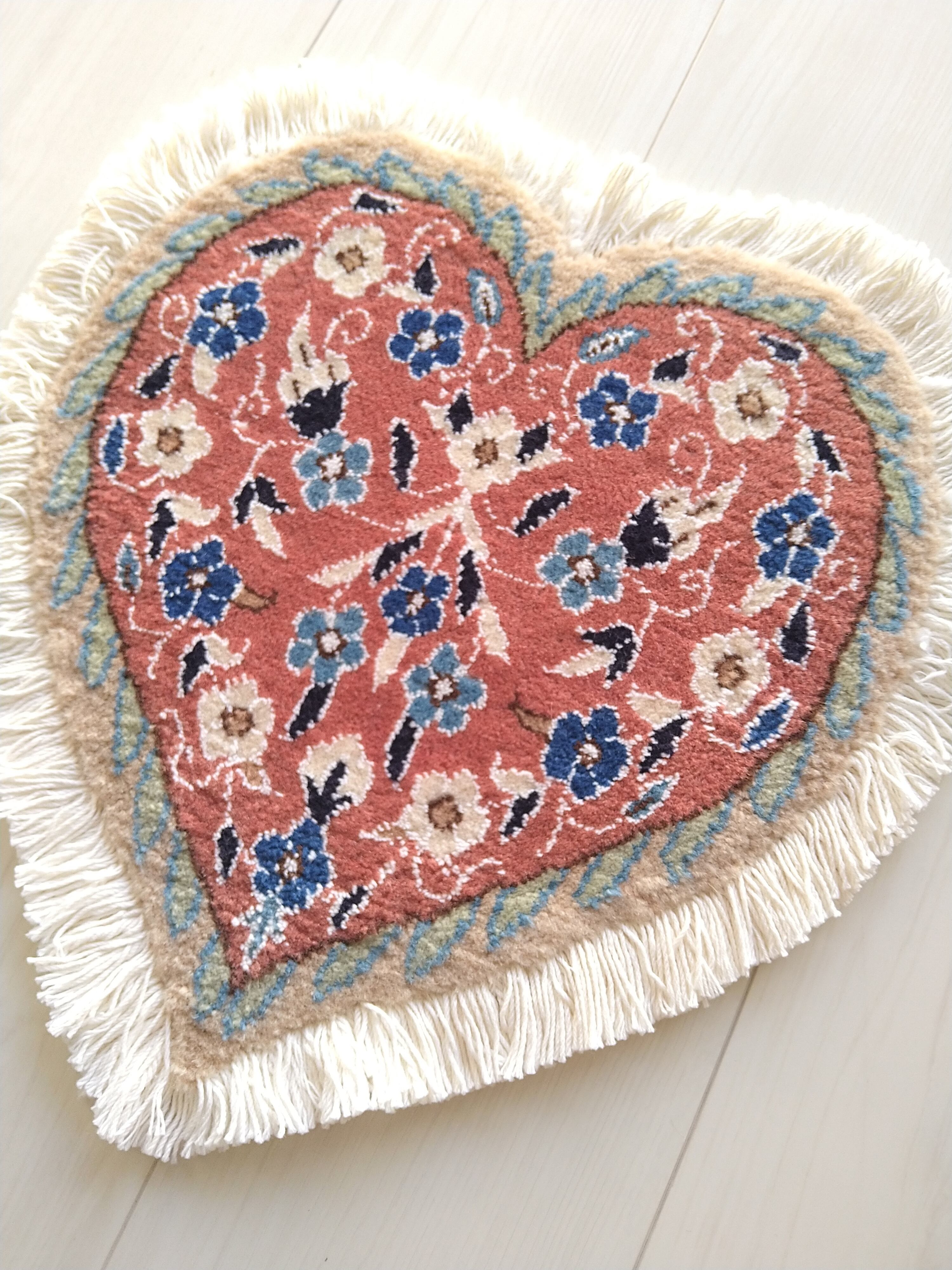 ペルシャ絨毯の産地として世界的に有名なナインで大変丁寧に手織りされた、イラン製 ハート型 ミニペルシャ絨毯 / ミニラグです。