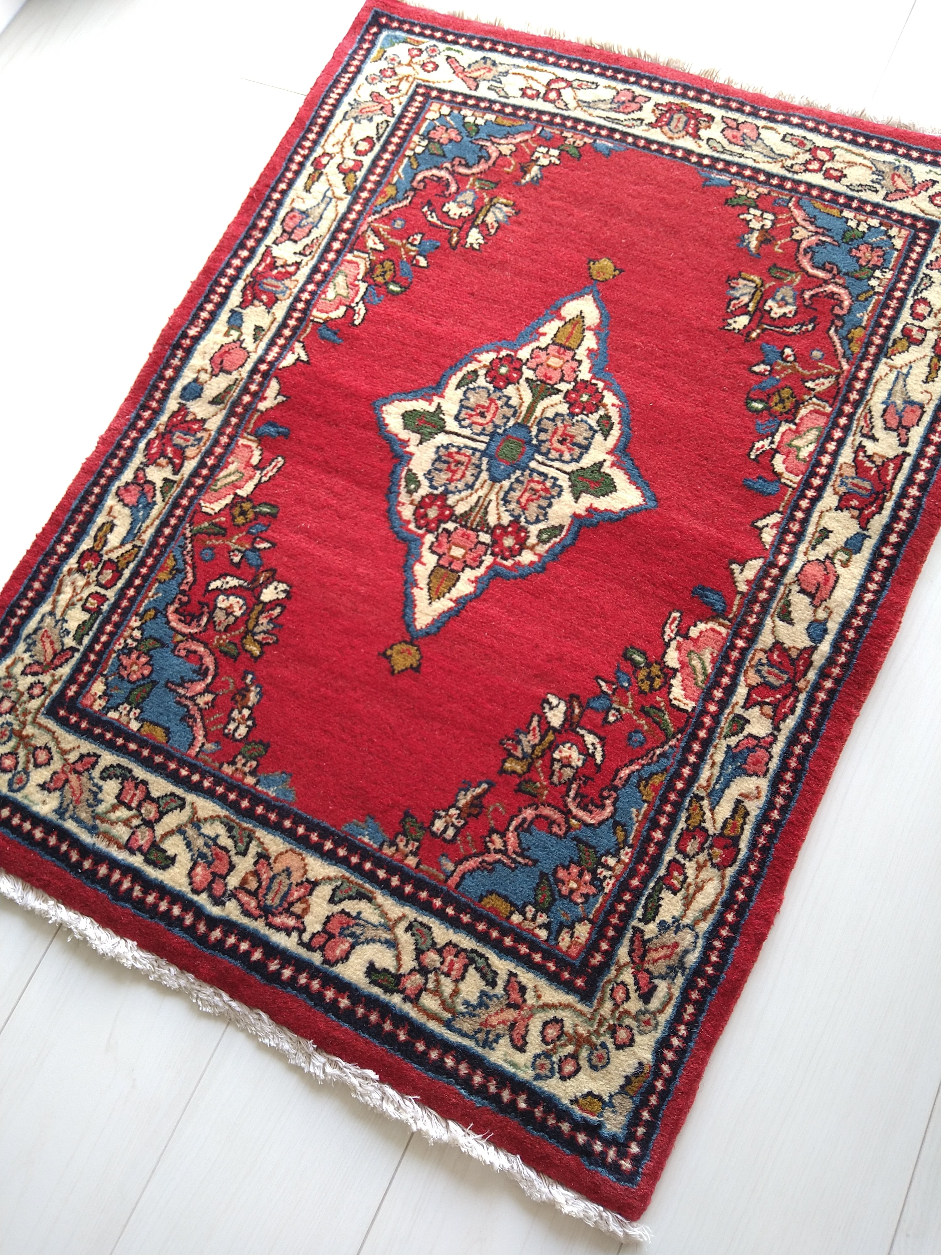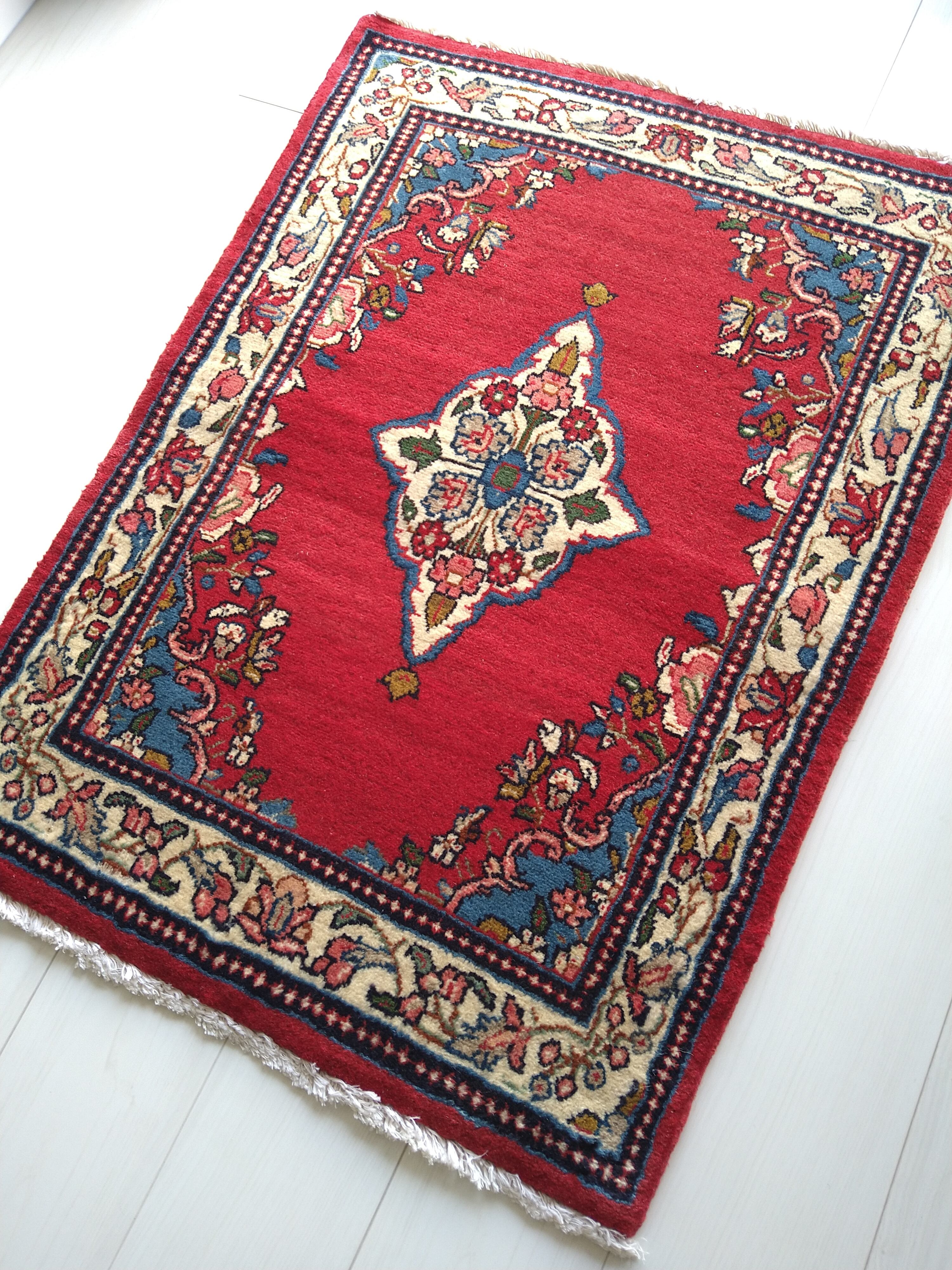 -ヴィンテージラグはそれぞれ使用感・ダメージ等がみられます。商品説明に出来るだけ詳細を記しますが、古いものの持ち味としてご理解いただける場合のみのご購入をお願いいたします。