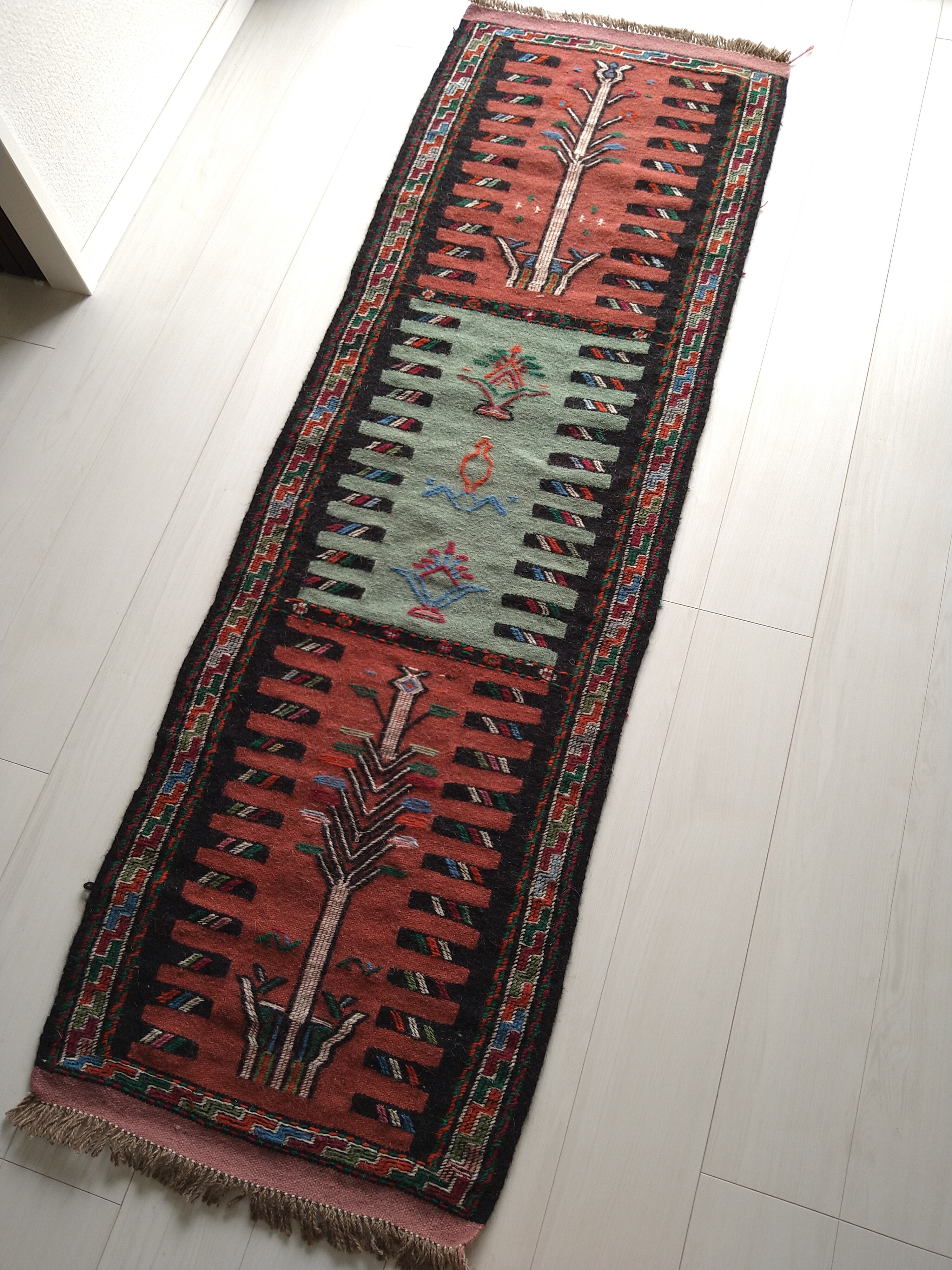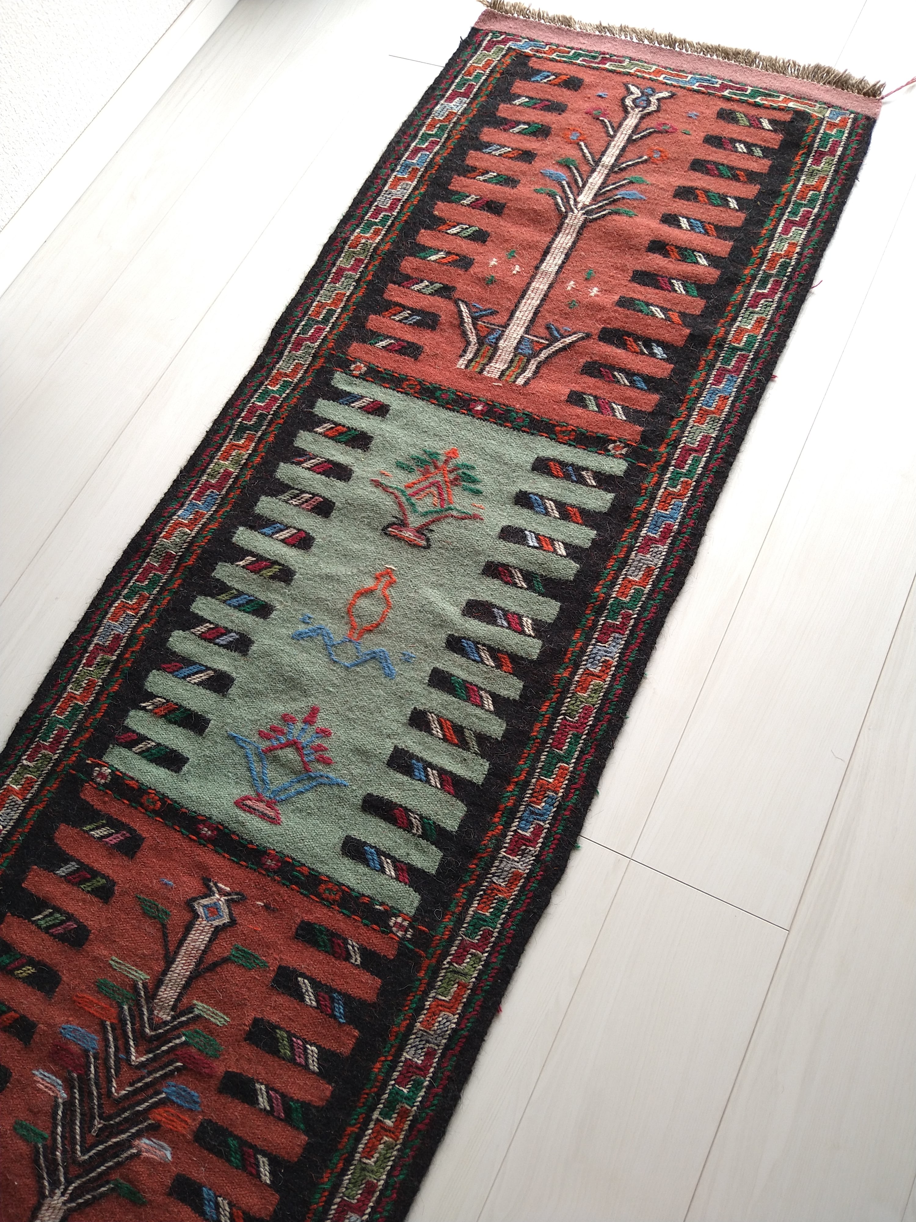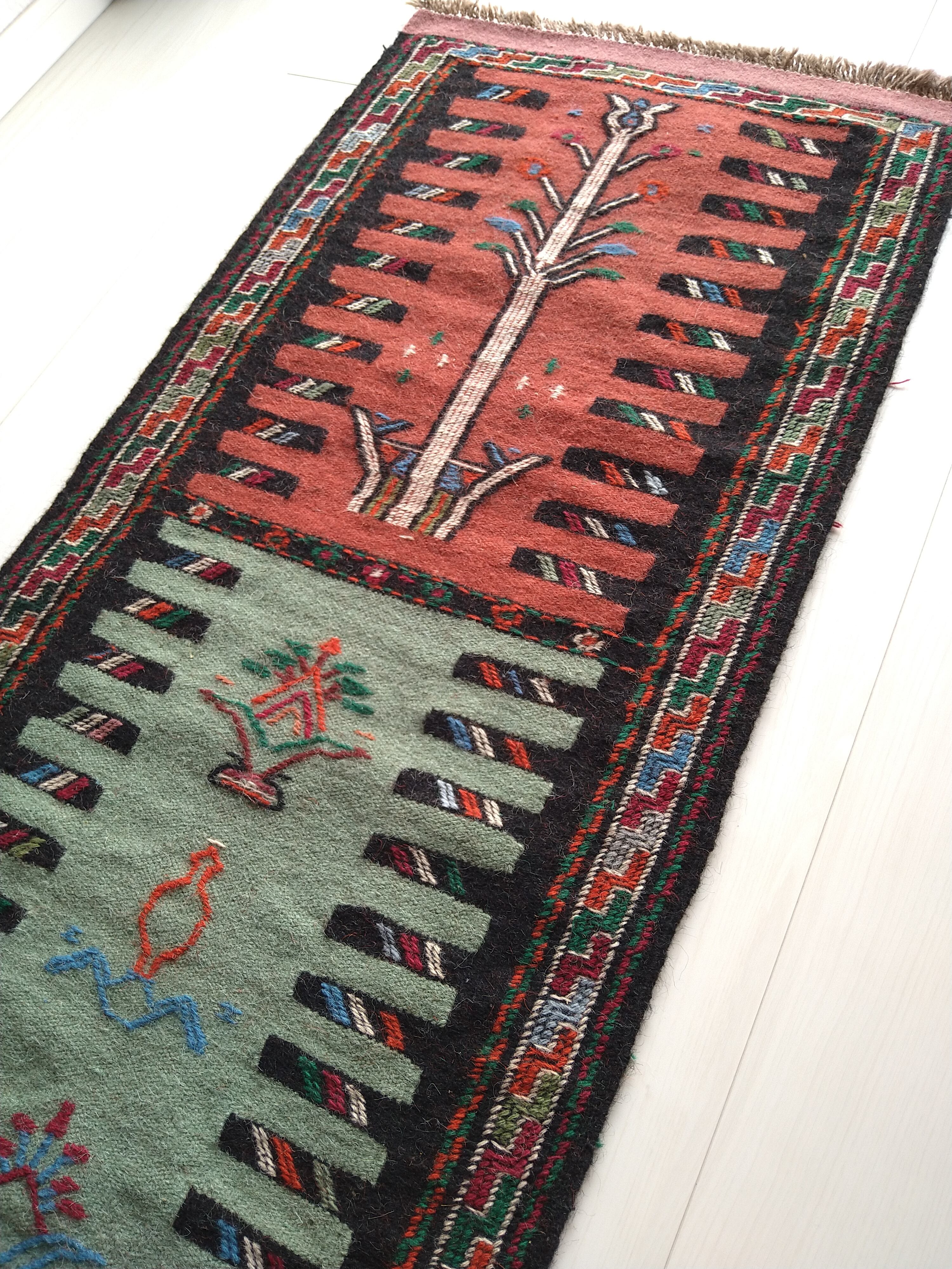 Persian Kilim Runner 187x58cm Red Earth x Mint ペルシャ絨毯