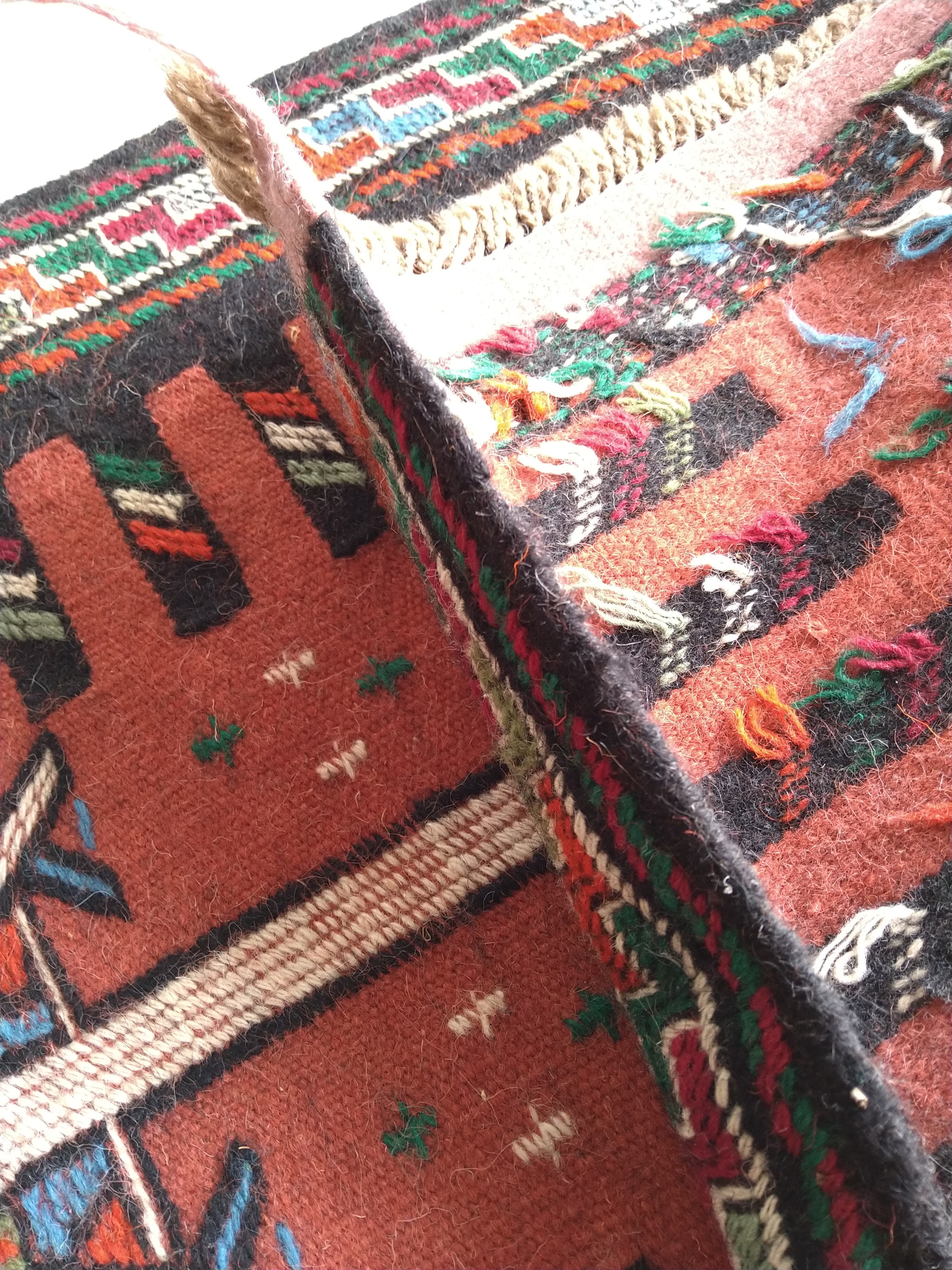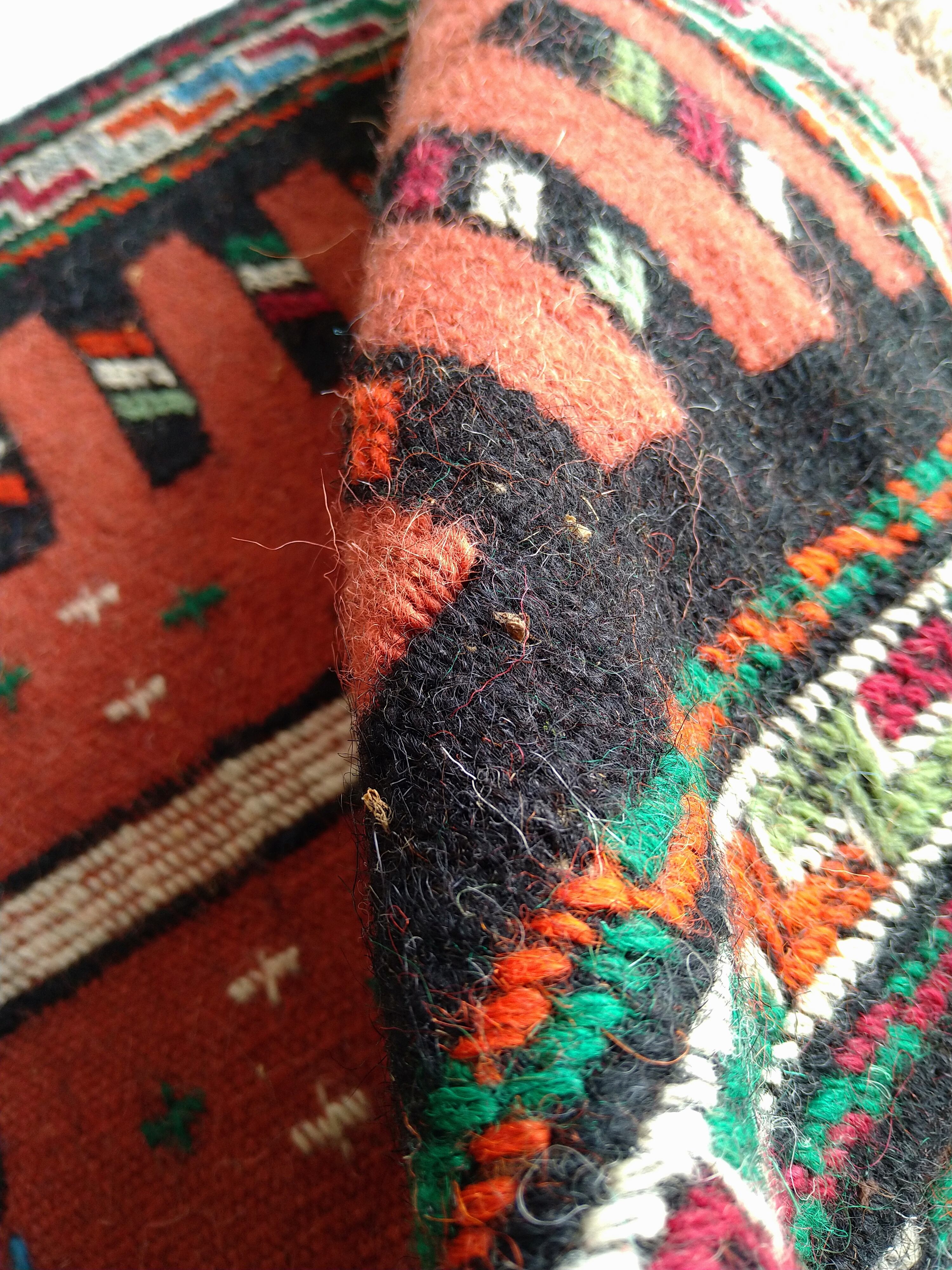 -ハンドメイドのラグは工場生産の既製品とは違いますので多少のゆがみ、色むらがあります。手織りの暖かみを楽しんでいただければ幸いです。