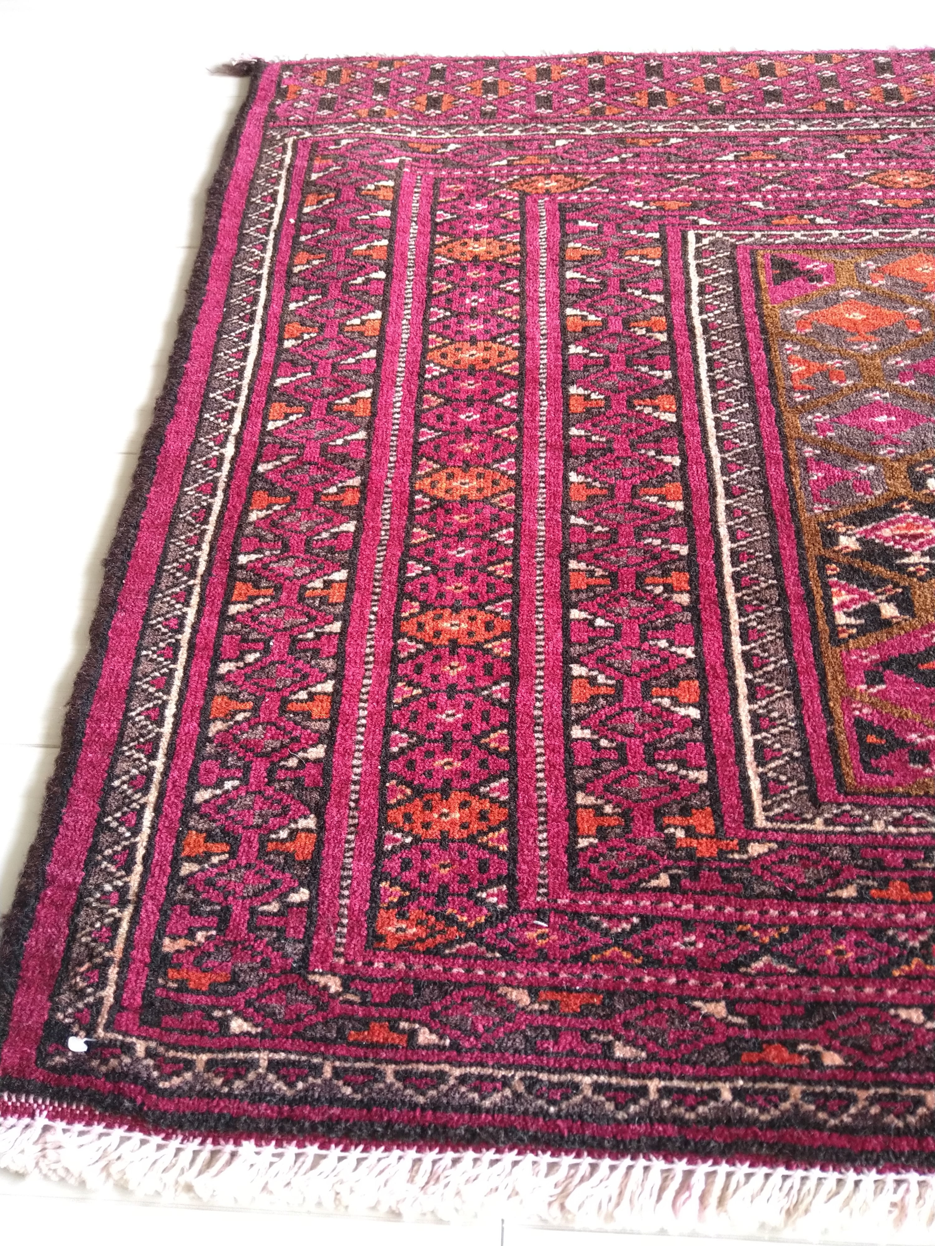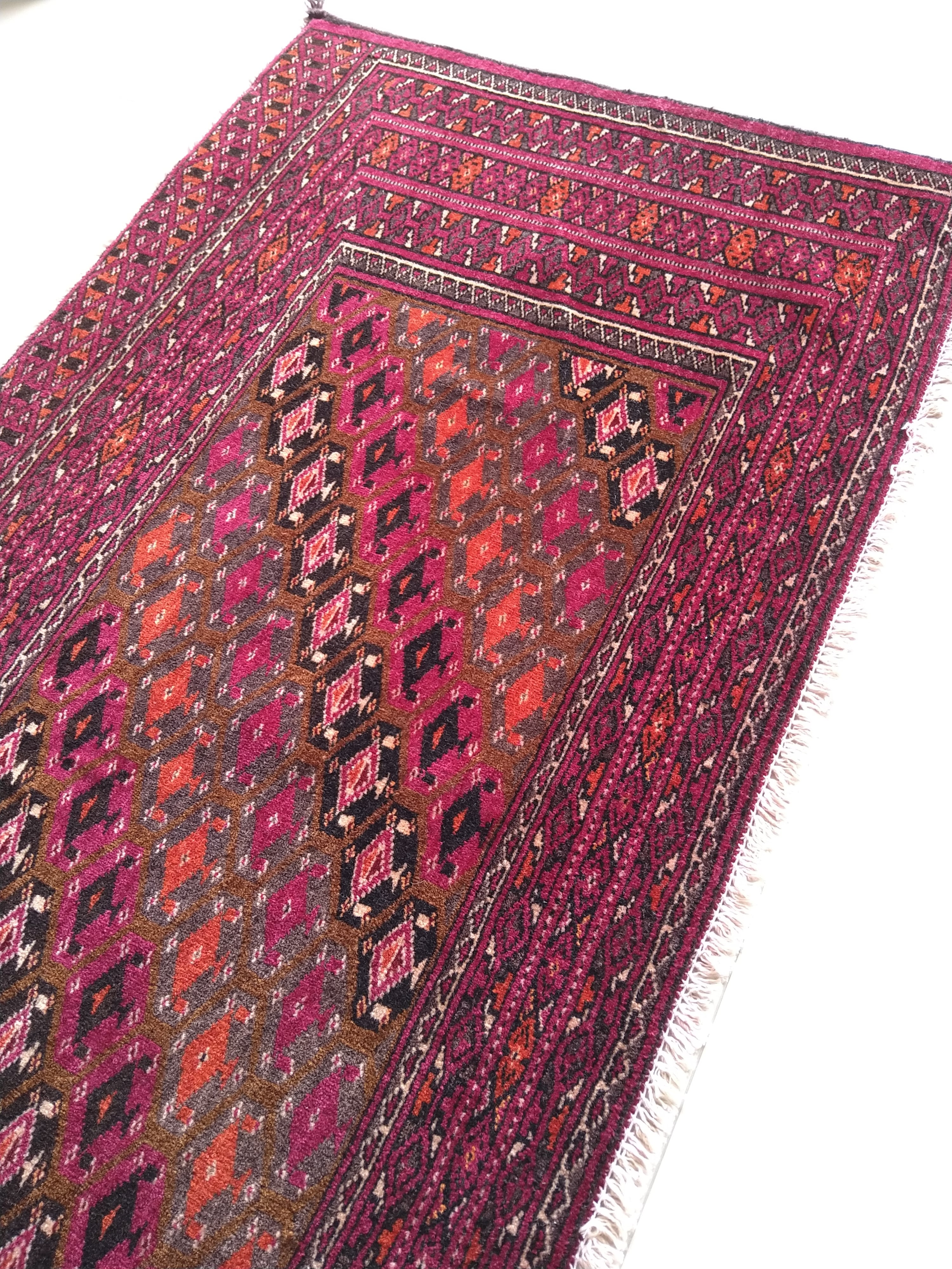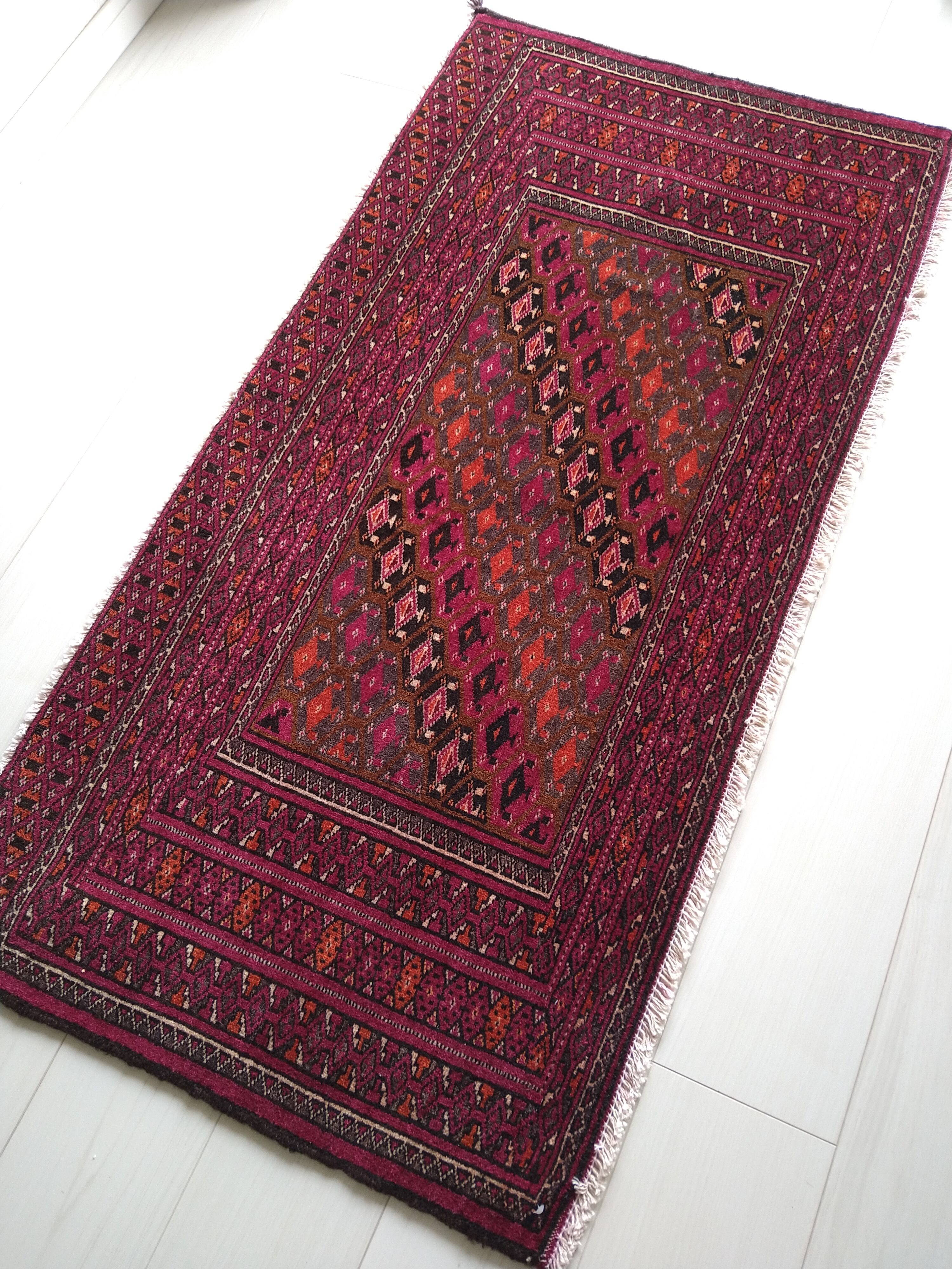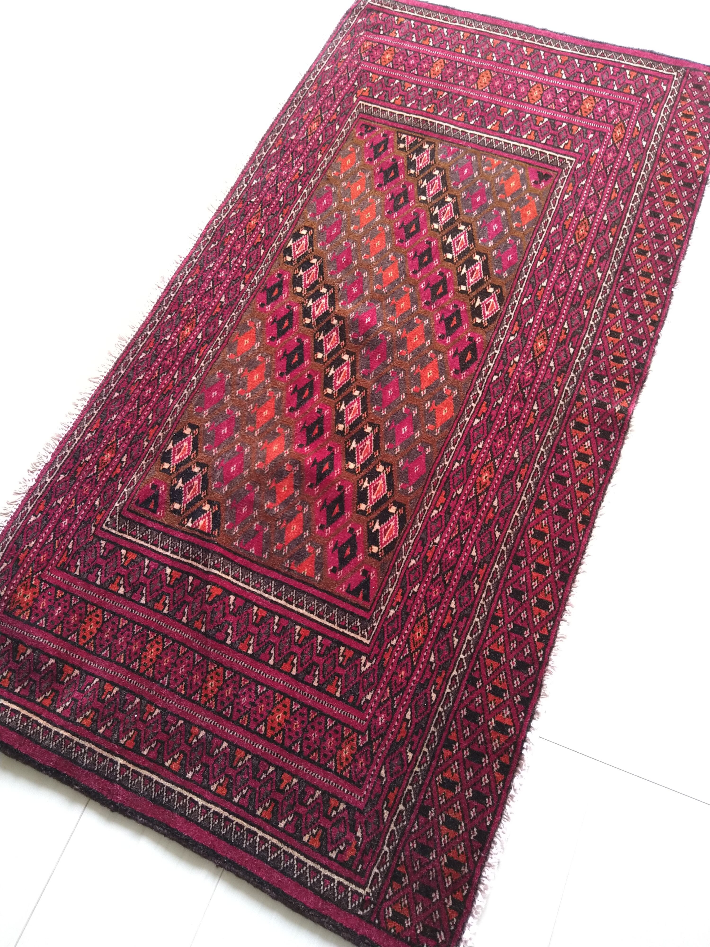 Vintage Persian Rug 125x62cm Baloch Magenta Base ペルシャ絨毯