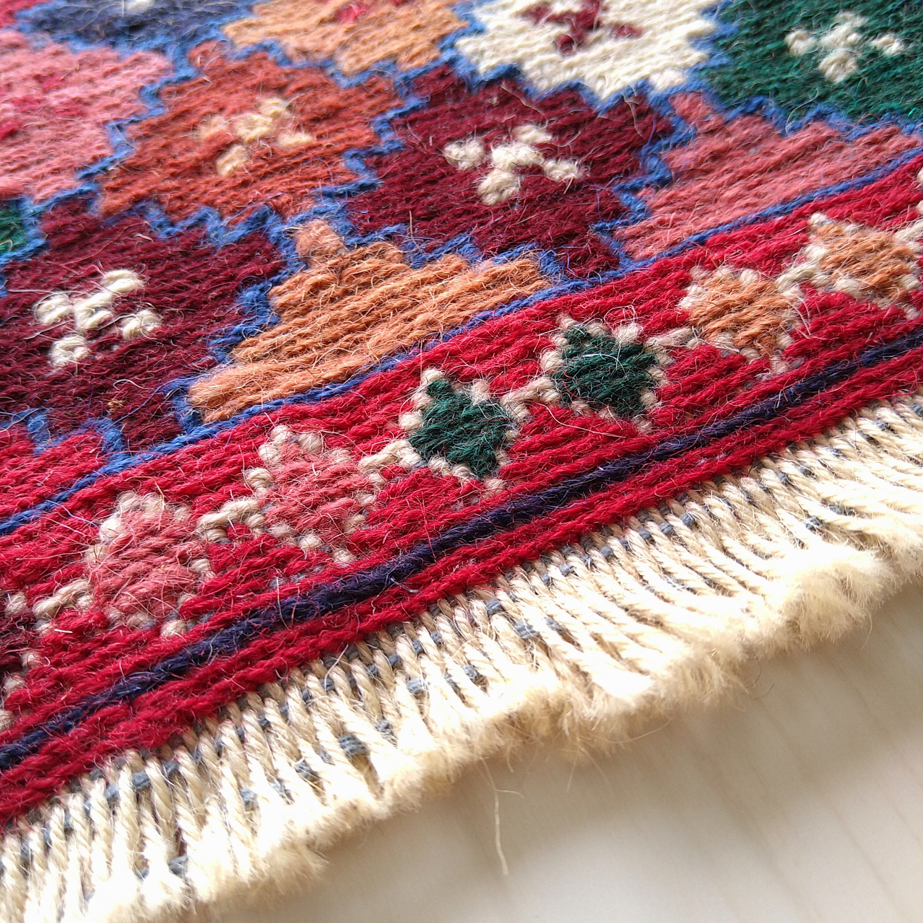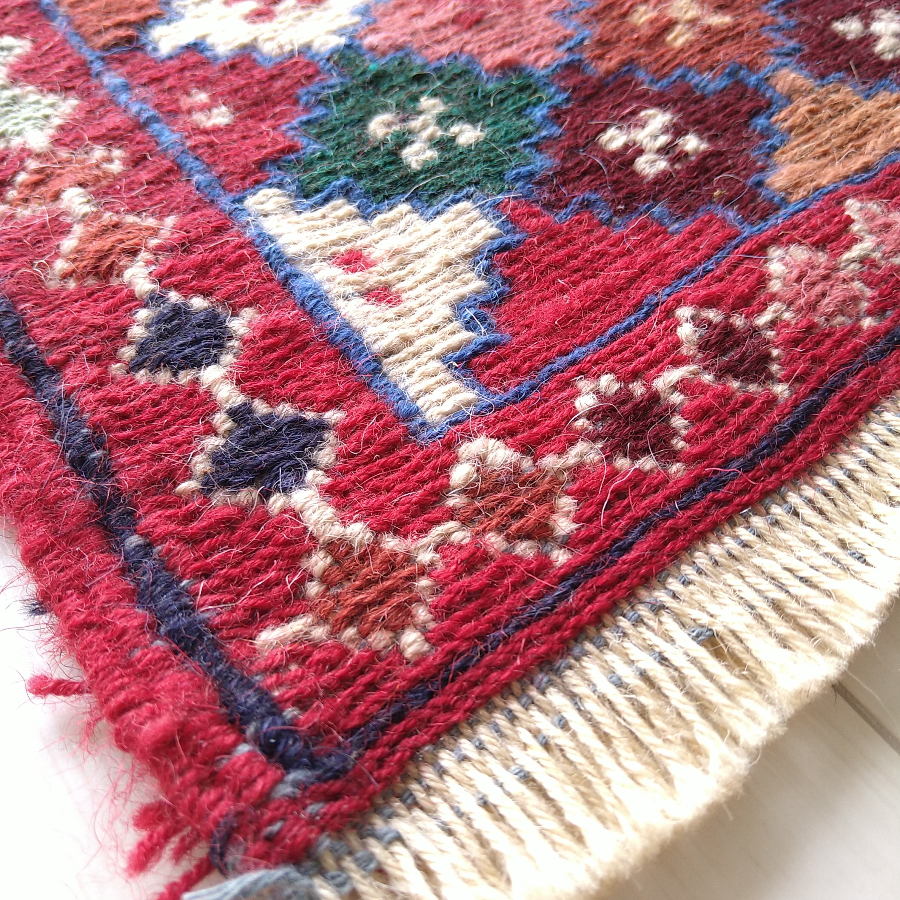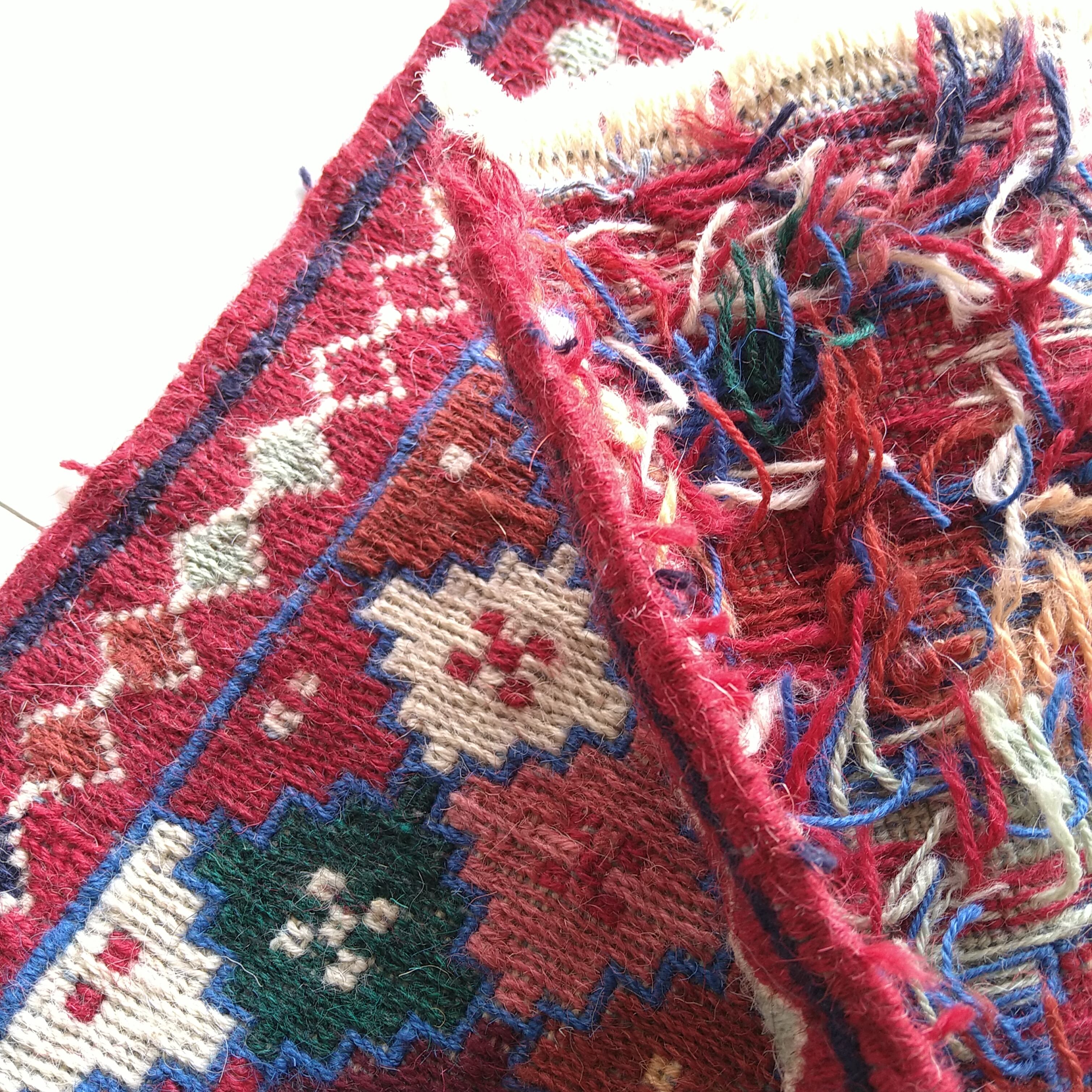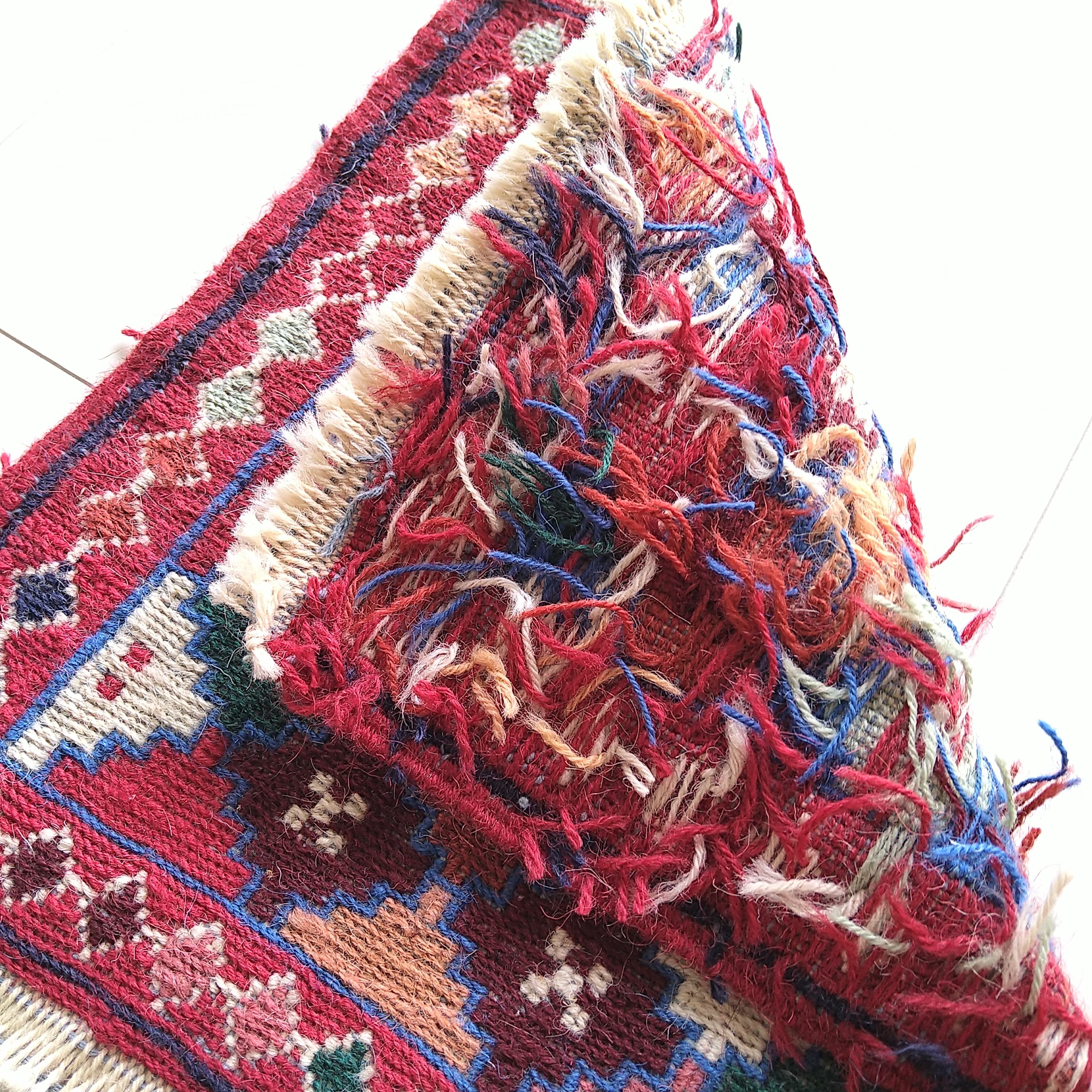 スマック織りで丁寧に手織りされた一枚。