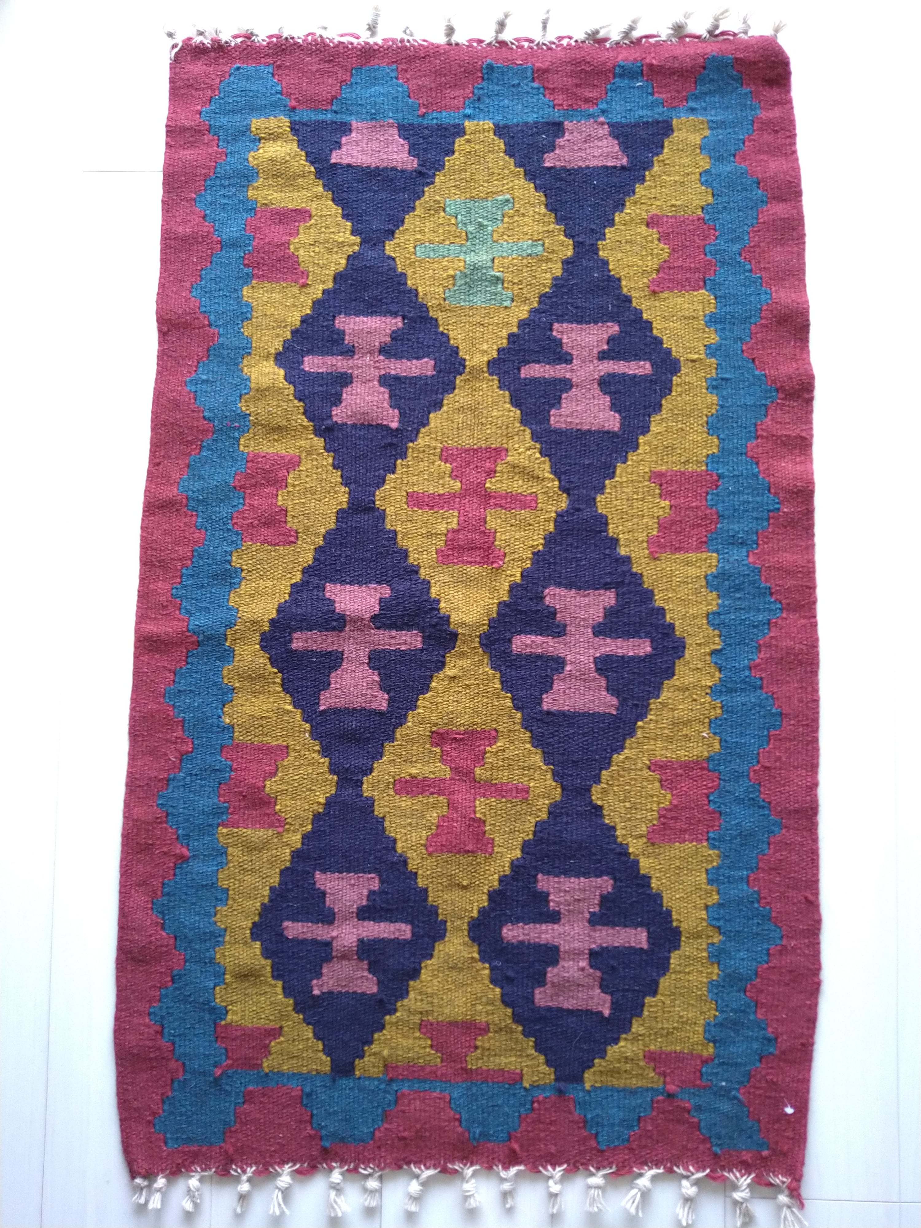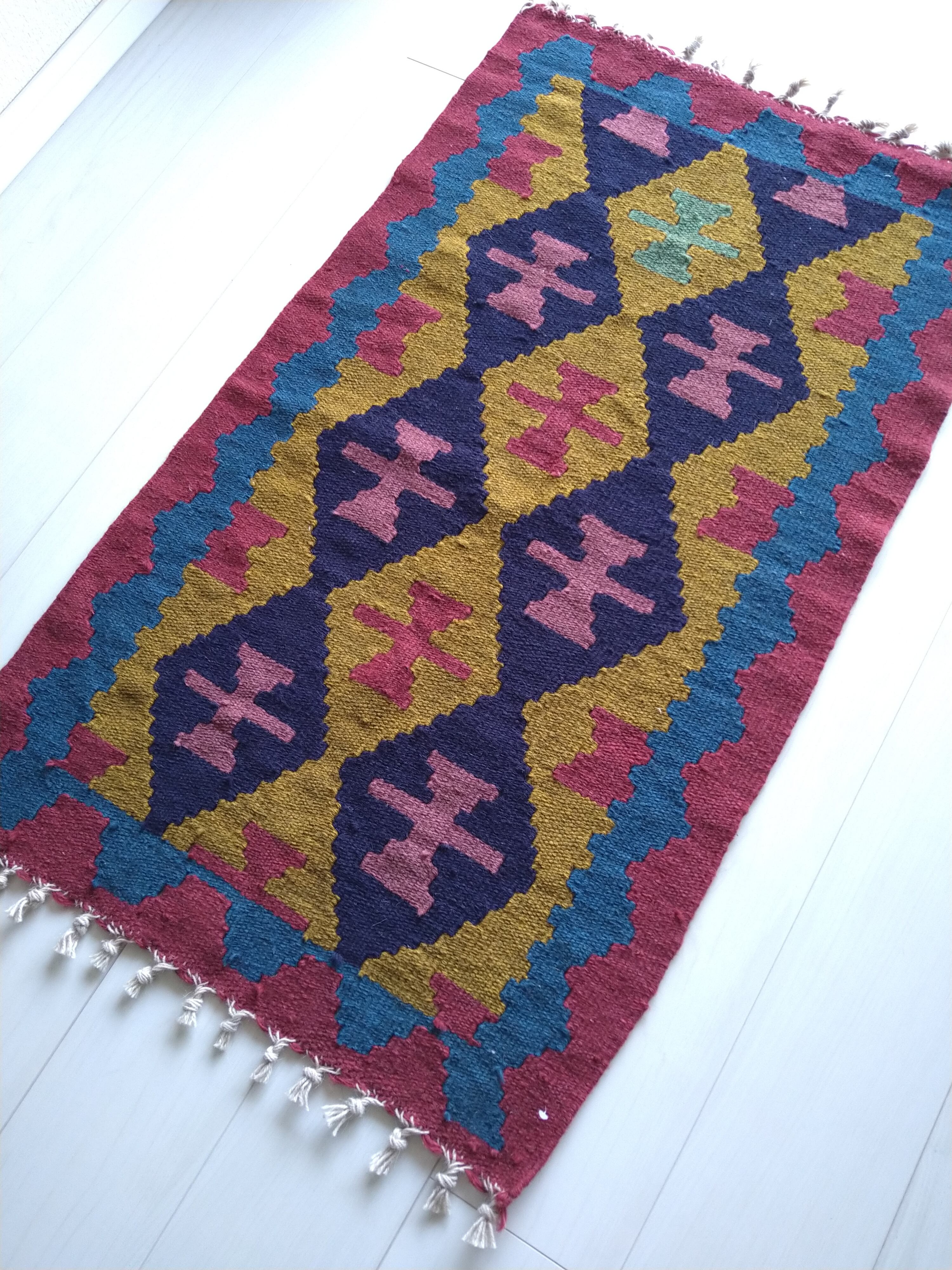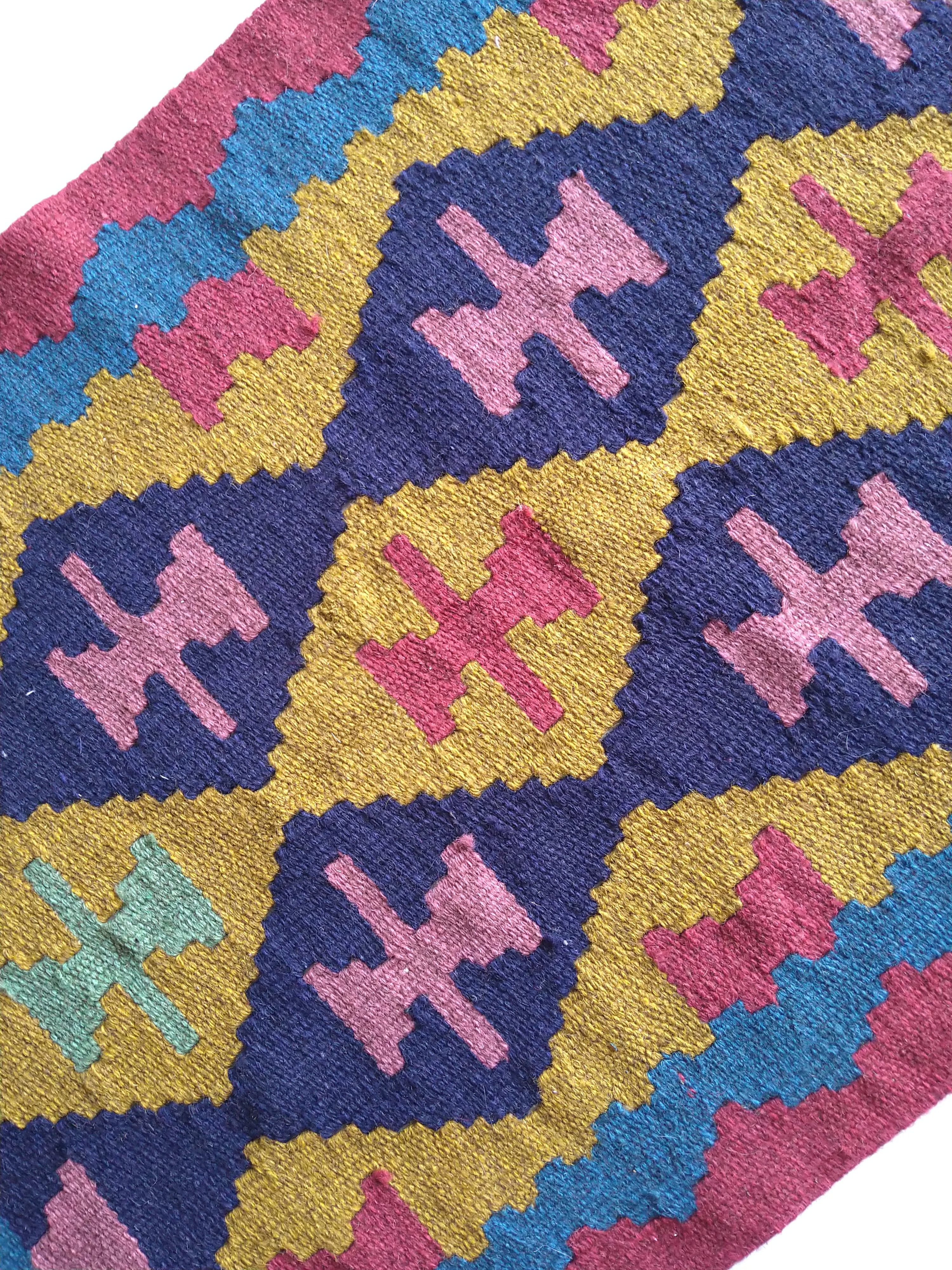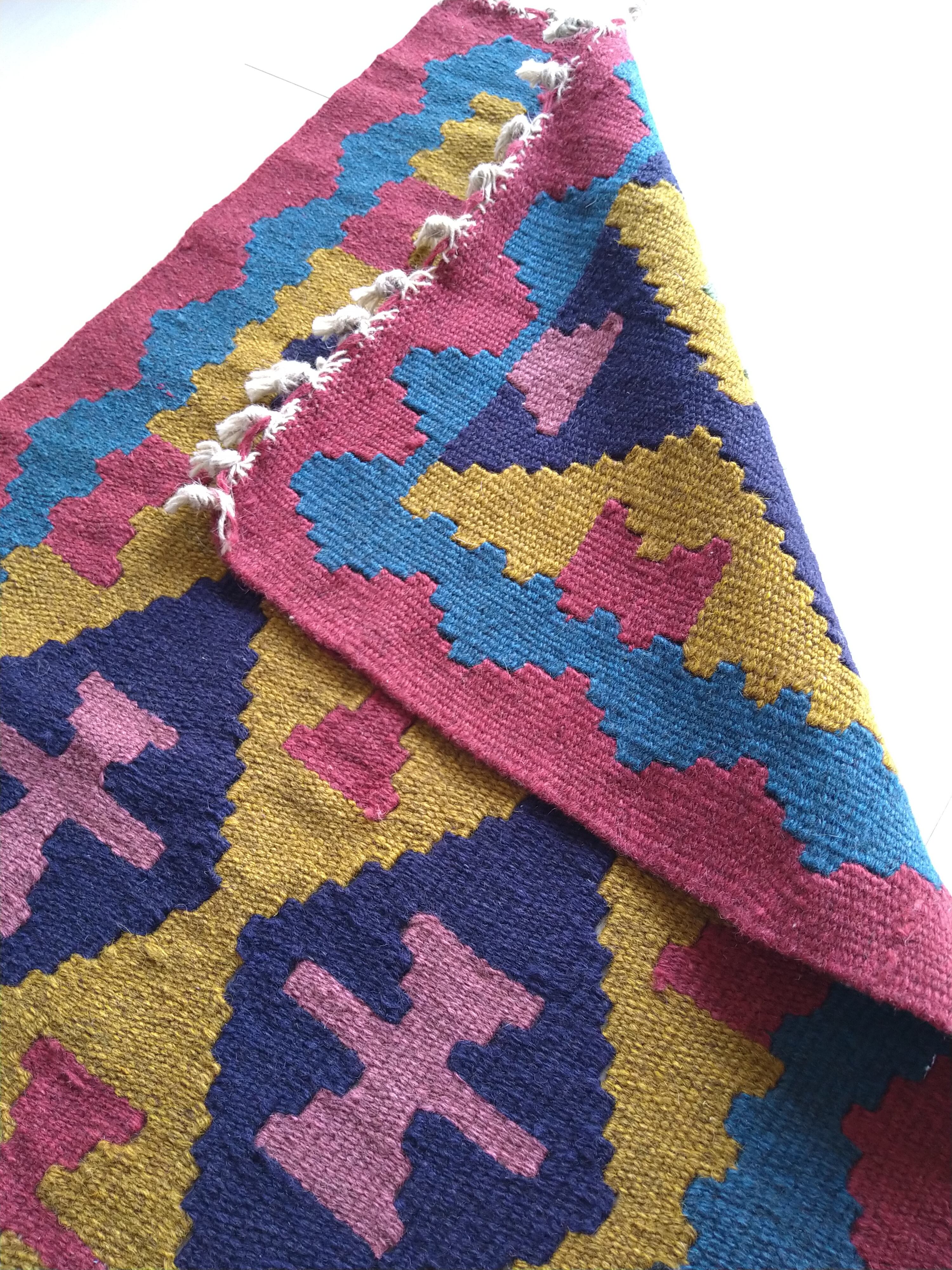 イラン北西部の都市、アルダビール近郊のヴィレッジで手織りされた、羊毛100%のキリムラグ / トライバルラグです。