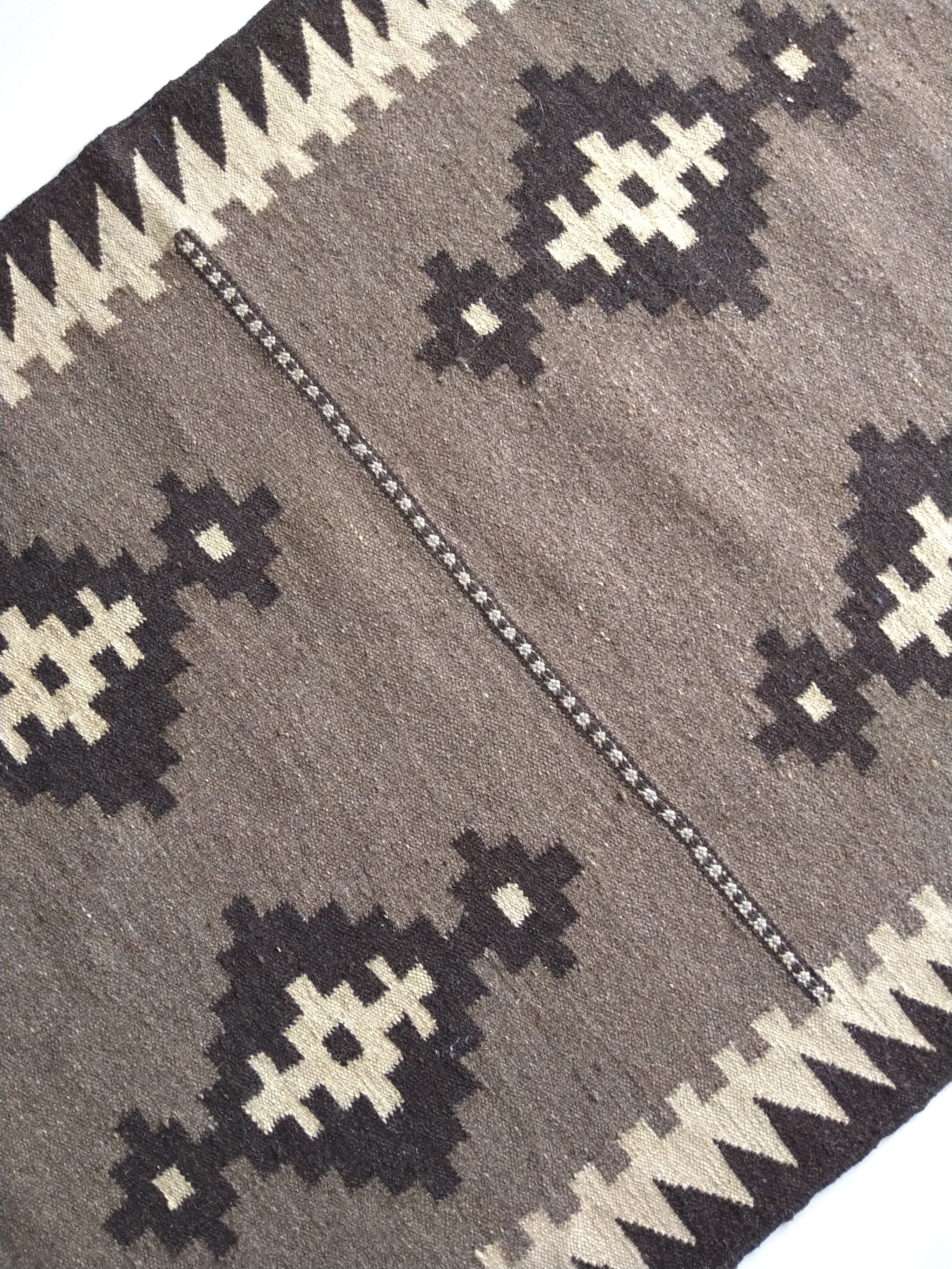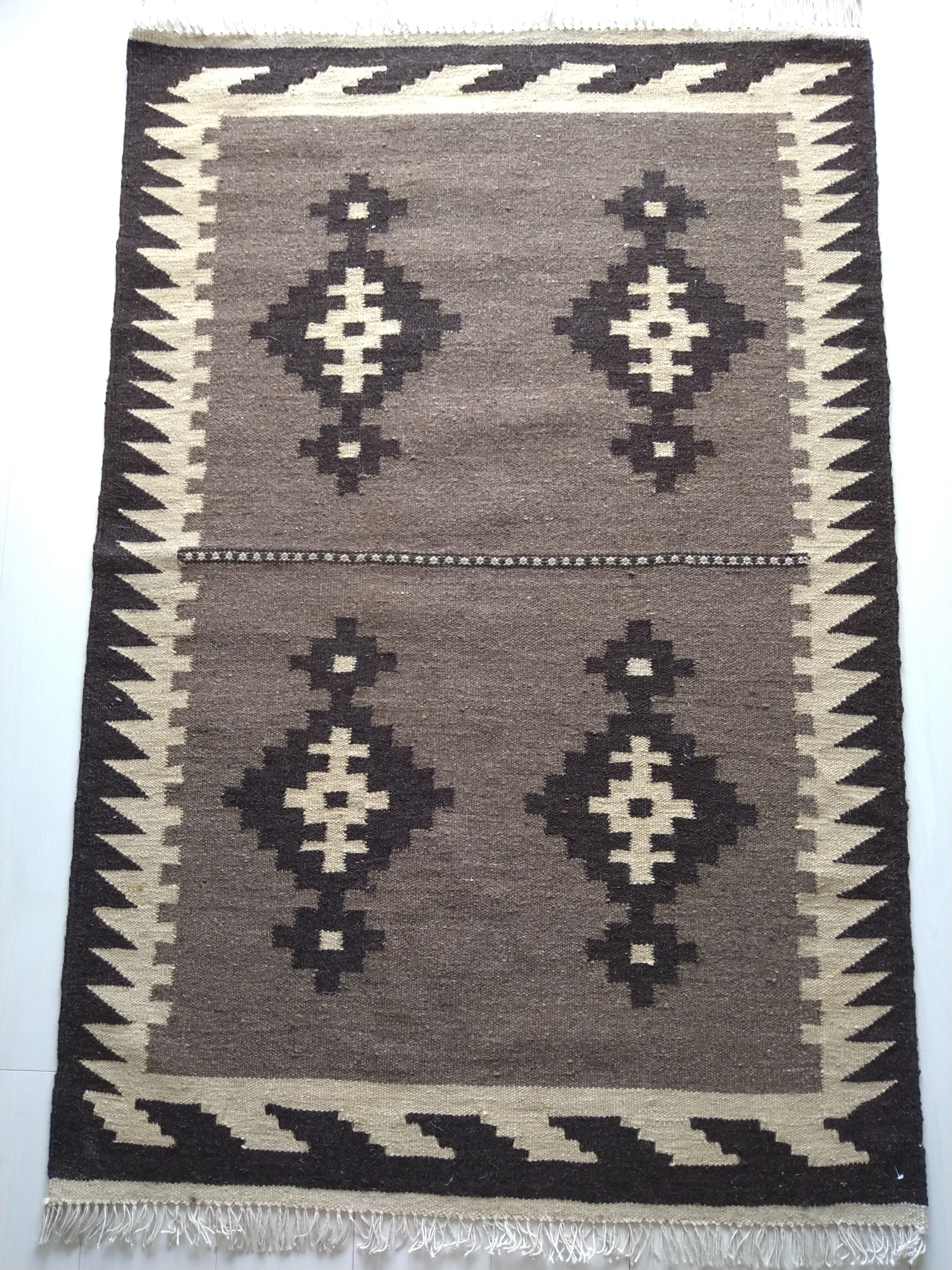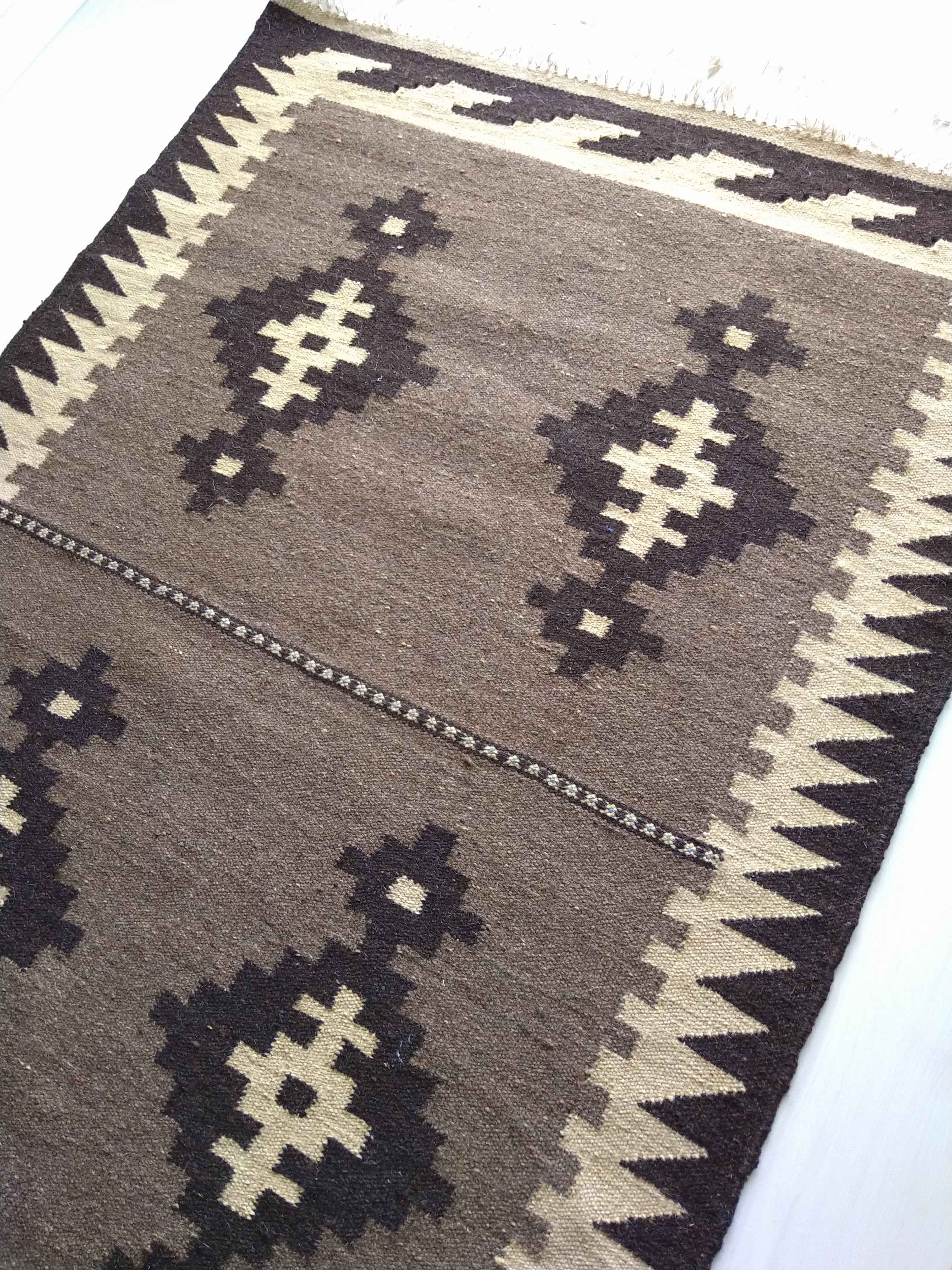 シンプルな幾何学模様とナチュラルカラーがどのようなインテリアにもしっくり馴染みやすく、大変重宝する一枚です。