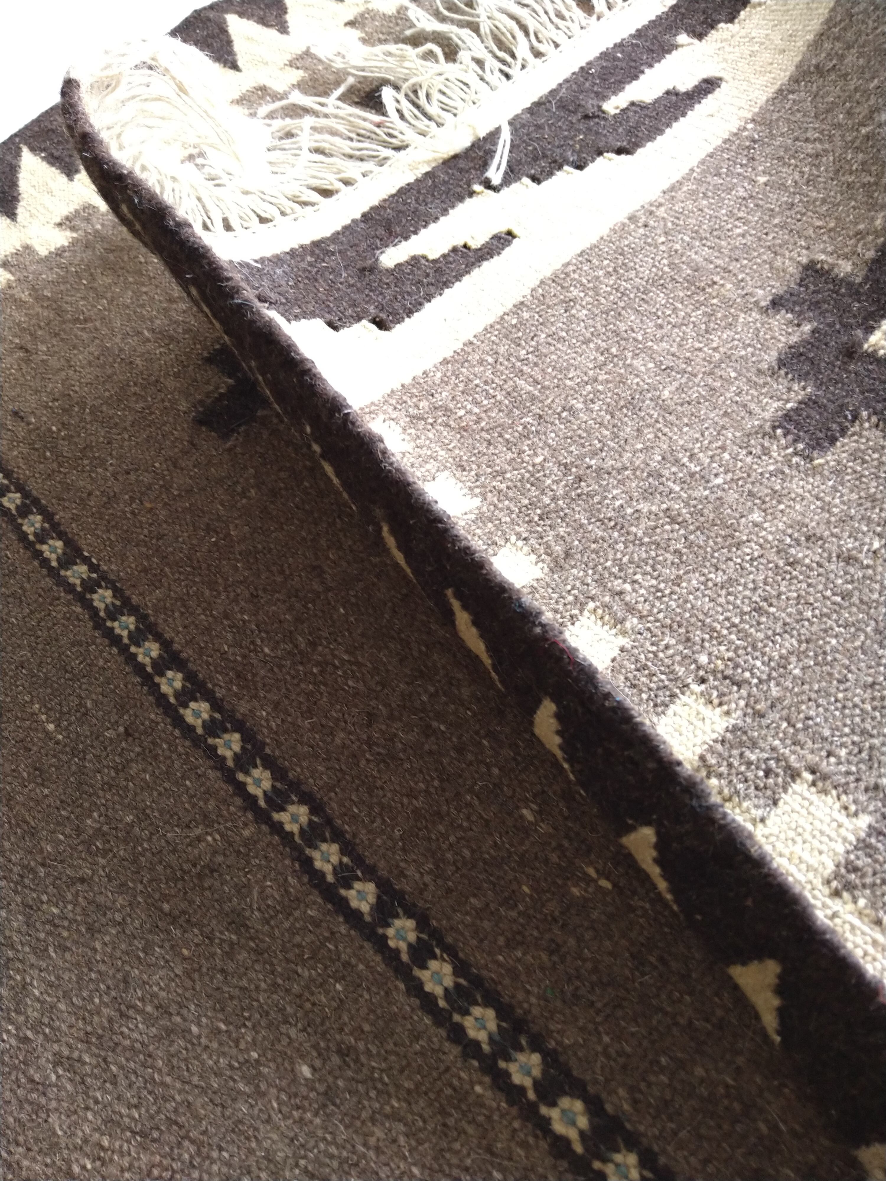 -ハンドメイドのラグは工場生産の既製品とは違いますので多少のゆがみ、色むらがあります。手織りの暖かみを楽しんでいただければ幸いです。