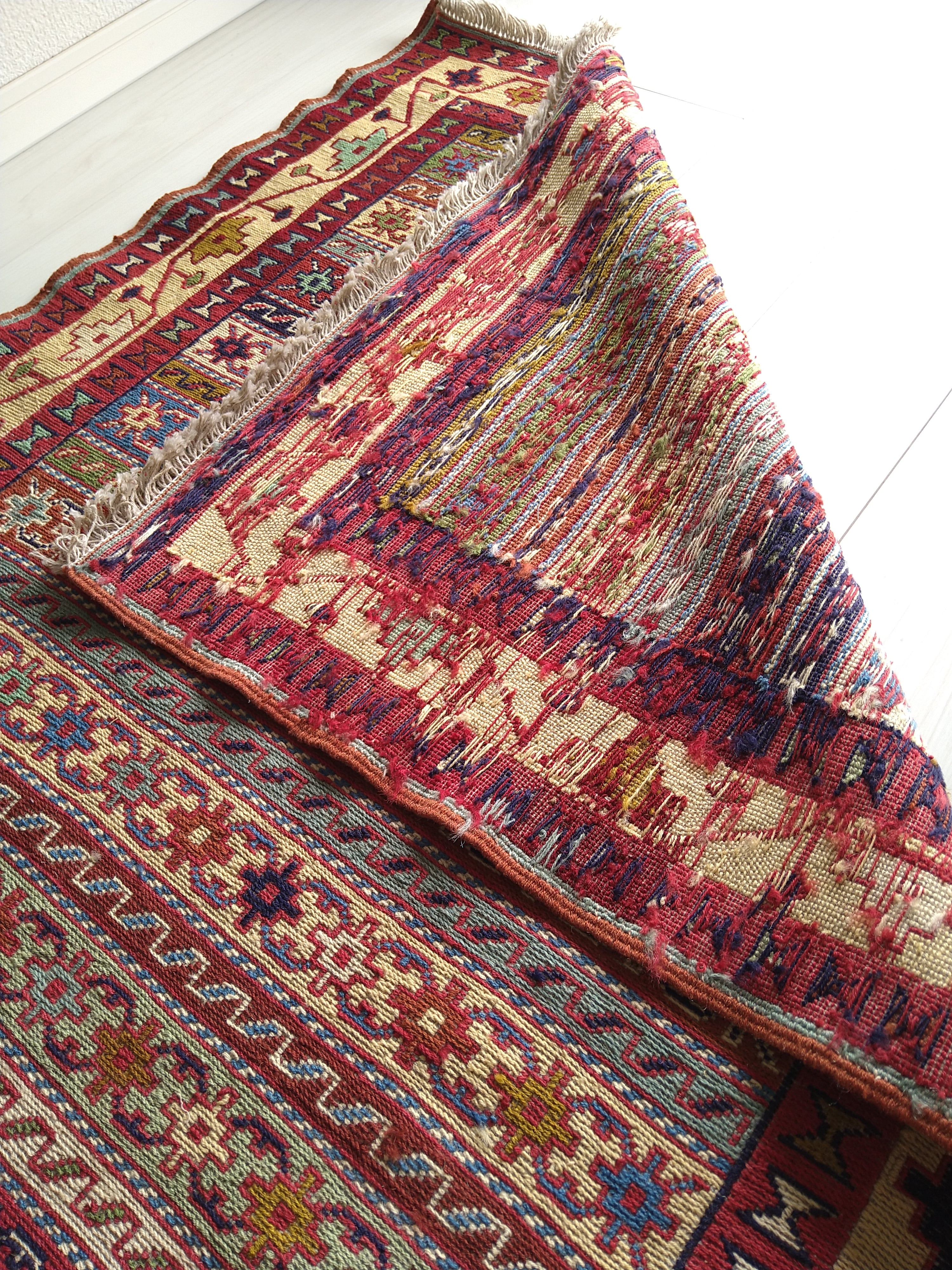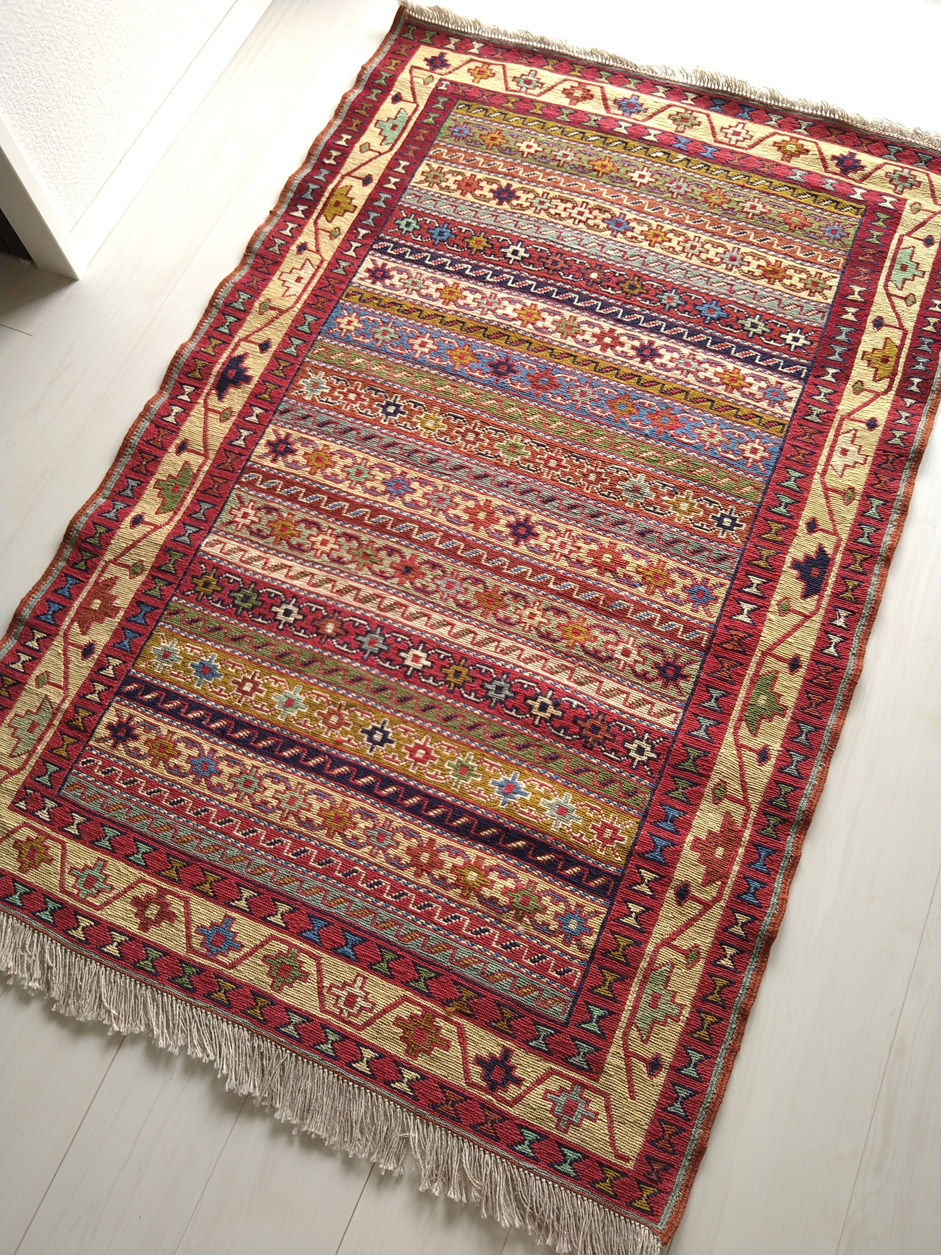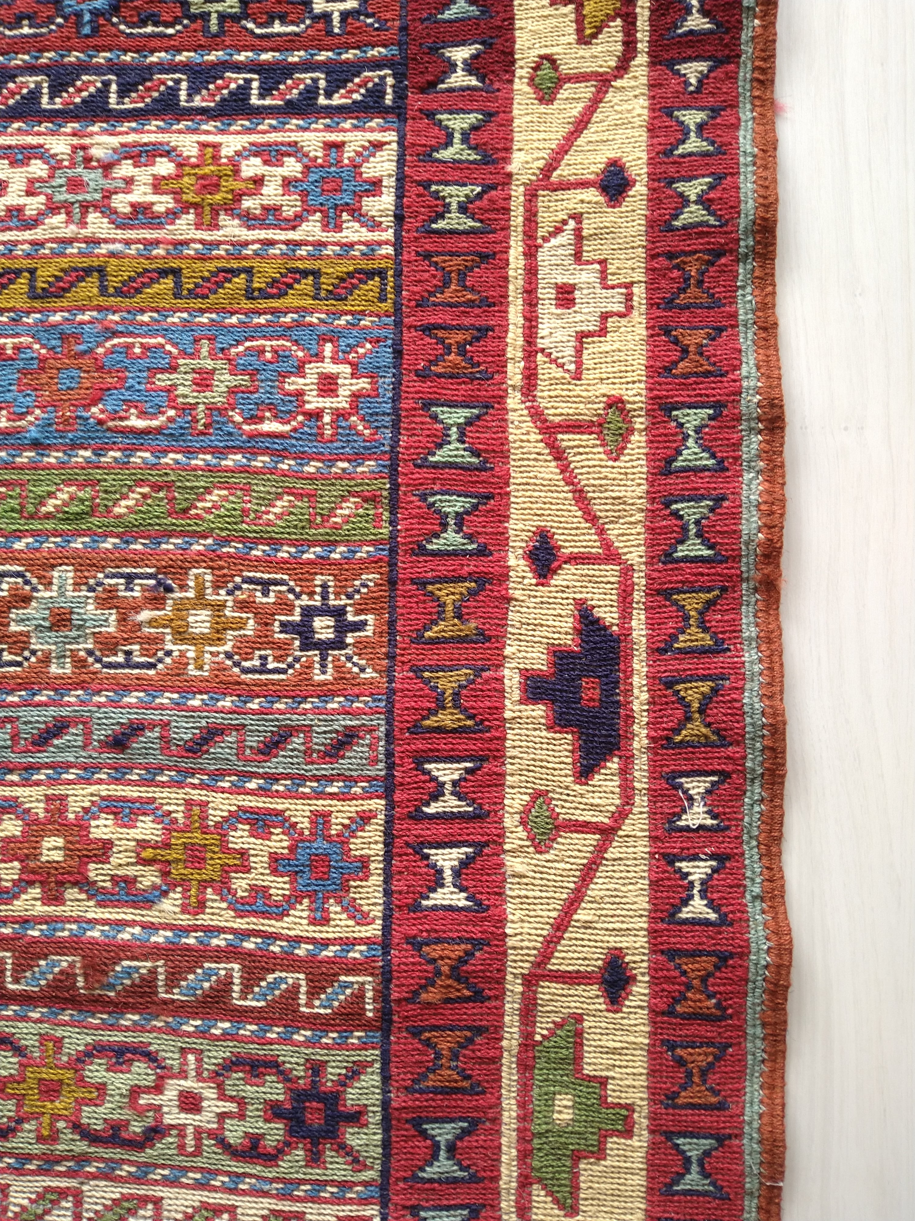 スマック織りでとても細かく丁寧に手織りされた一枚。