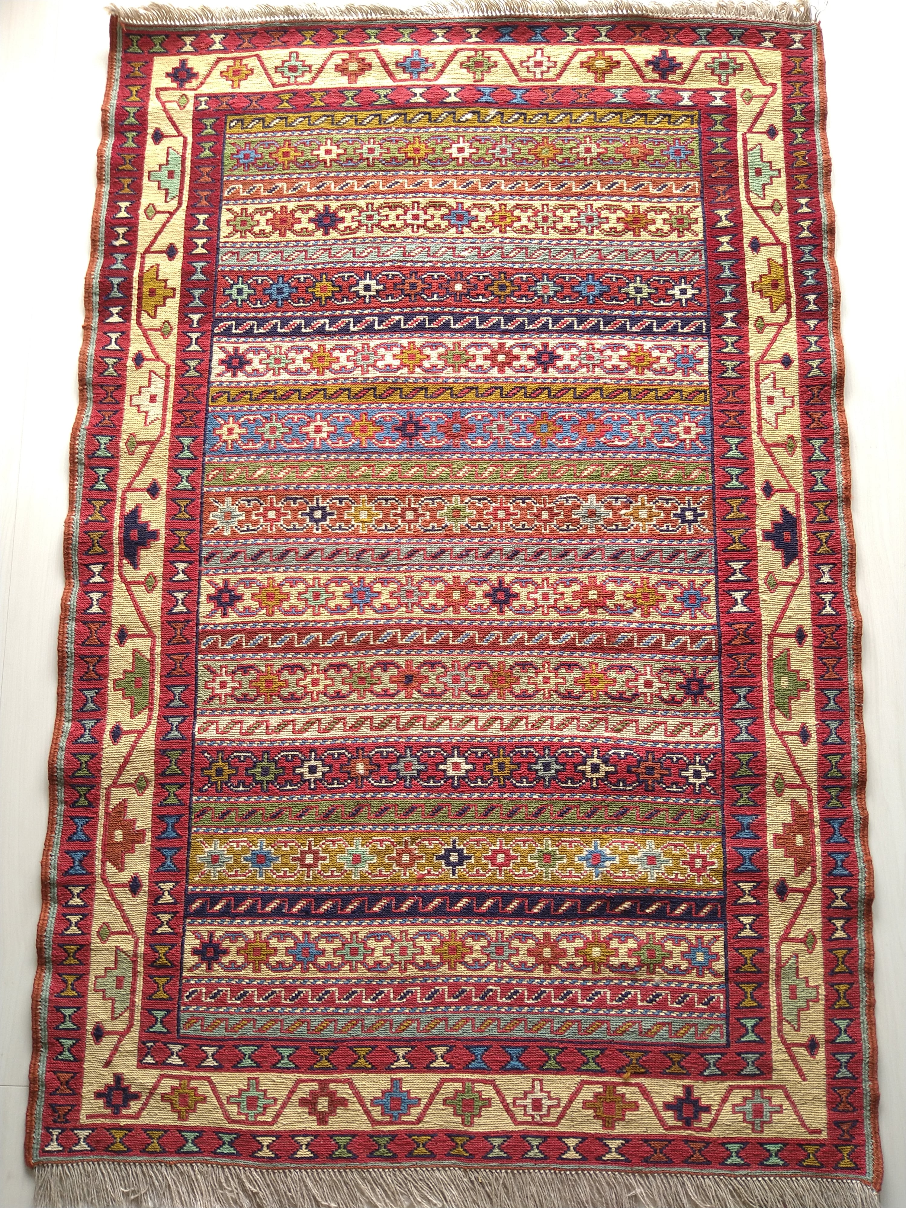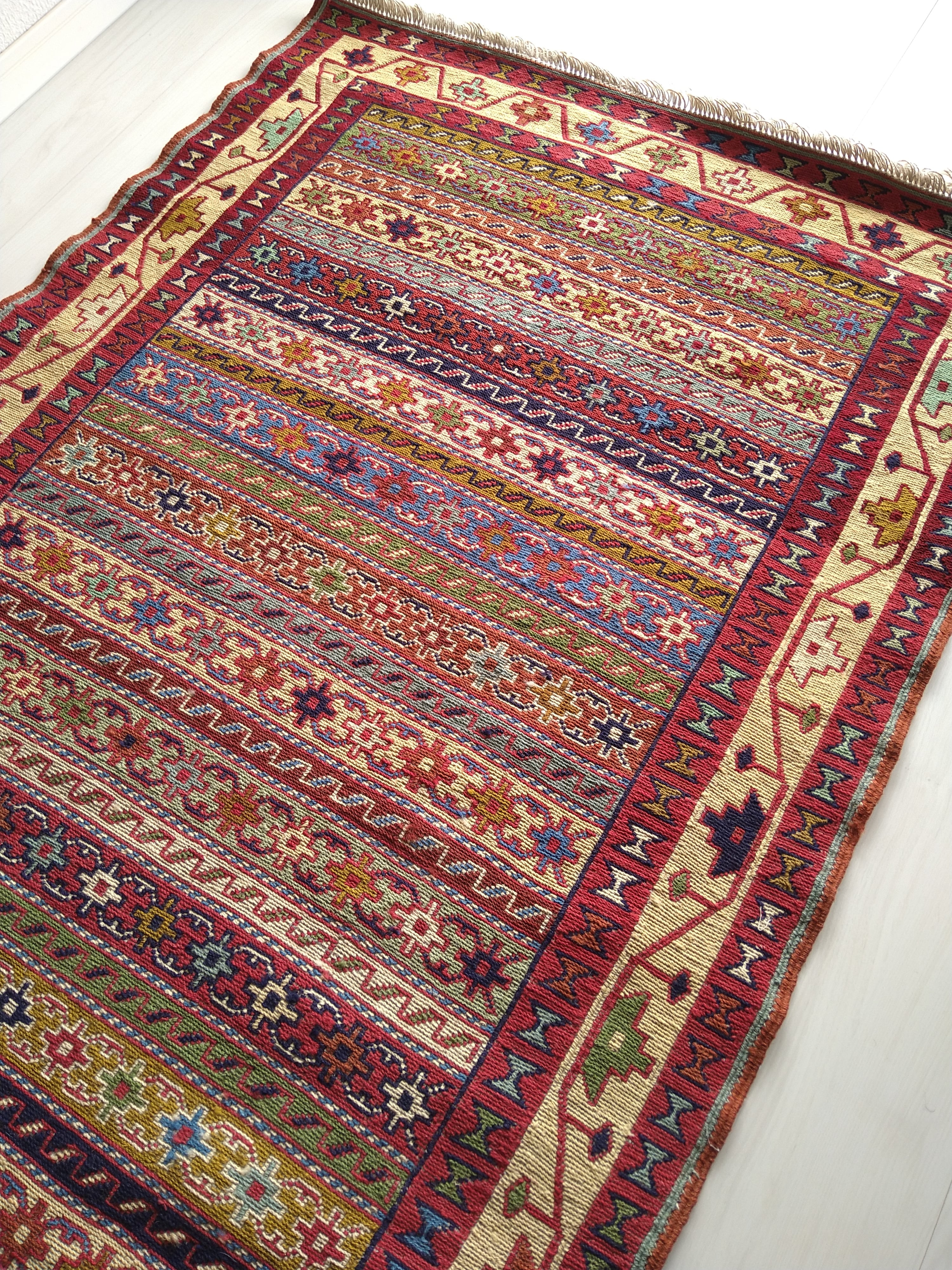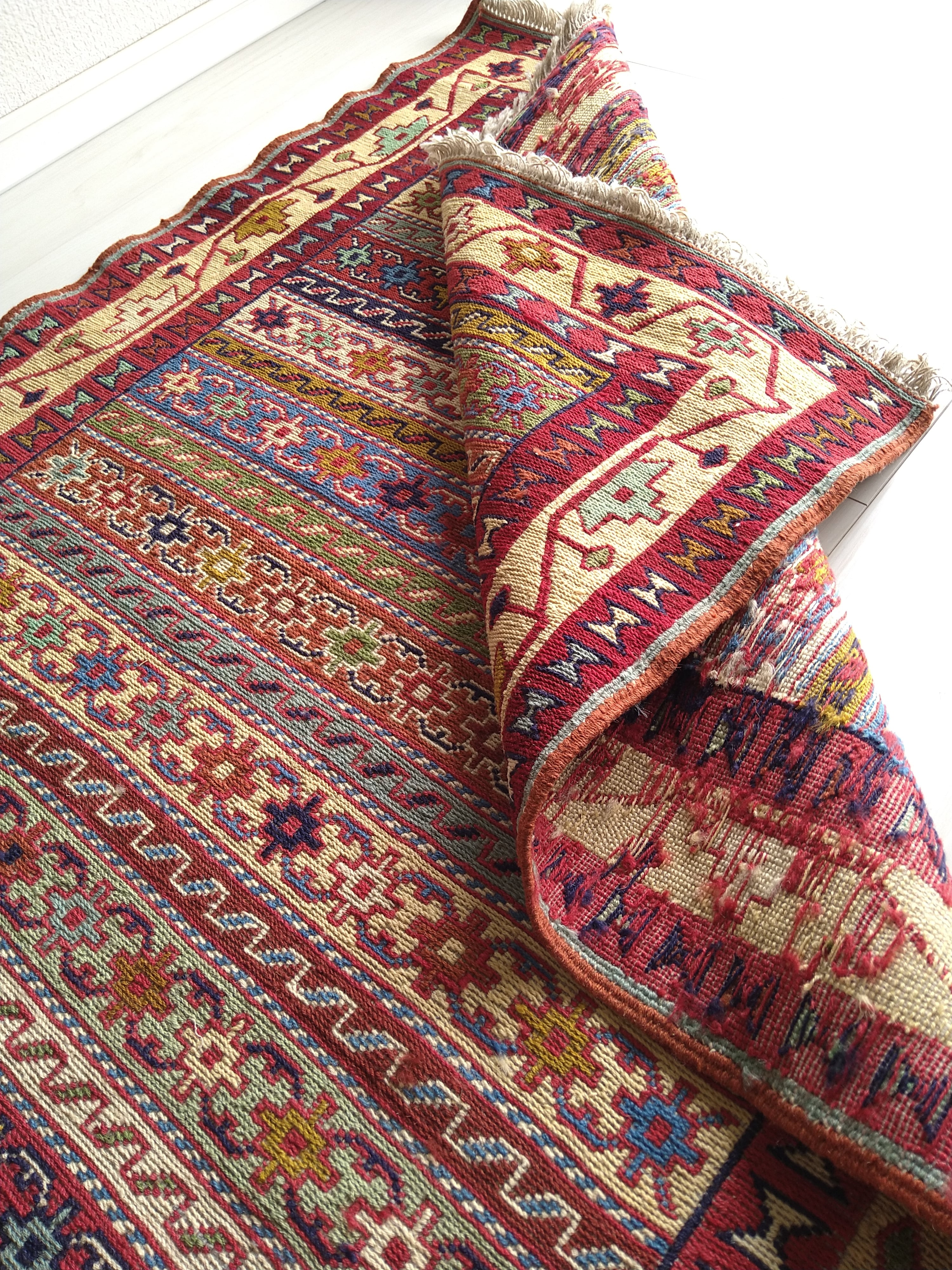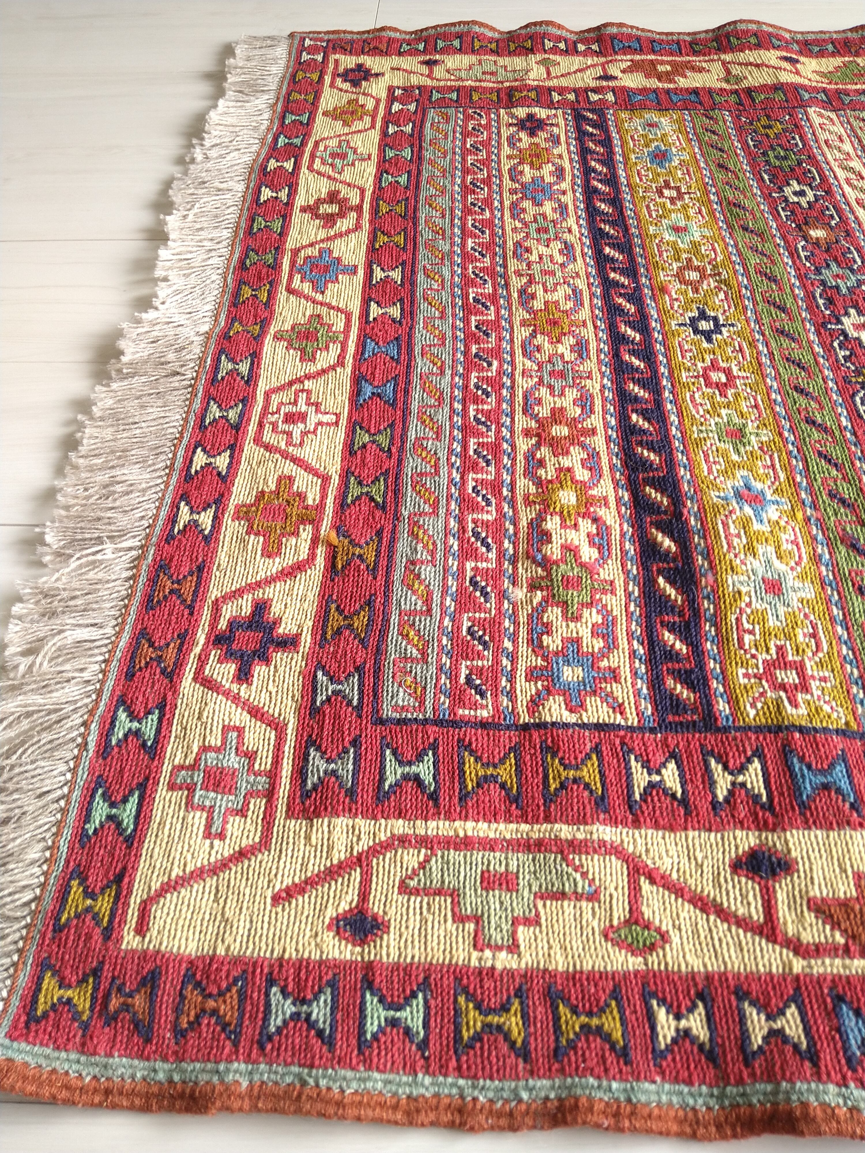 スマック織りでとても細かく丁寧に手織りされた一枚。