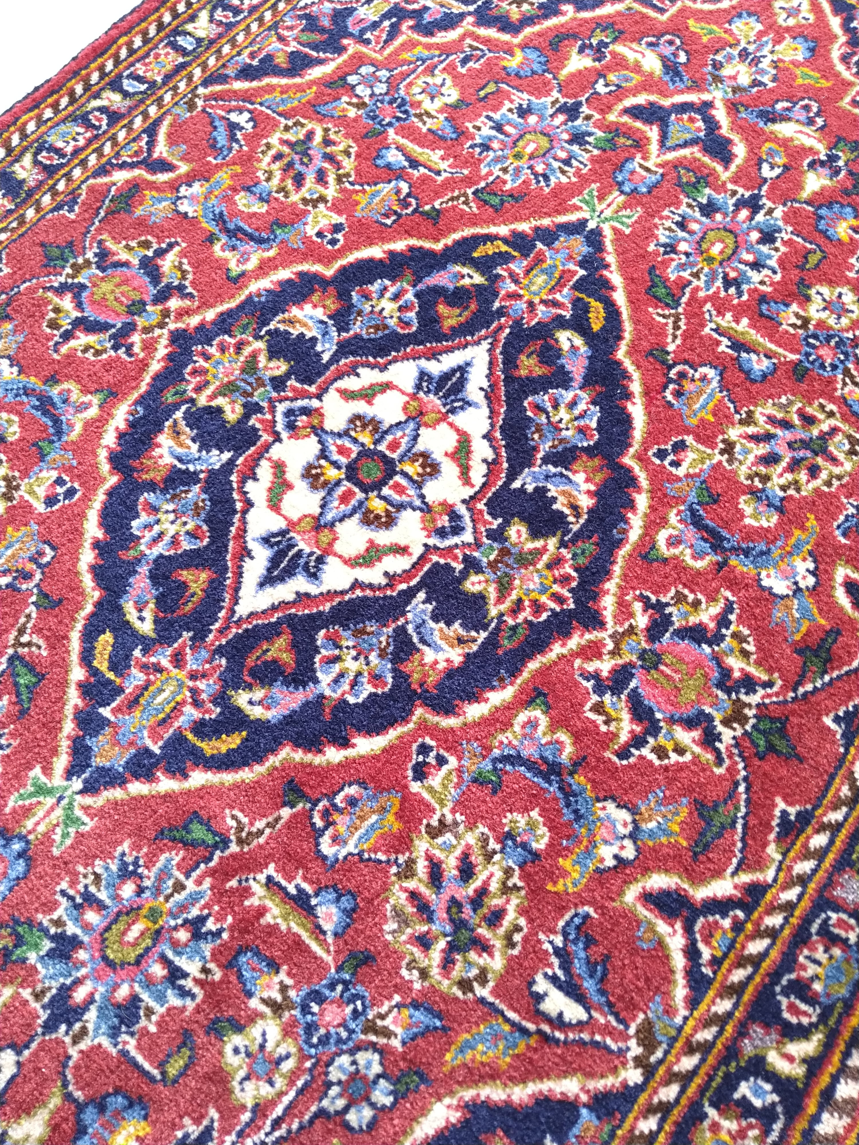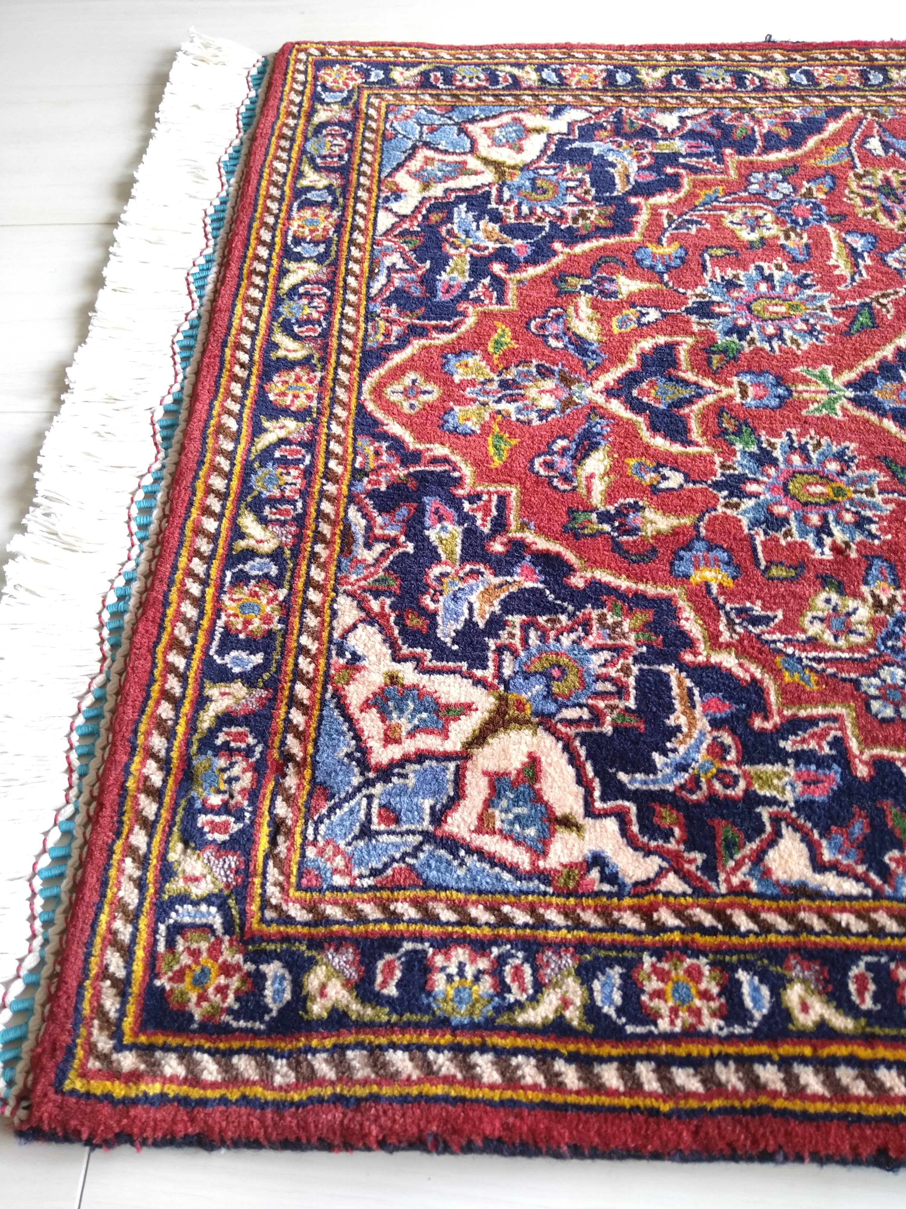 イラン中央部 イスファハーン州の都市、カシャーンで30年ほど前に手織りされた、ヴィンテージ トライバルラグ / ペルシャ絨毯です。