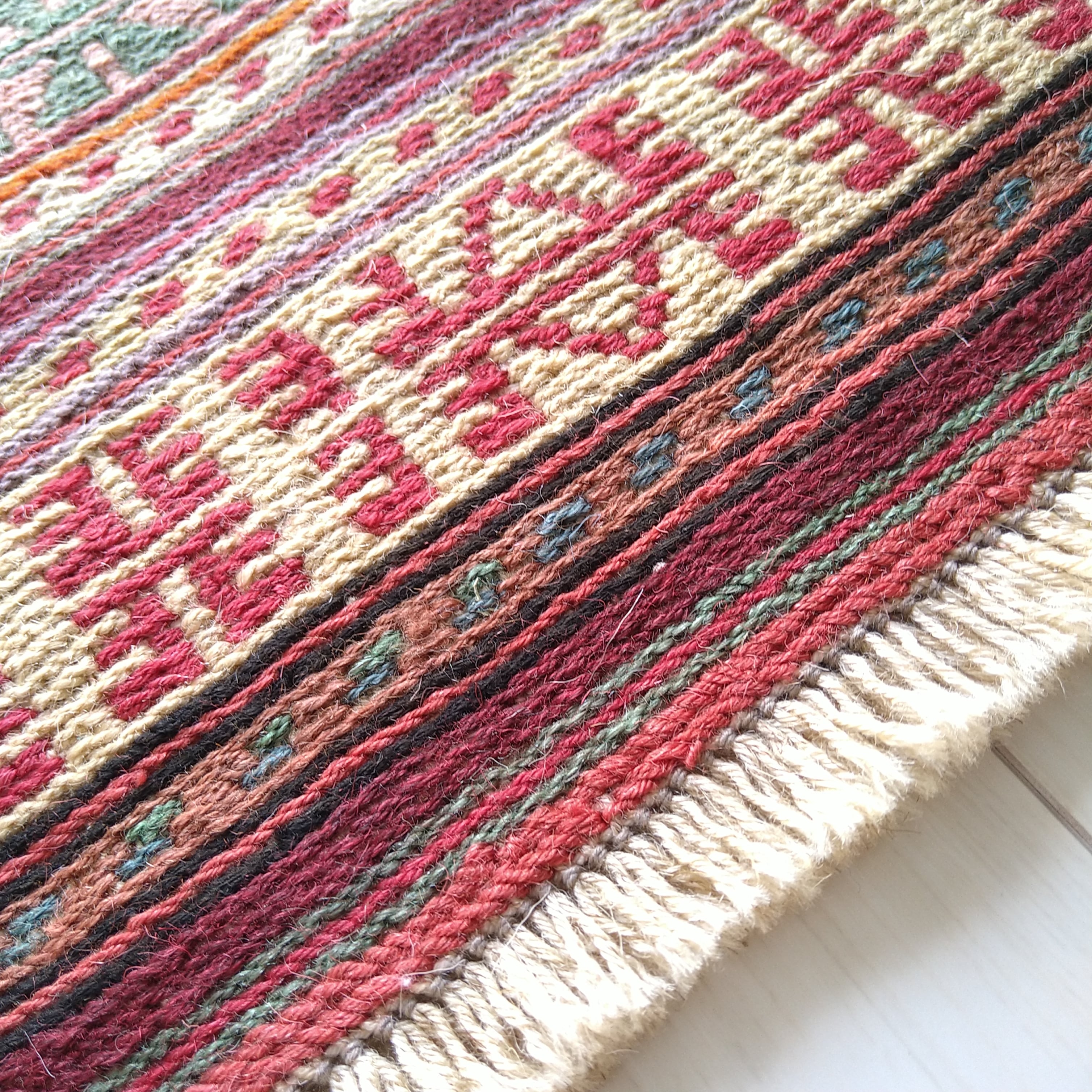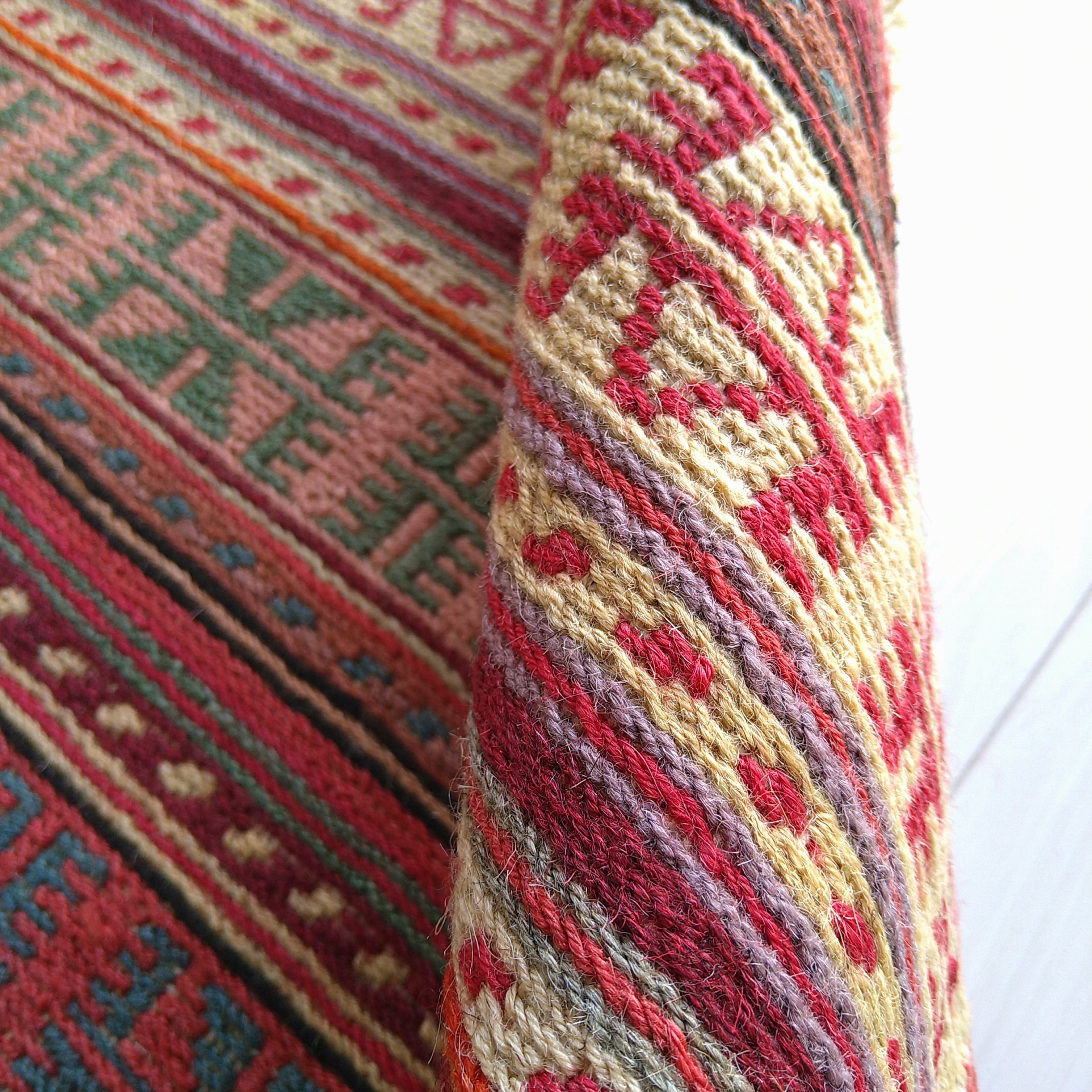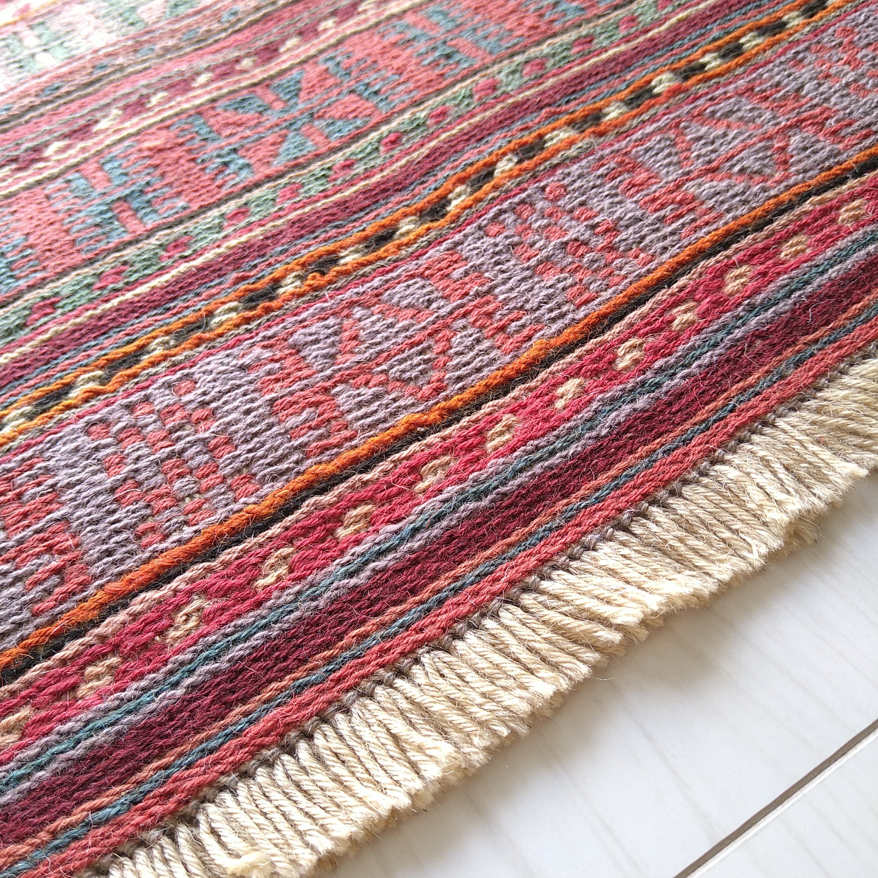 スマック織りで細かく丁寧に手織りされた一枚。