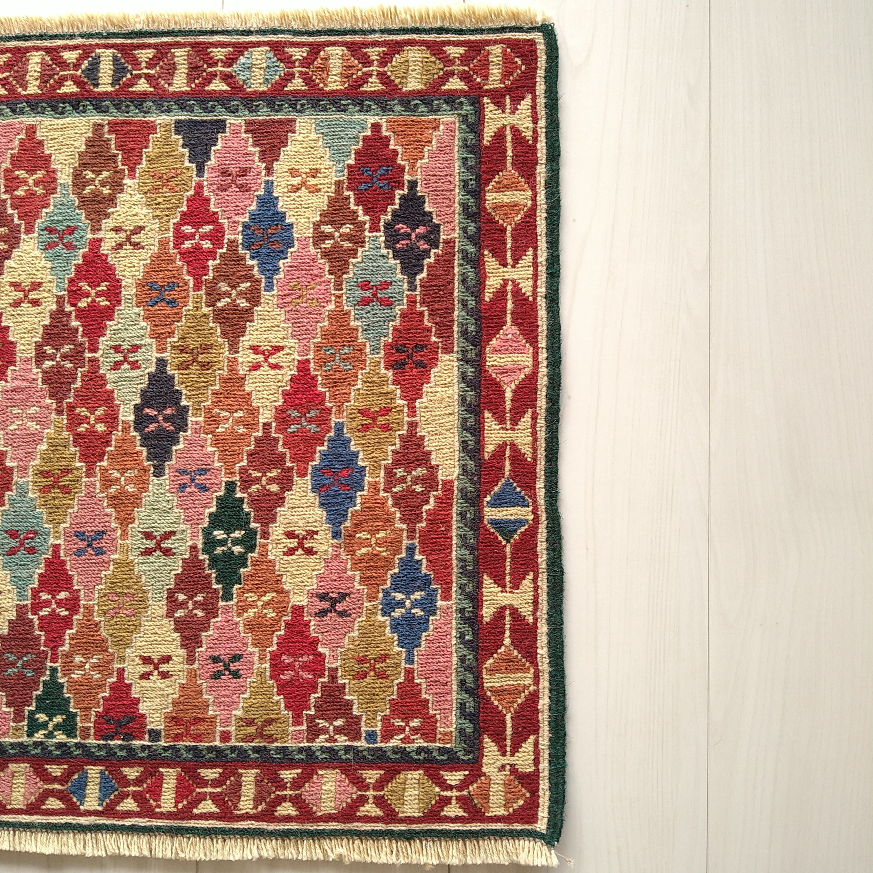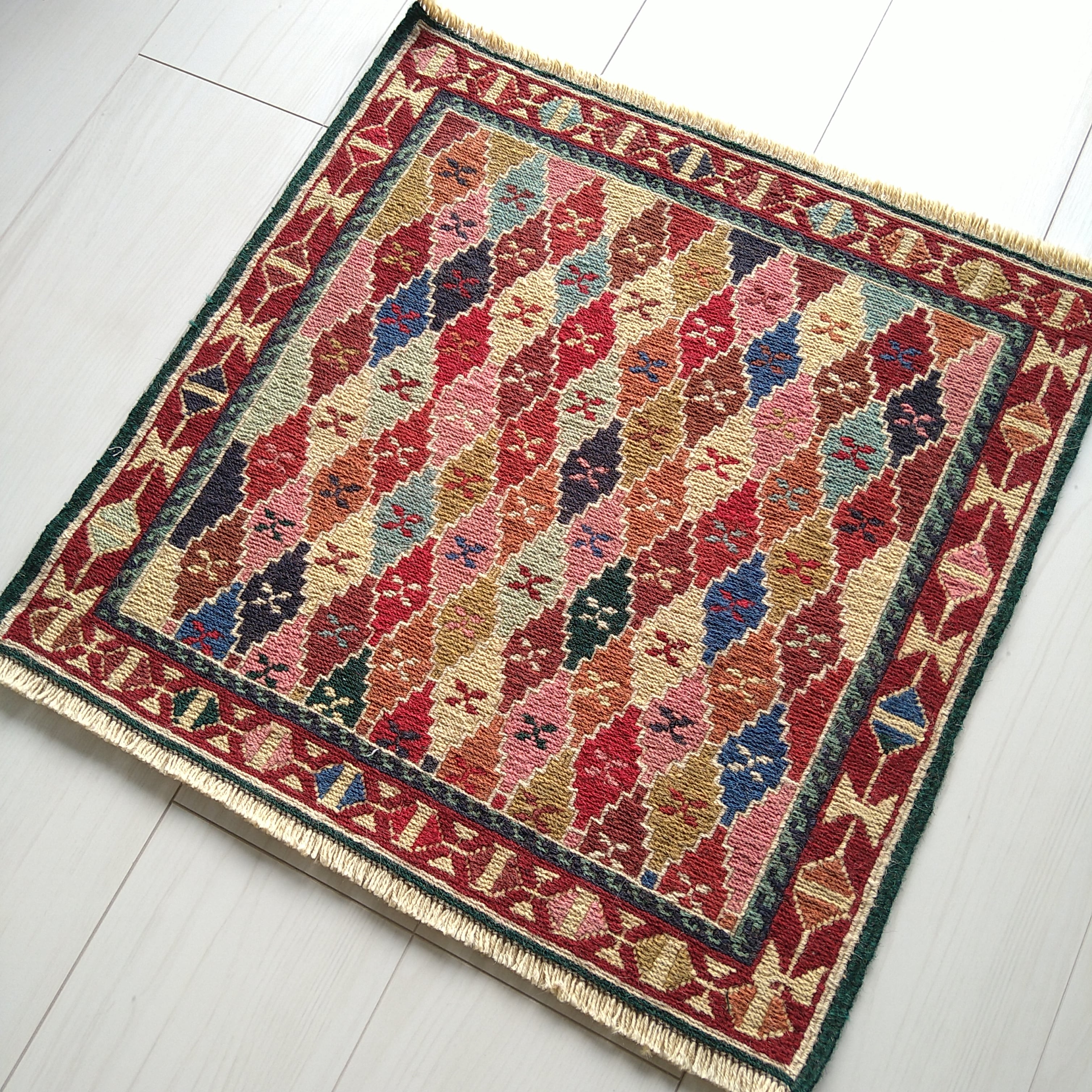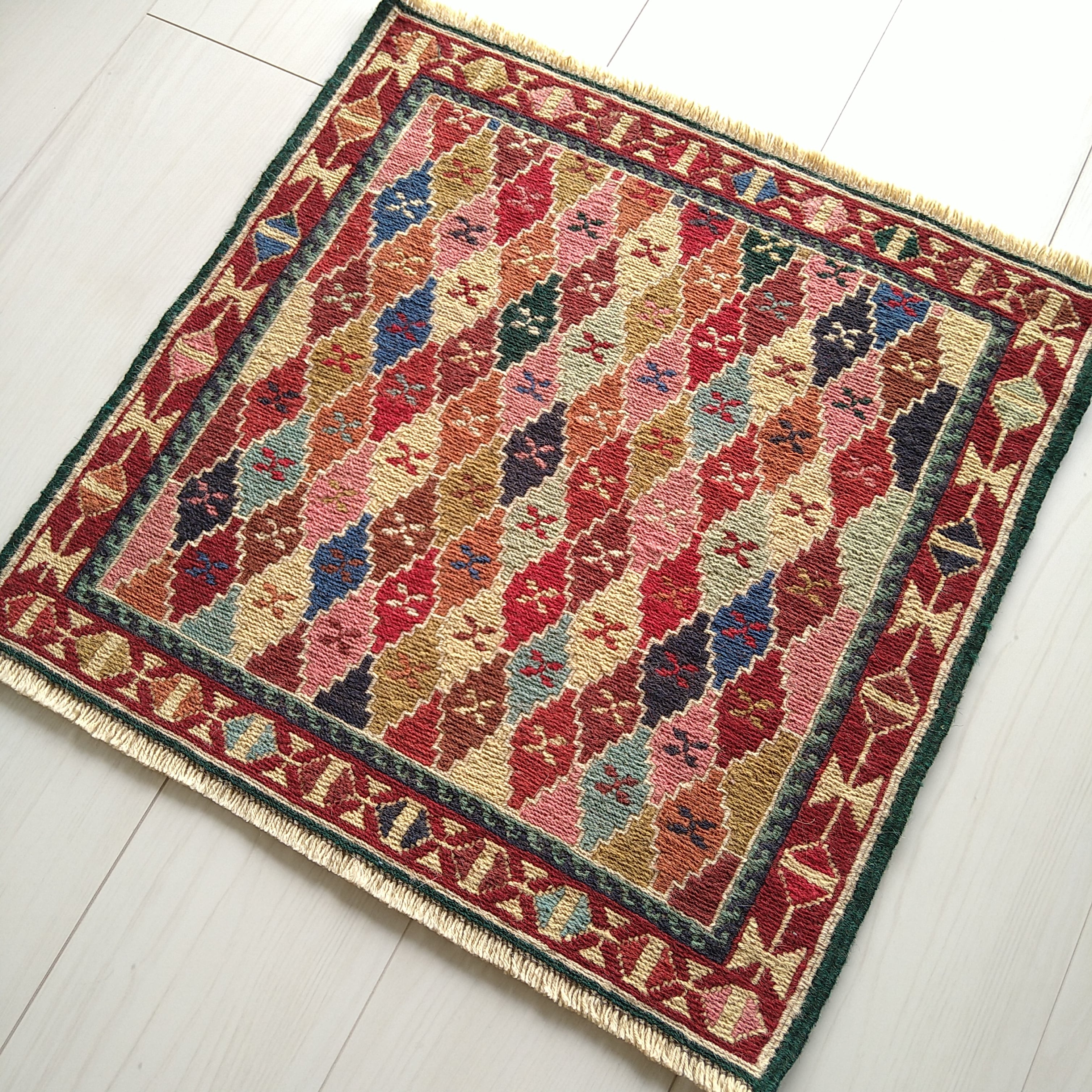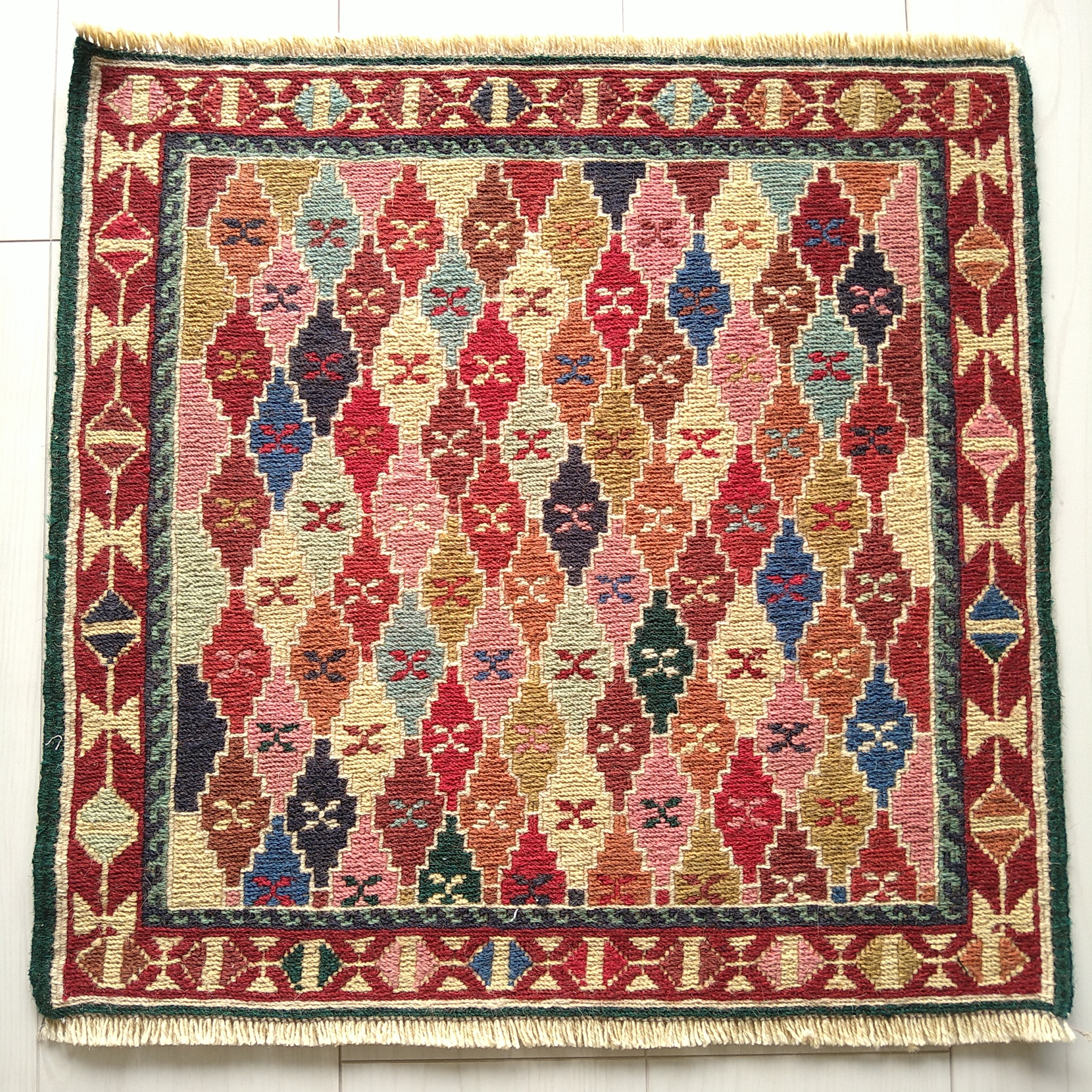 Persian Square Kilim 51x49cm Colorful Zigzag Diamonds ペルシャ絨毯