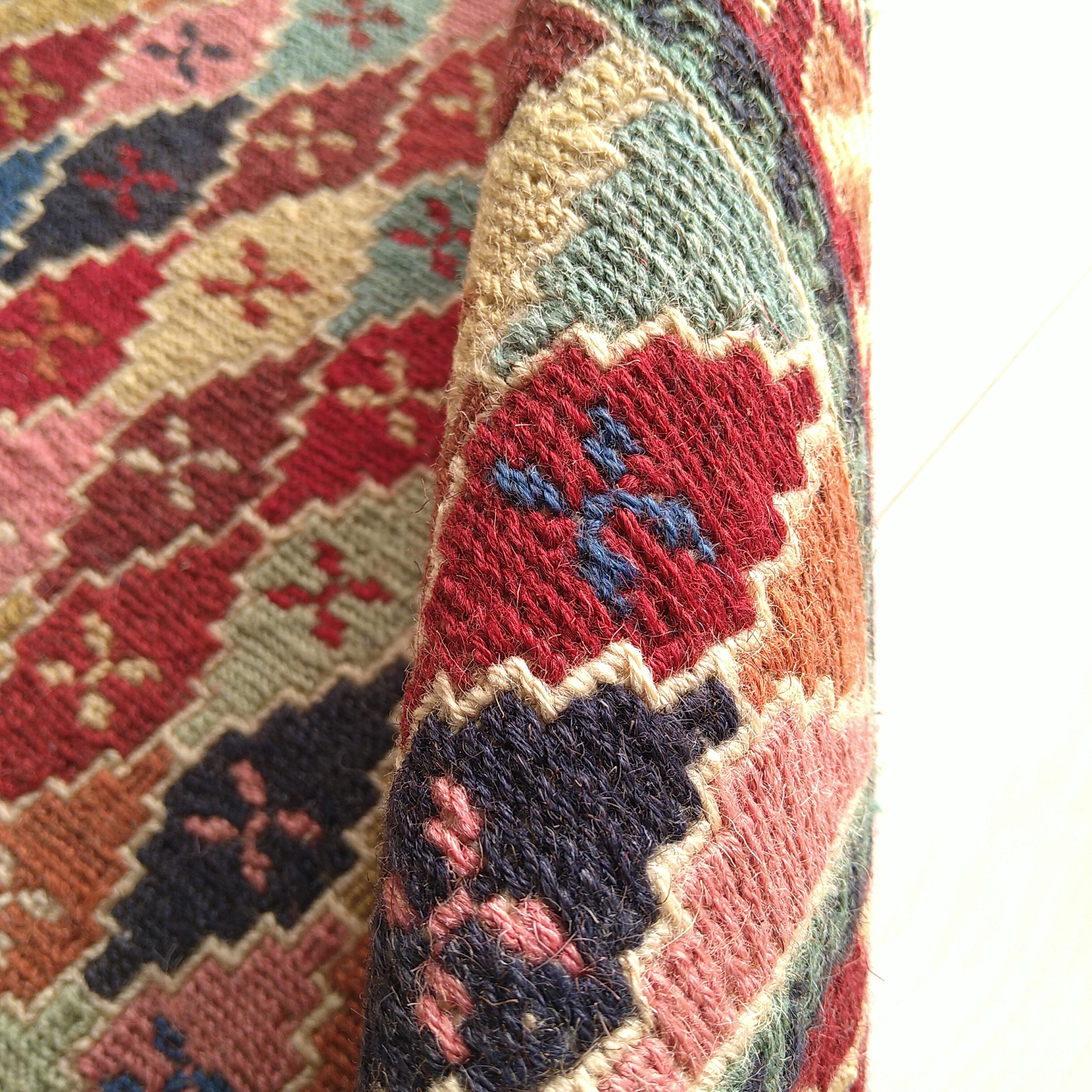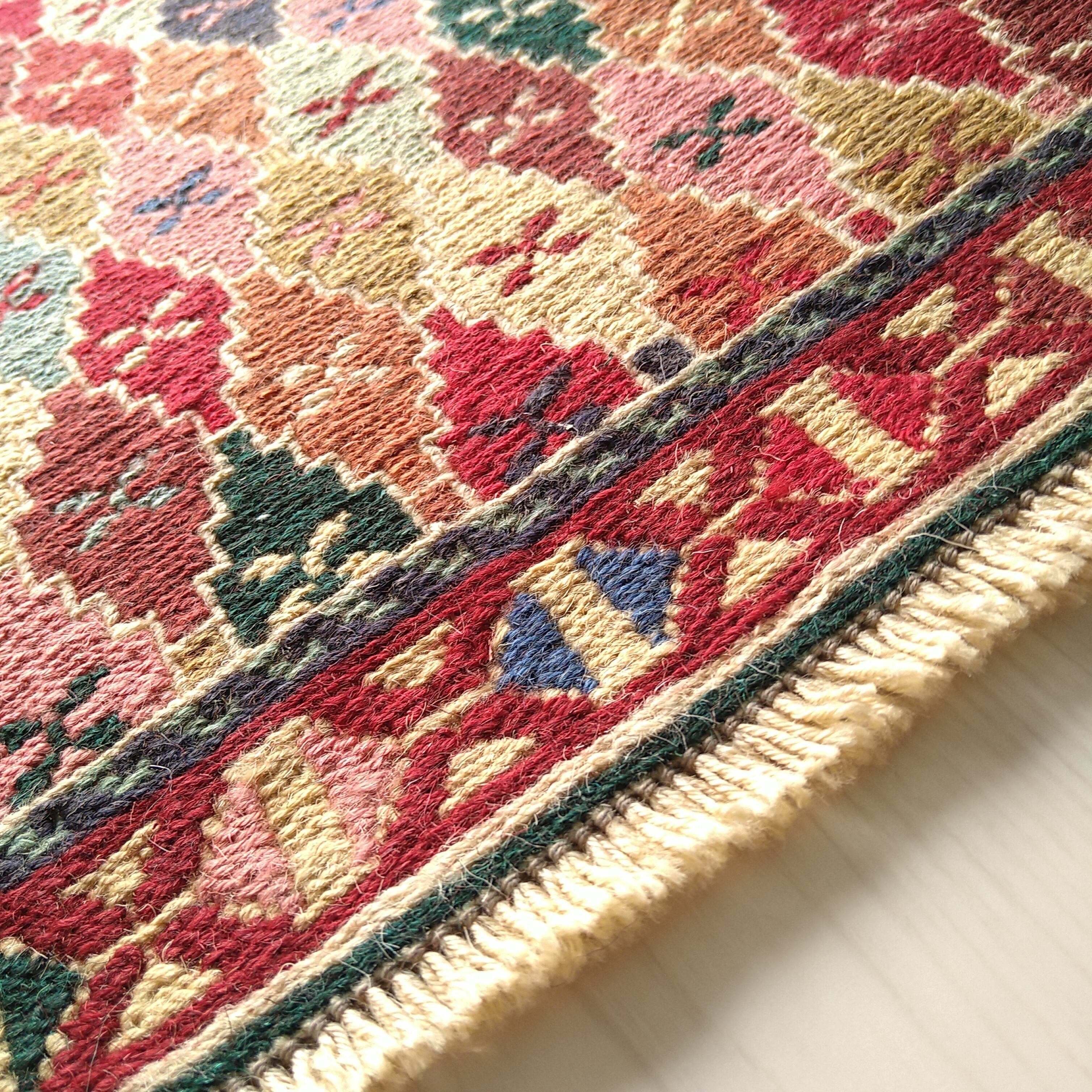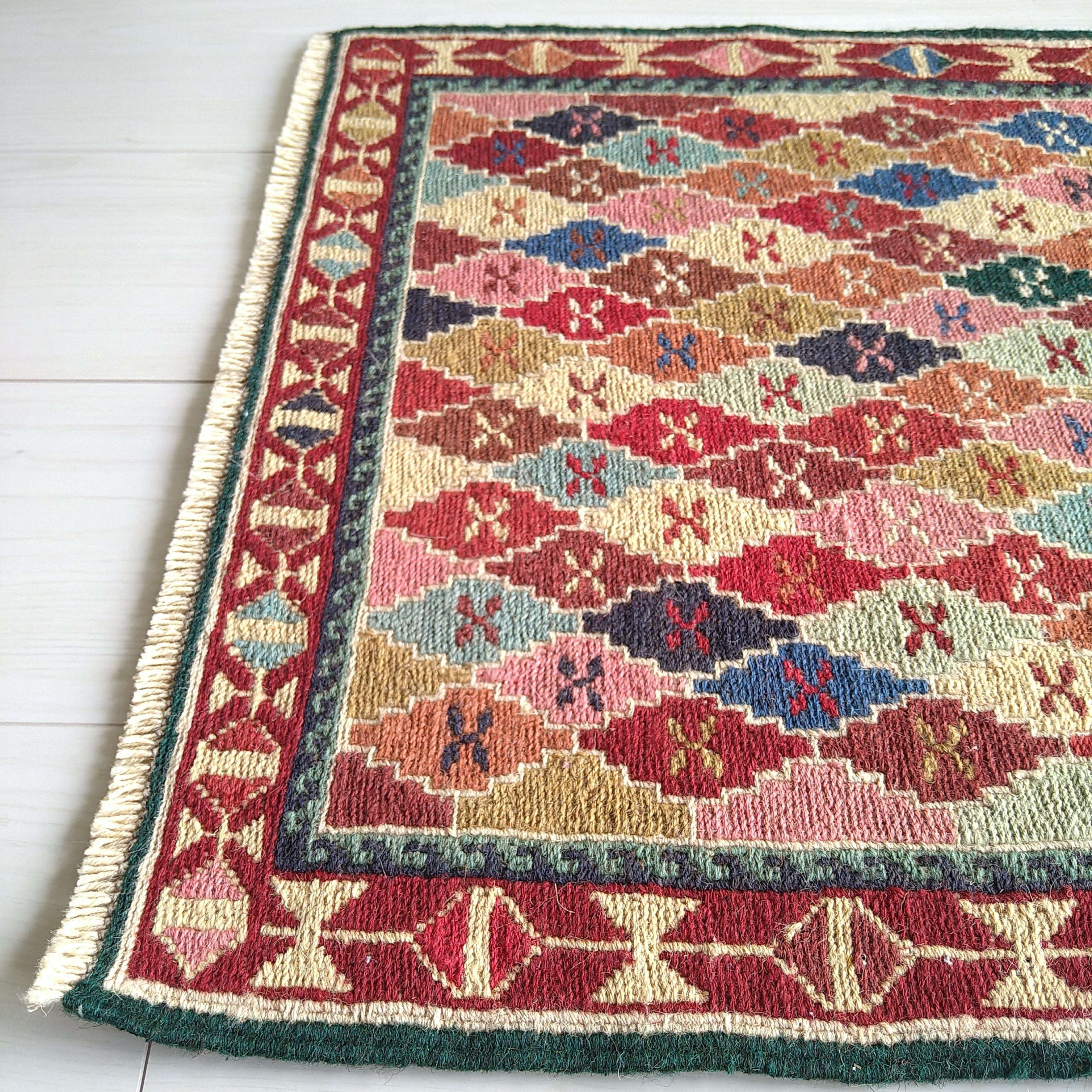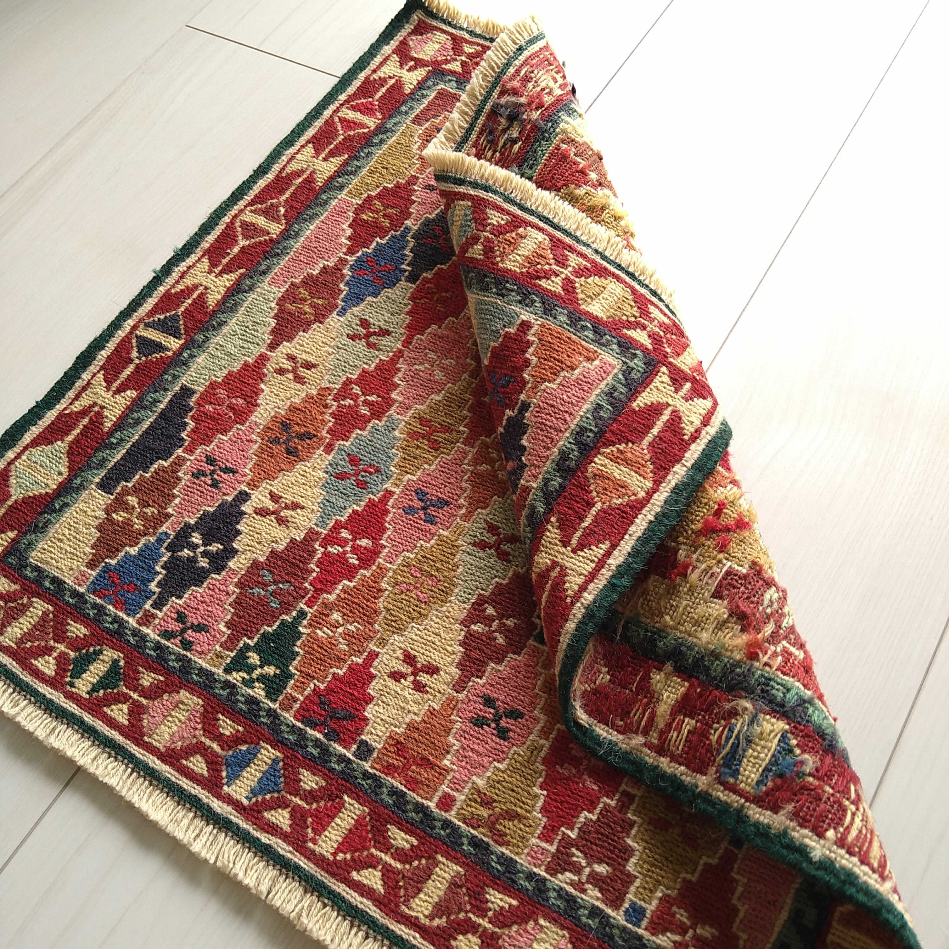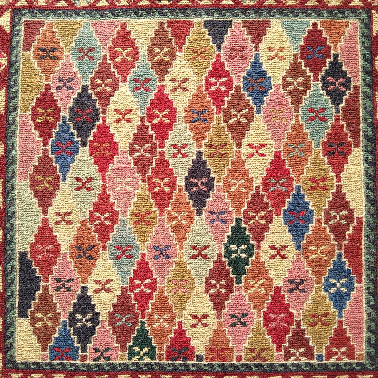 Persian Square Kilim 51x49cm Colorful Zigzag Diamonds ペルシャ絨毯