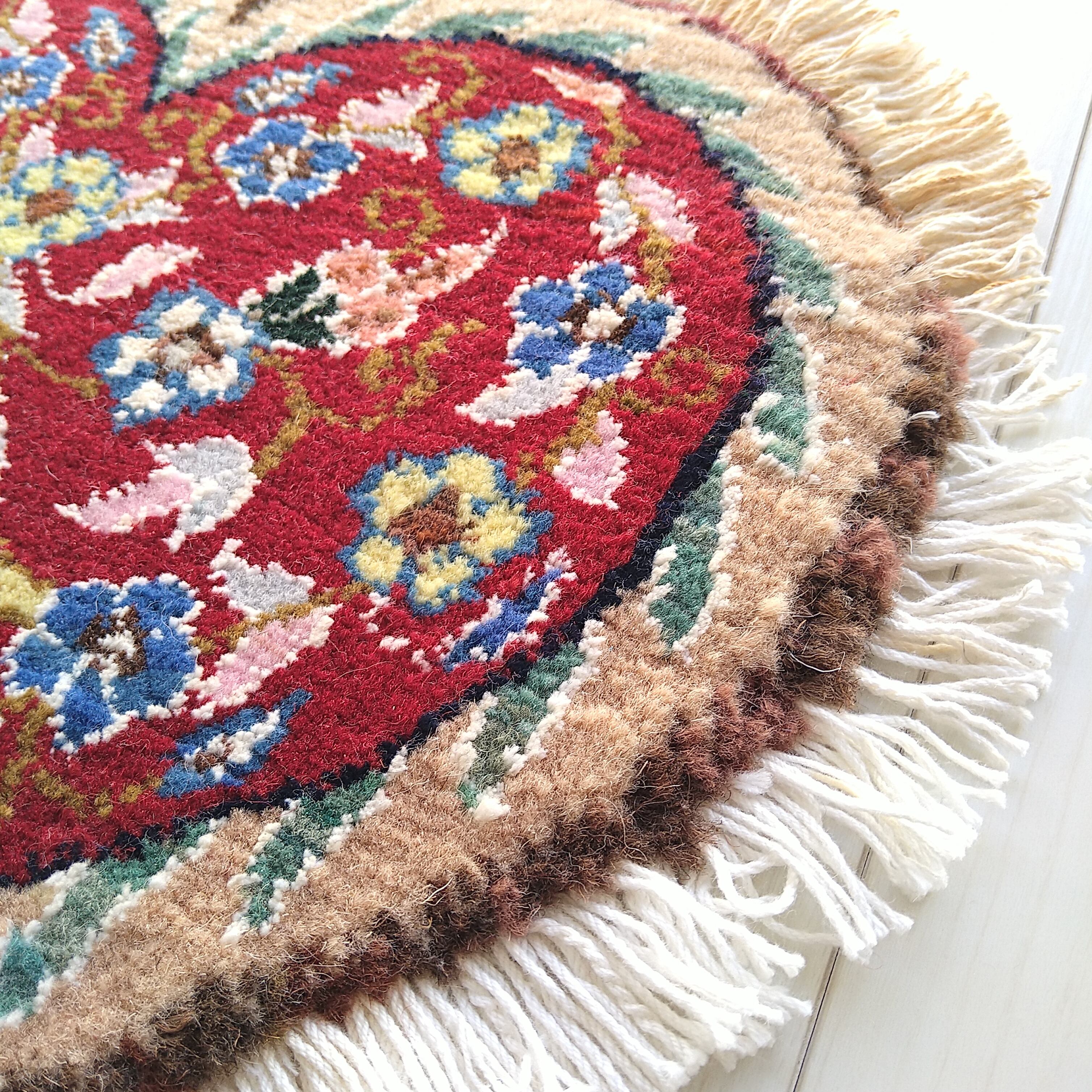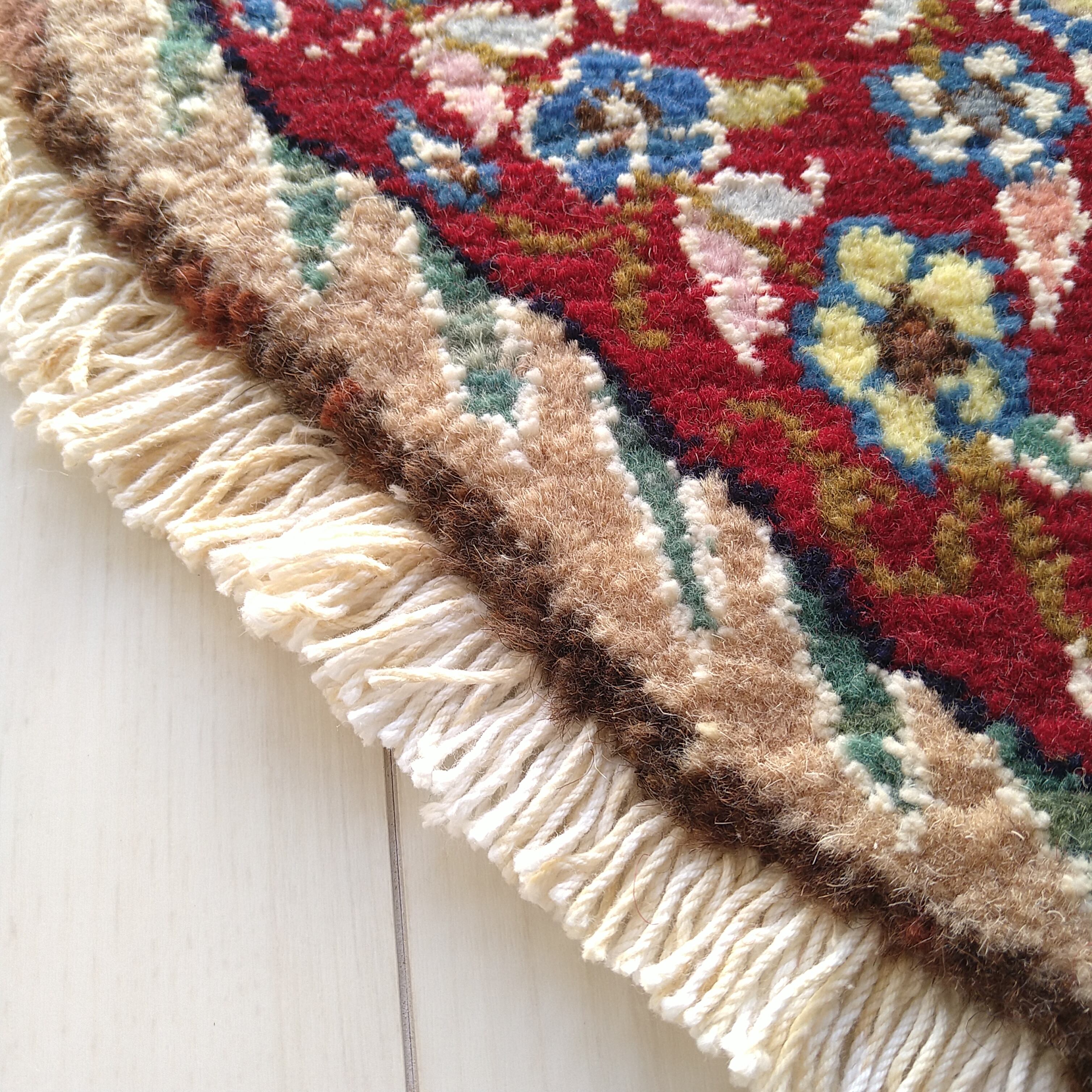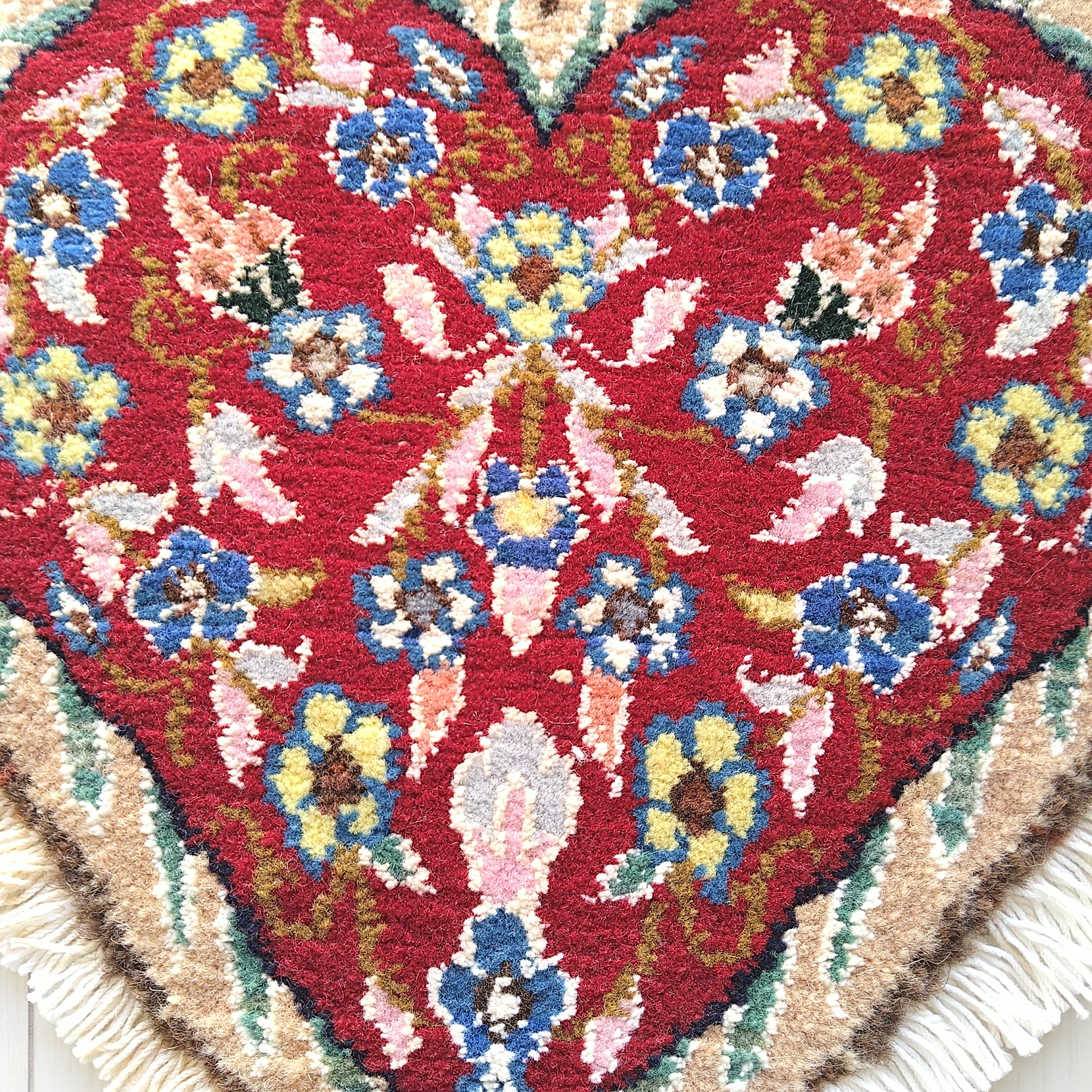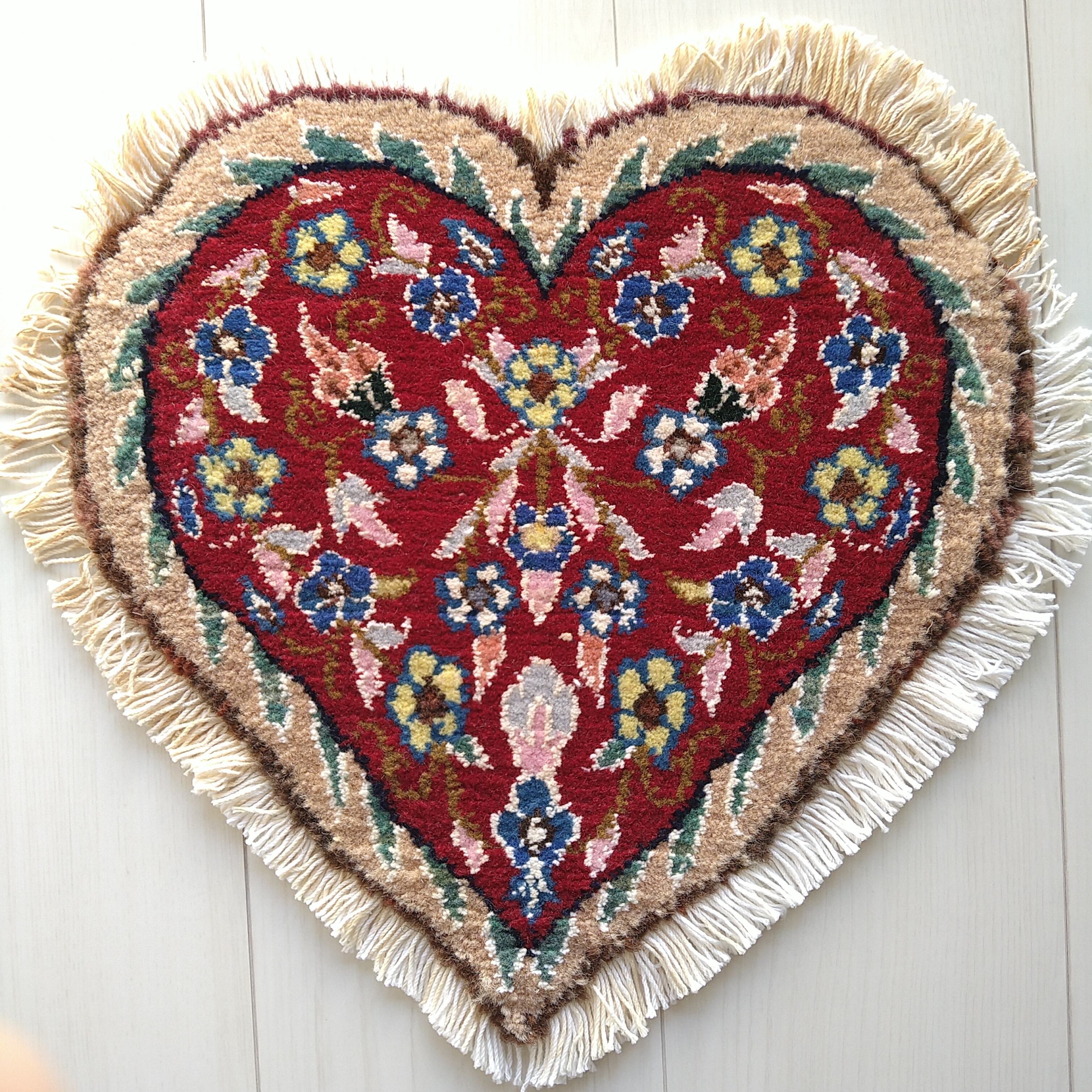 ペルシャ絨毯の産地として世界的に有名なナインで大変丁寧に手織りされた、イラン製 ハート型 ミニペルシャ絨毯 / ミニラグです。